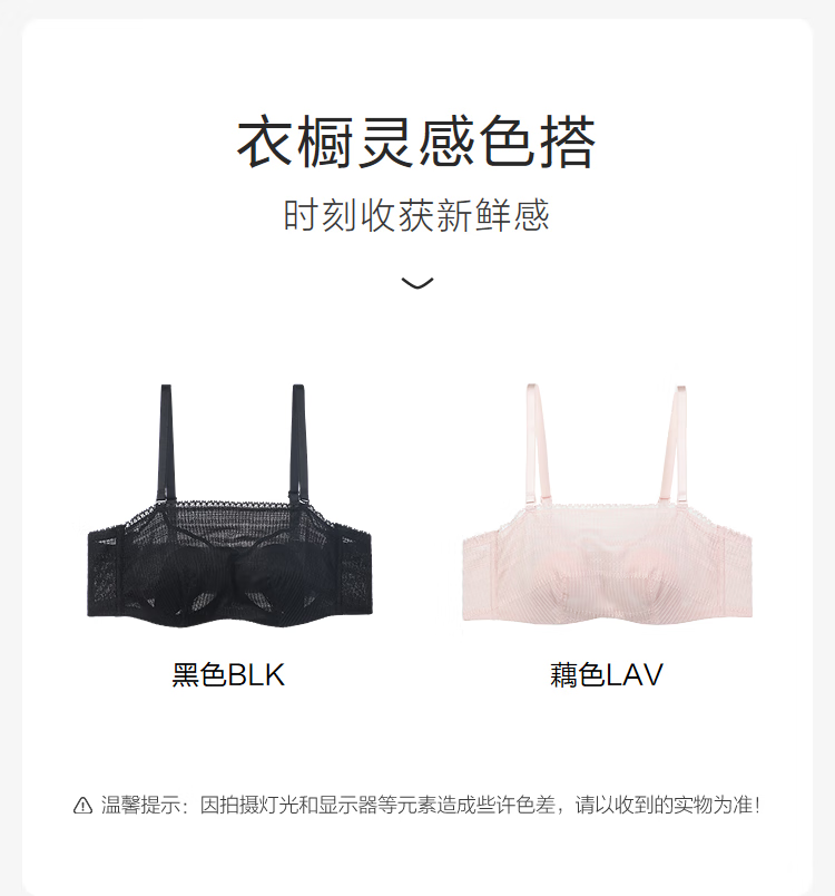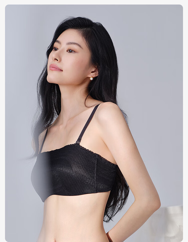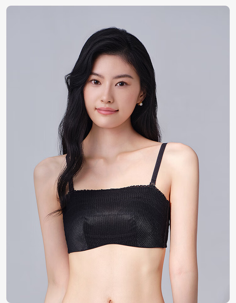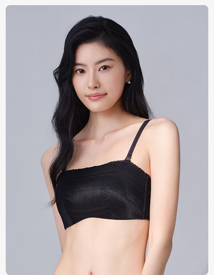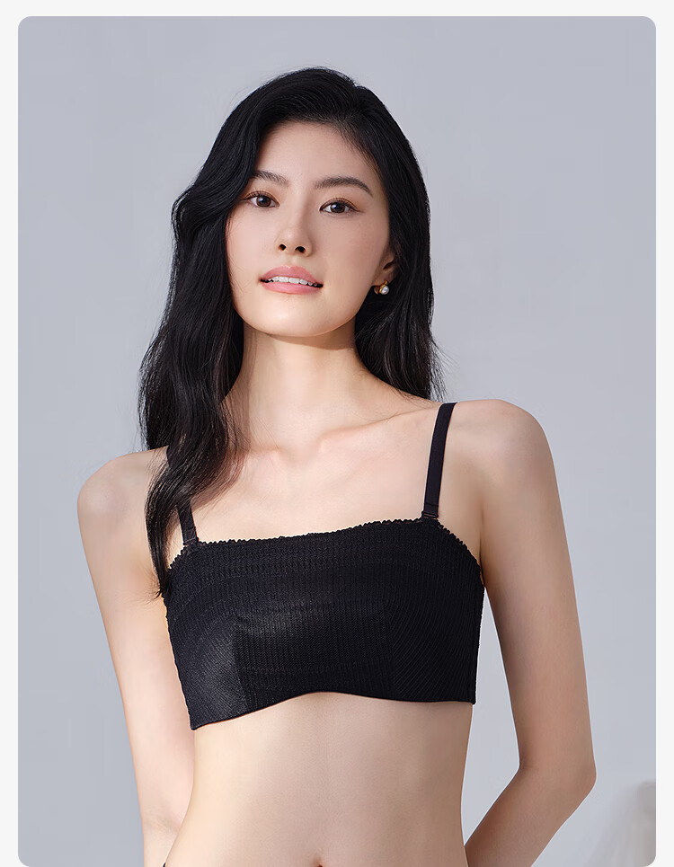【3F】安莉芳薄款大胸显小内衣兔耳朵抹胸舒适文胸EB01042 黑色BLK