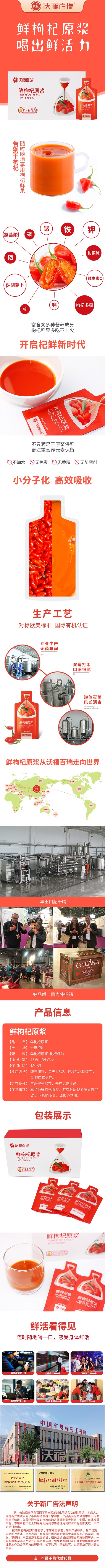 【鲜枸杞原浆】沃福百瑞鲜枸杞原浆 头茬枸杞汁 宁夏红枸杞子原液 43.6*7袋/盒