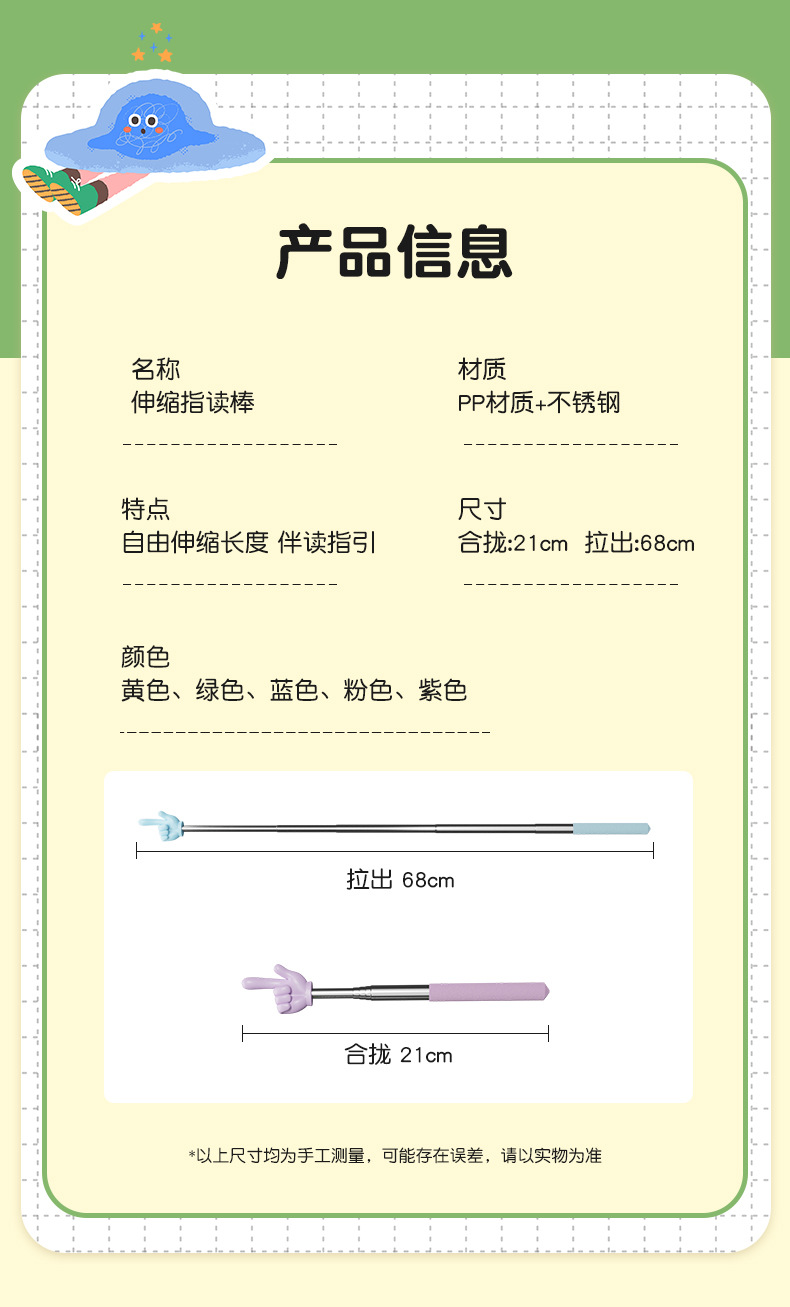 指读棒老师阅读手指可伸缩杆小手指儿童阅读指读伸缩教鞭手指点读