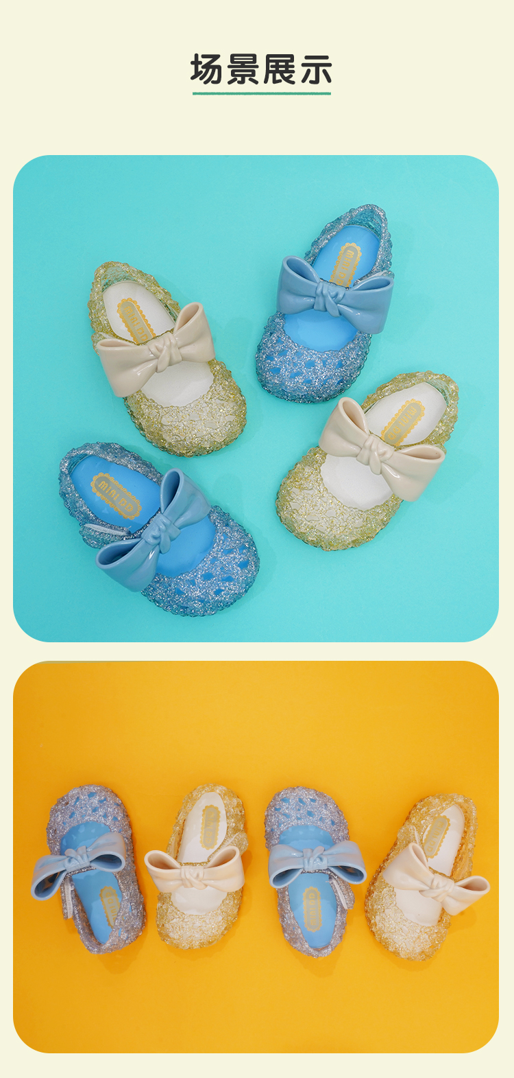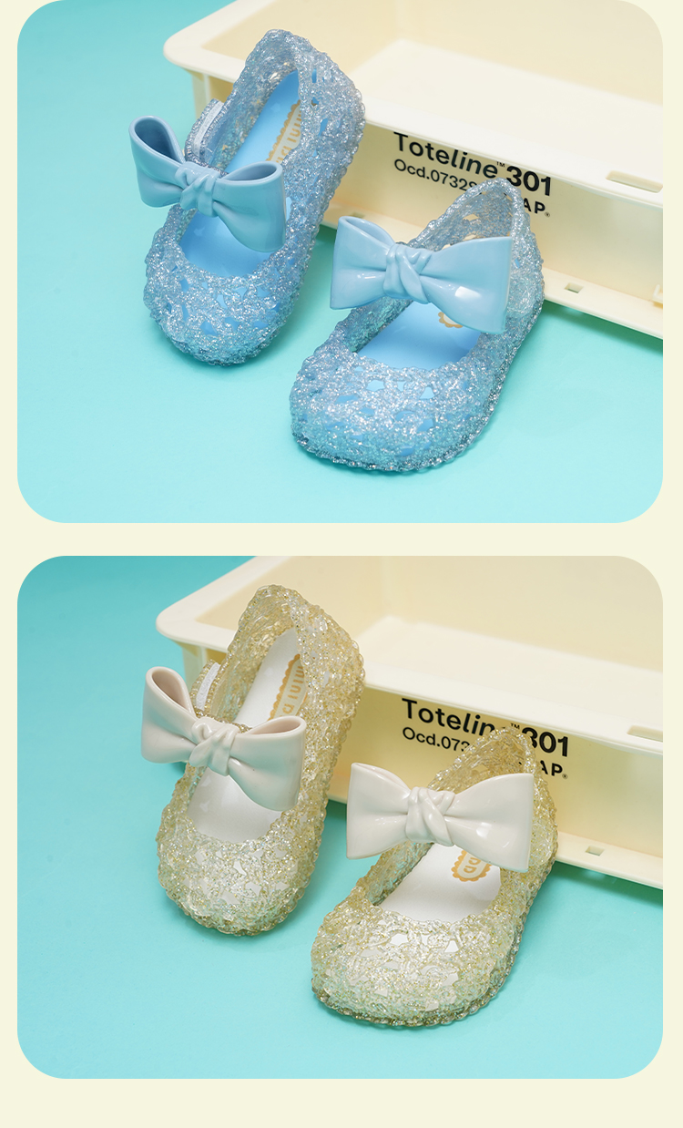 TOPSTAR&MINI DD宝宝夏季鞋子软底防滑女童蝴蝶结凉鞋防滑公主 闪彩蓝色