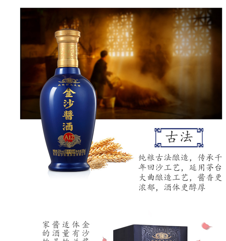 贵州金沙酱酒A12酱香型高度53度纯粮固态发酵酿造白酒商务礼盒装500ml 买1赠1(赠价值188广西亿健有机红茶礼盒)