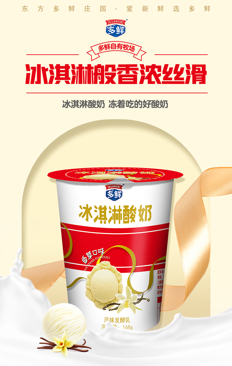 东方多鲜庄园酸奶 冰淇淋香草口味168g*12杯酸奶 风味发酵乳瓶装