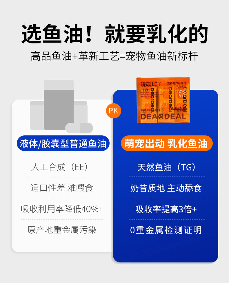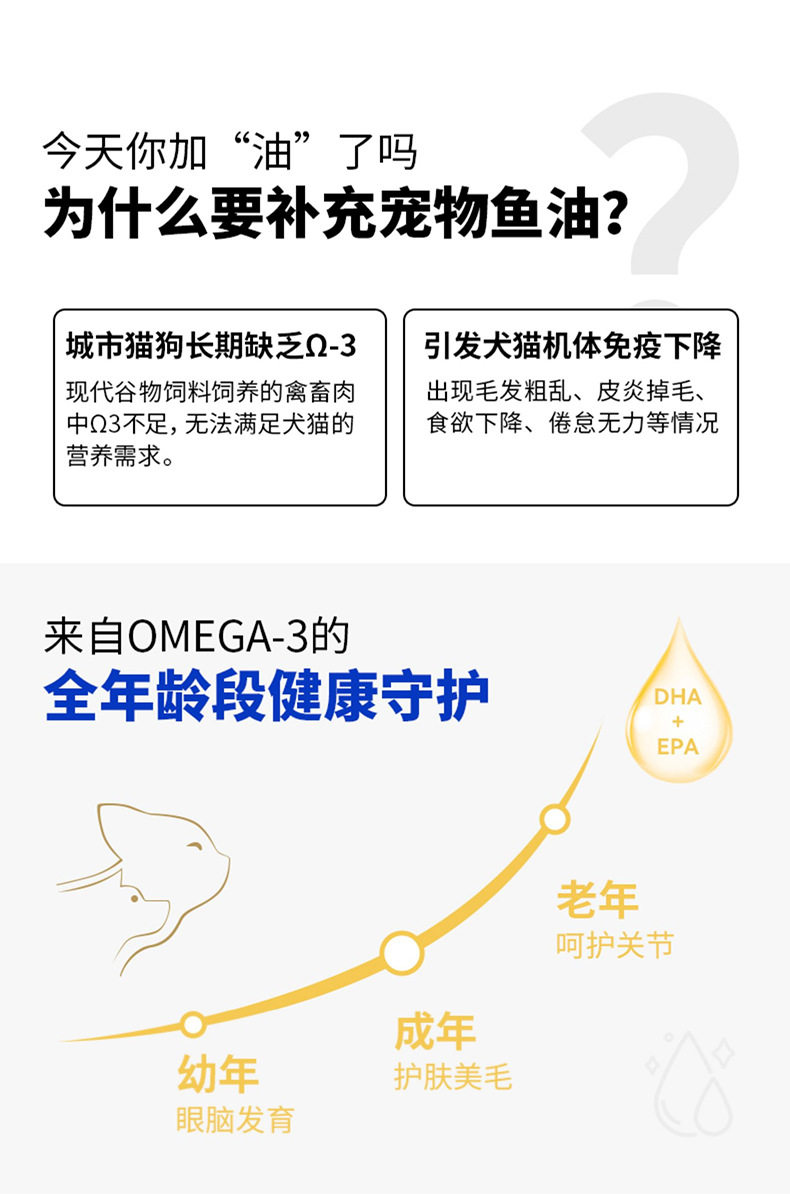 萌宠出动乳化鱼油猫犬通用深海鱼油猫狗美毛护肤宠物营养补充剂