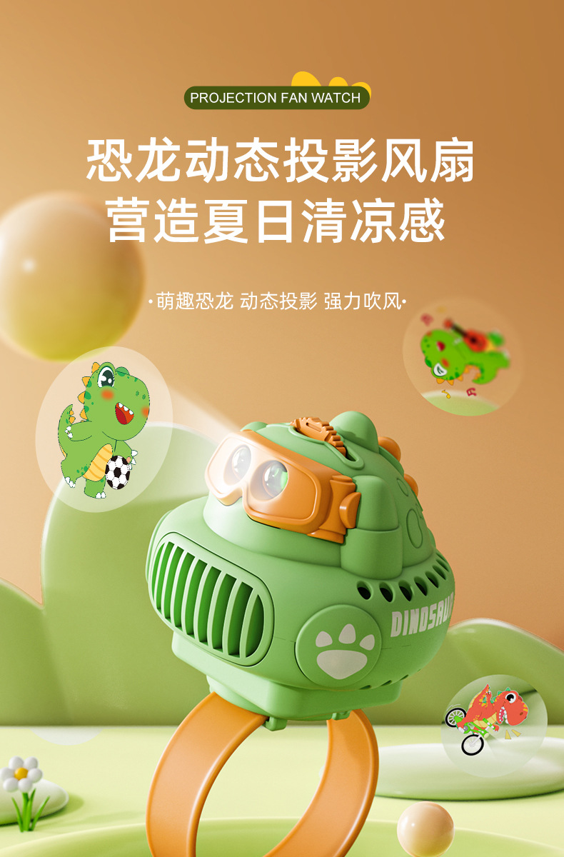 【可以投影的小风扇!飞船投影仪手表风扇便携手腕风扇】萌趣恐龙,动态投影,三挡风力随意调节,硅胶啪啪圈,桌面静音迷你三挡USB中性小风扇粉丝专属