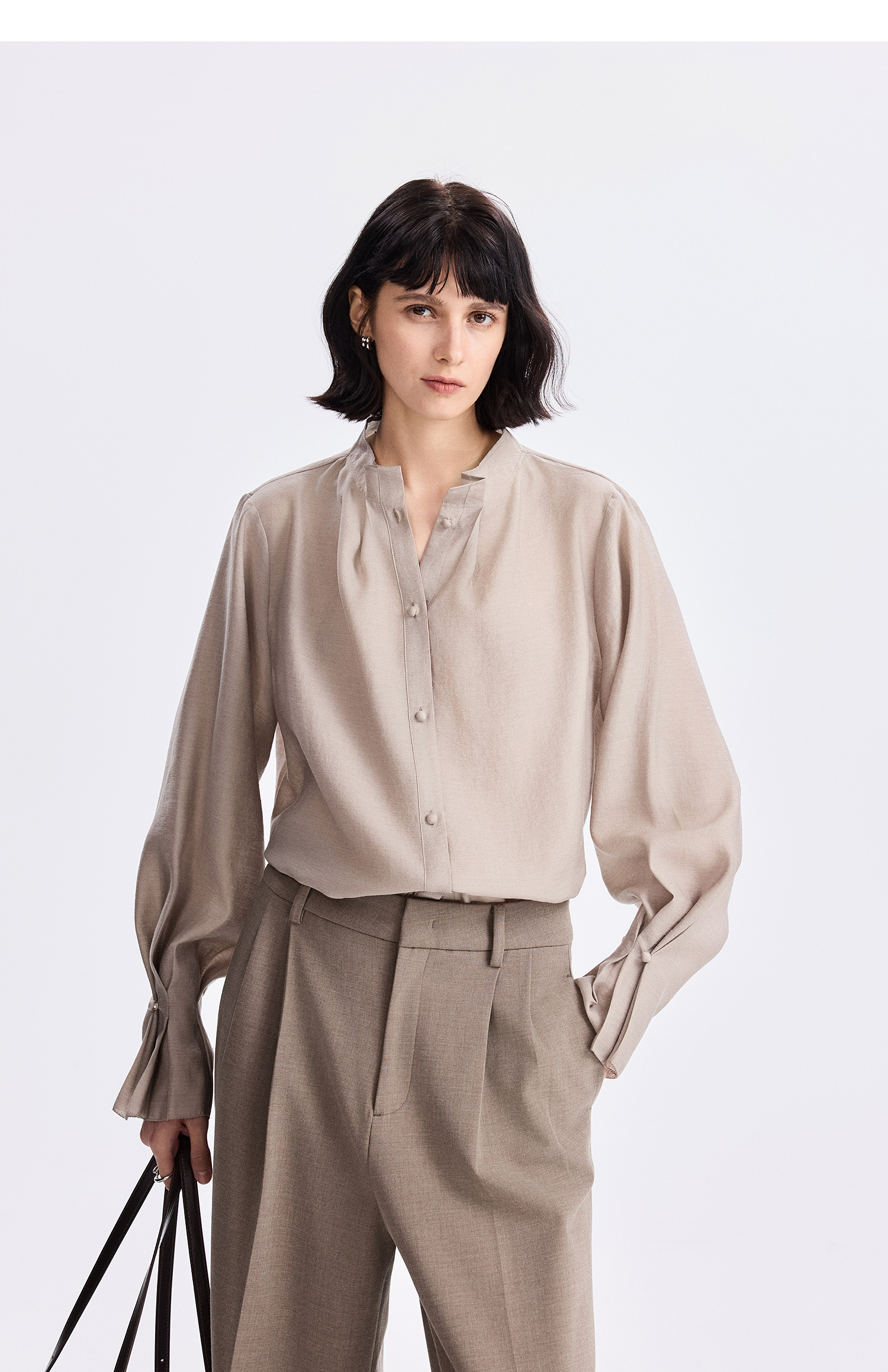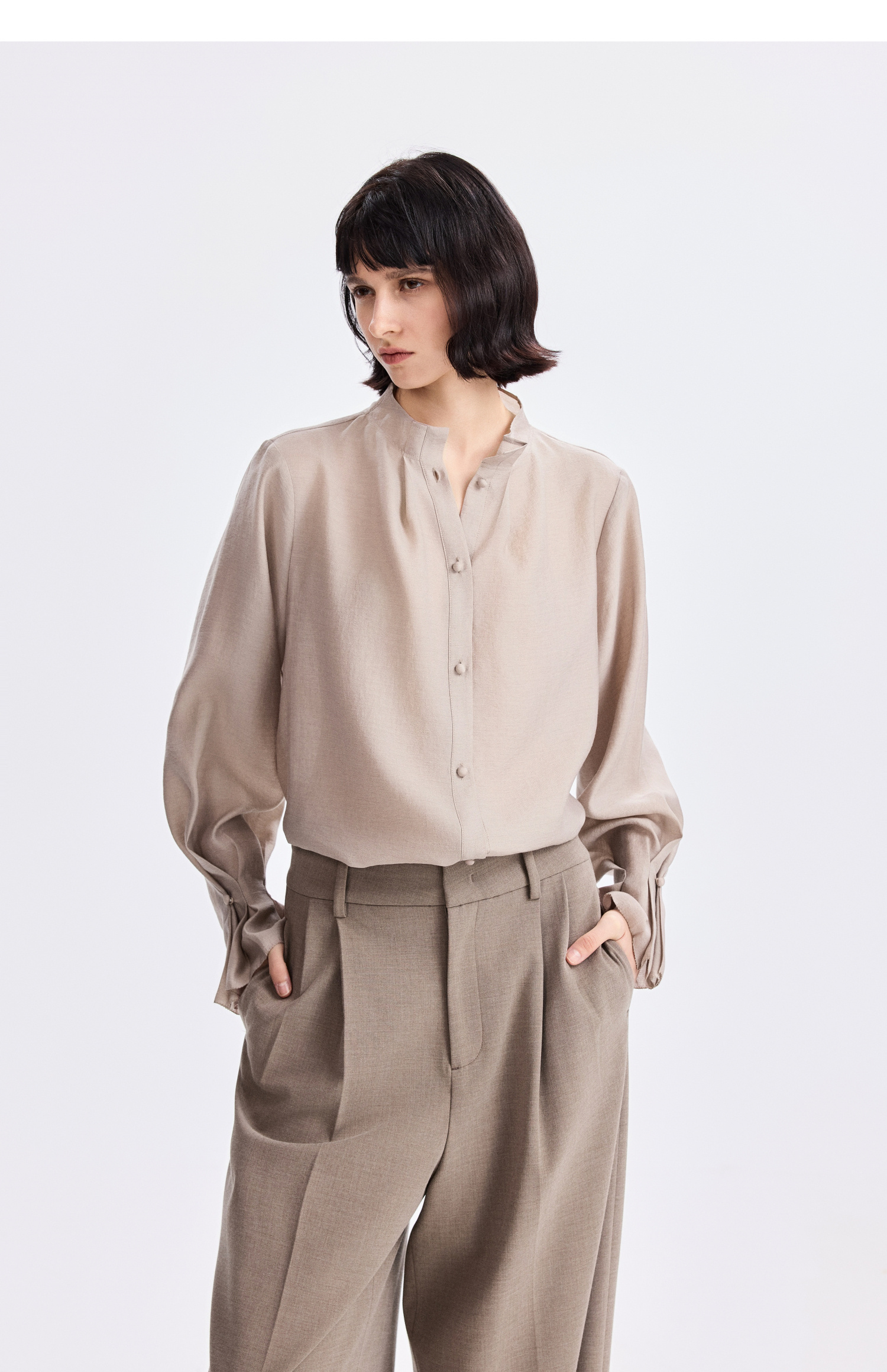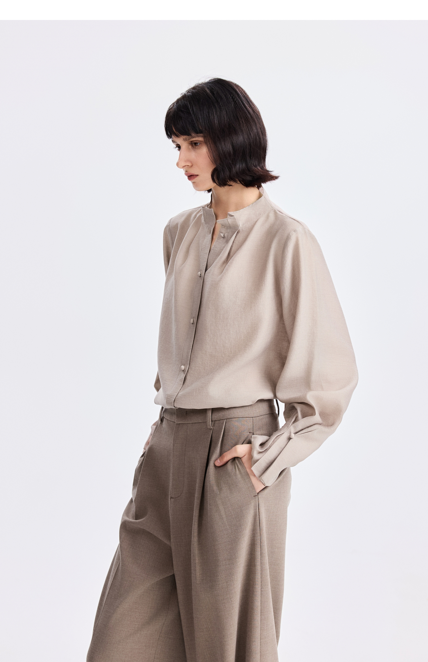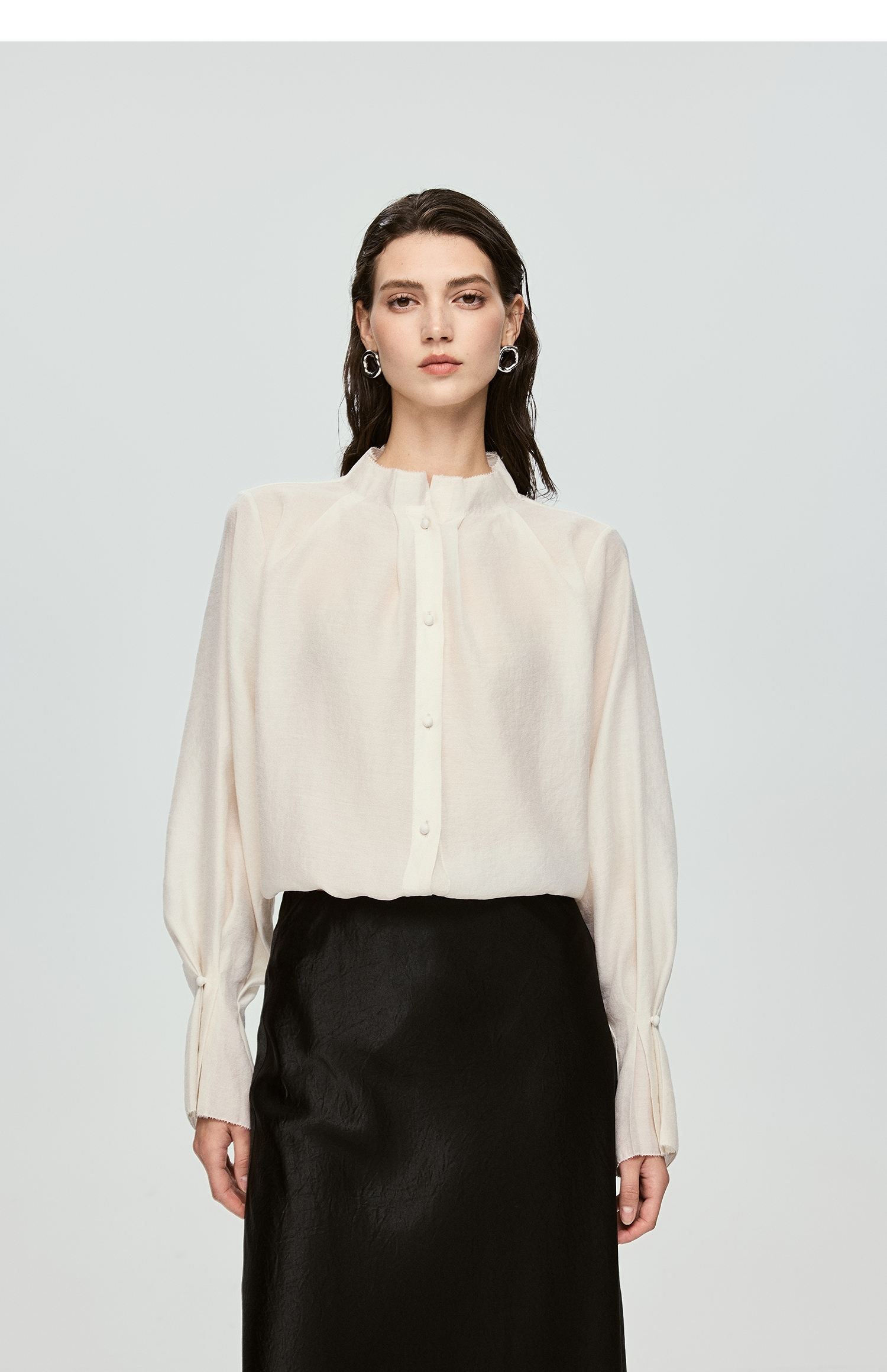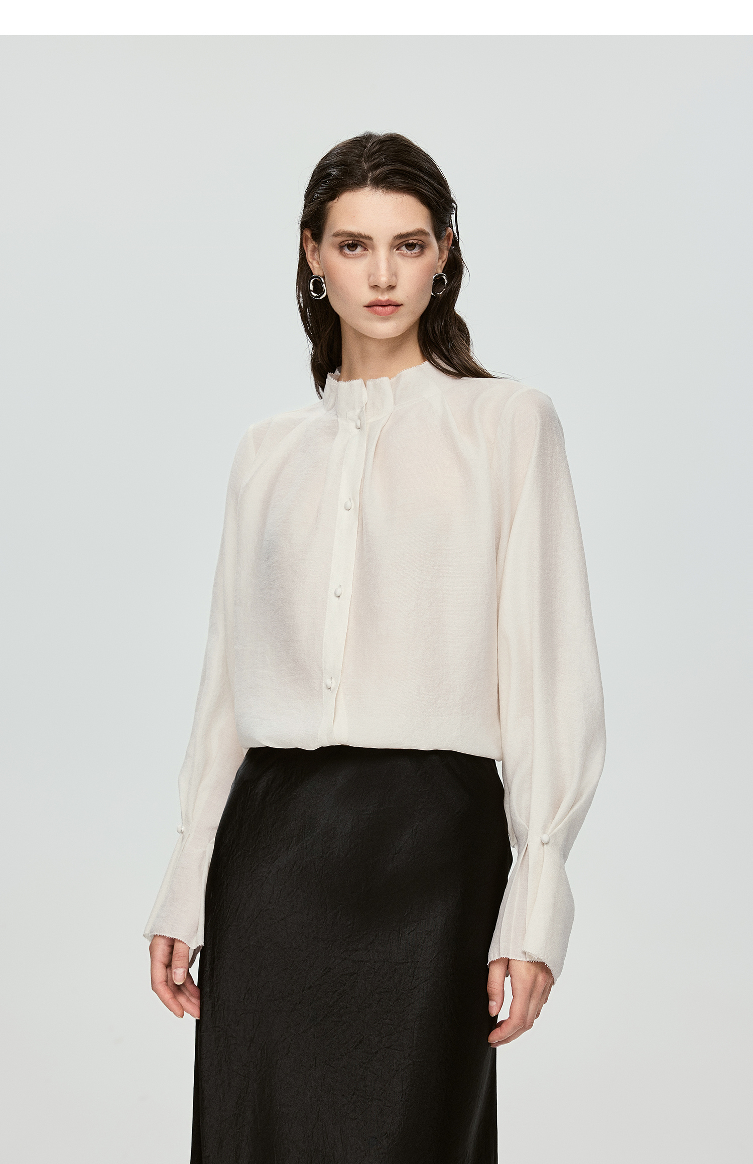 棉仓366604009-重工立领花边领-松弛感衬衫