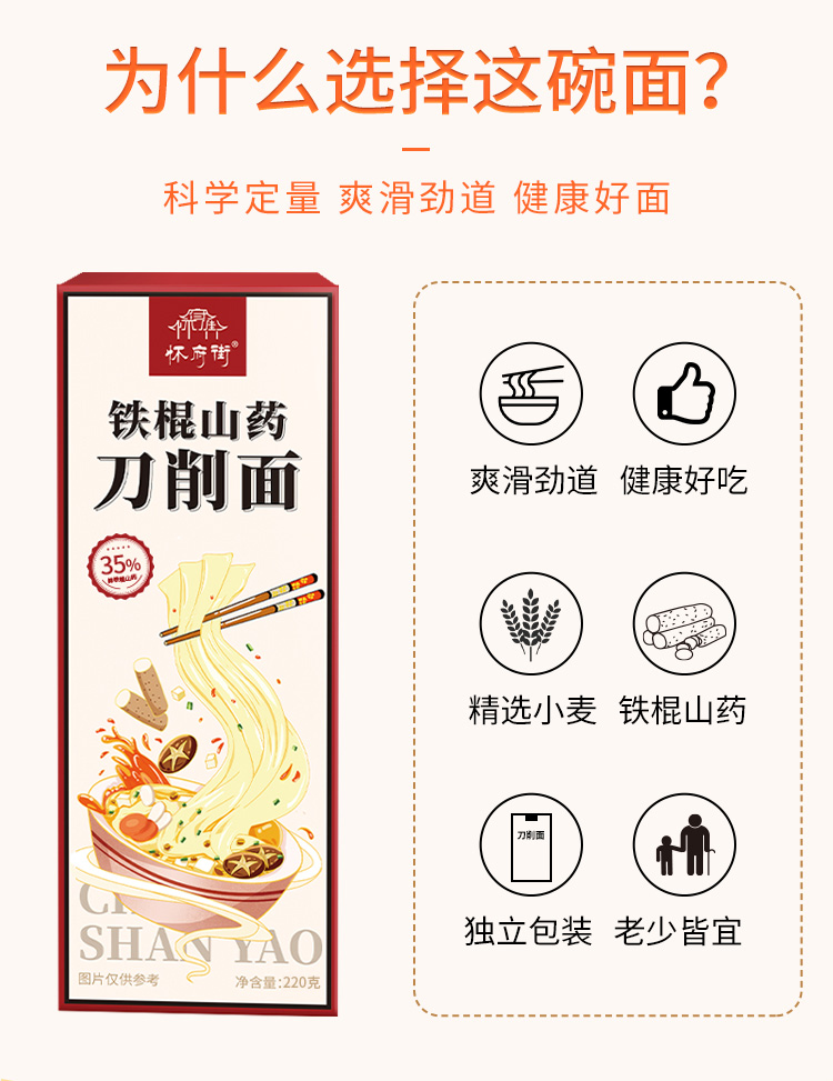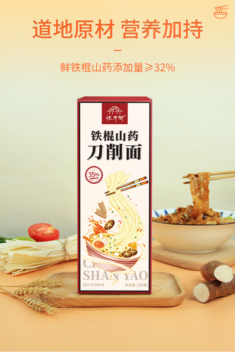 怀府街铁棍山药刀削面 | 劲道十足顺滑爽口方便易煮独立包装220g/盒(喜悦分享)