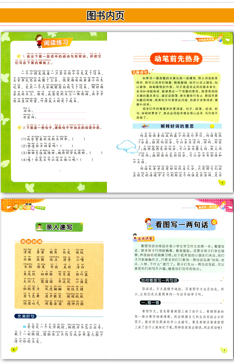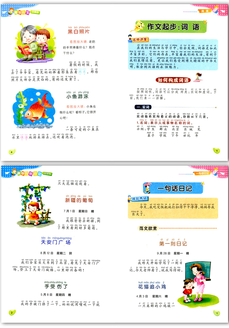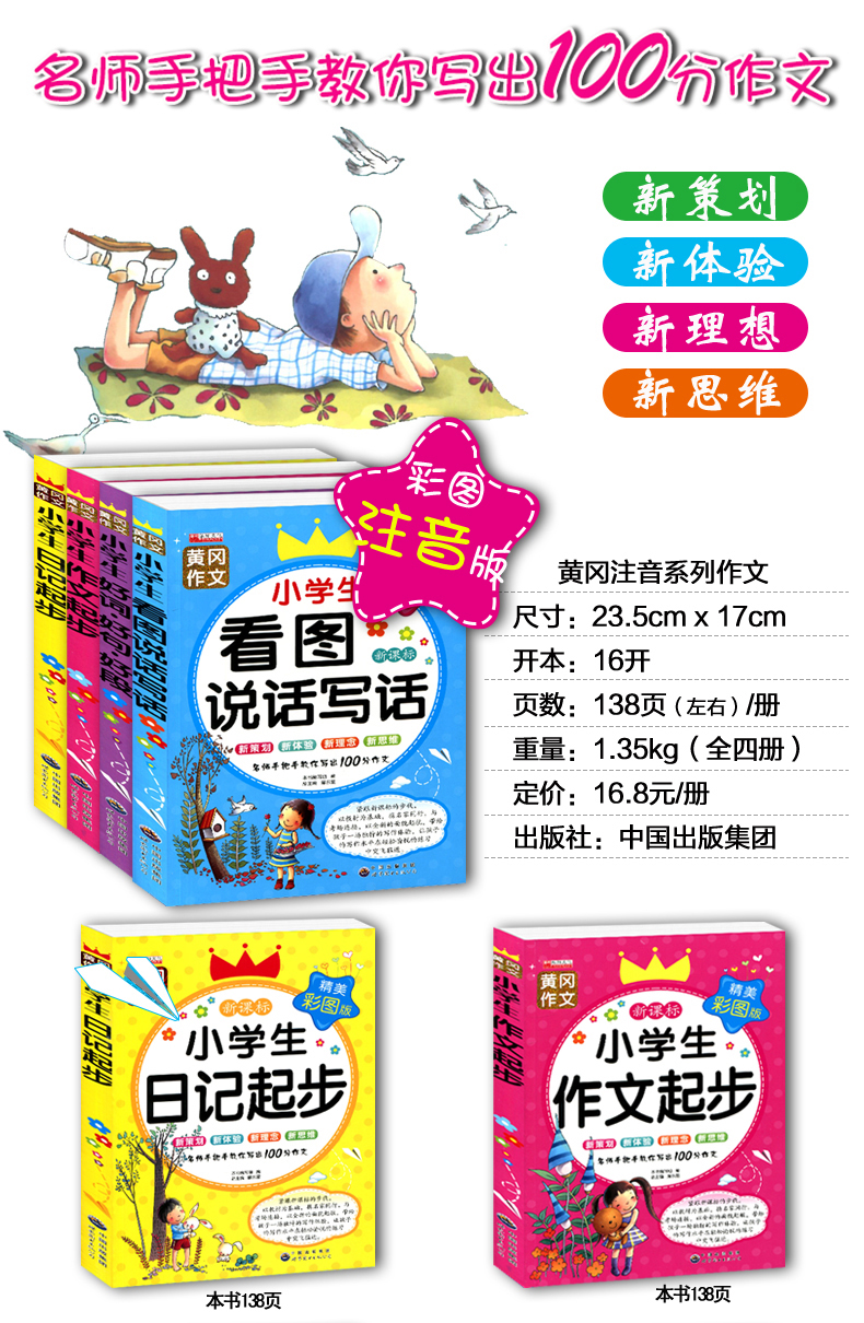正版黄冈4册 小学生日记起步 看图写话一年级 二年级作文书大全辅导必读 阅读带拼音训练 入门 起步范文 好词好句好段人教版三年级