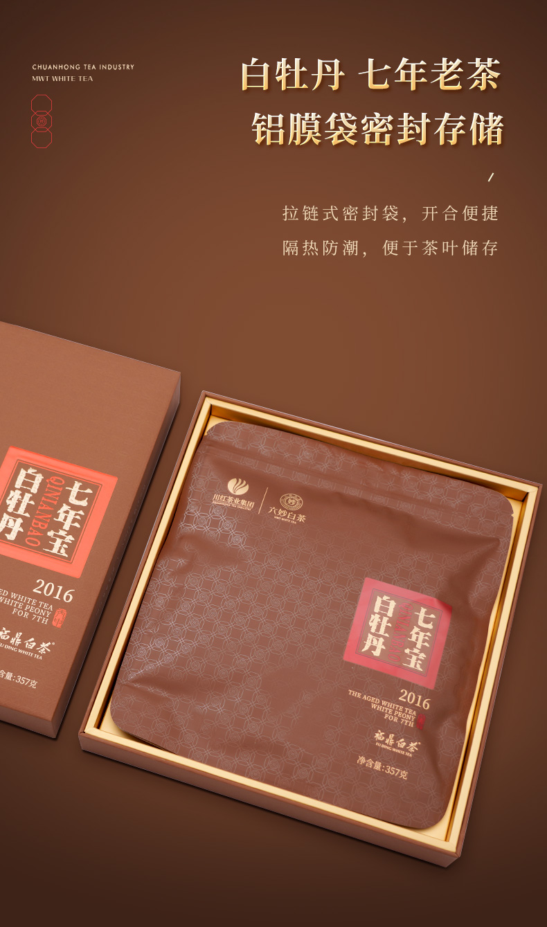 川红茶业六妙白茶七年宝白牡丹经典非遗礼盒357g三级寿眉福鼎白茶