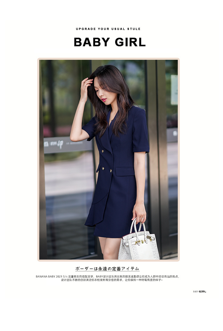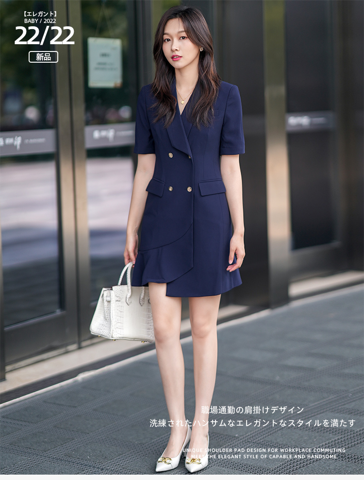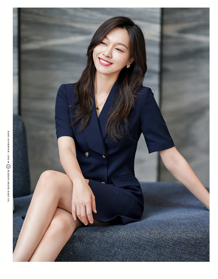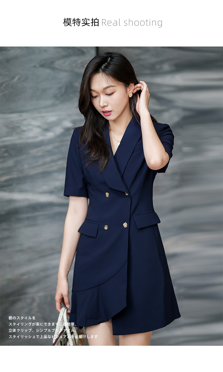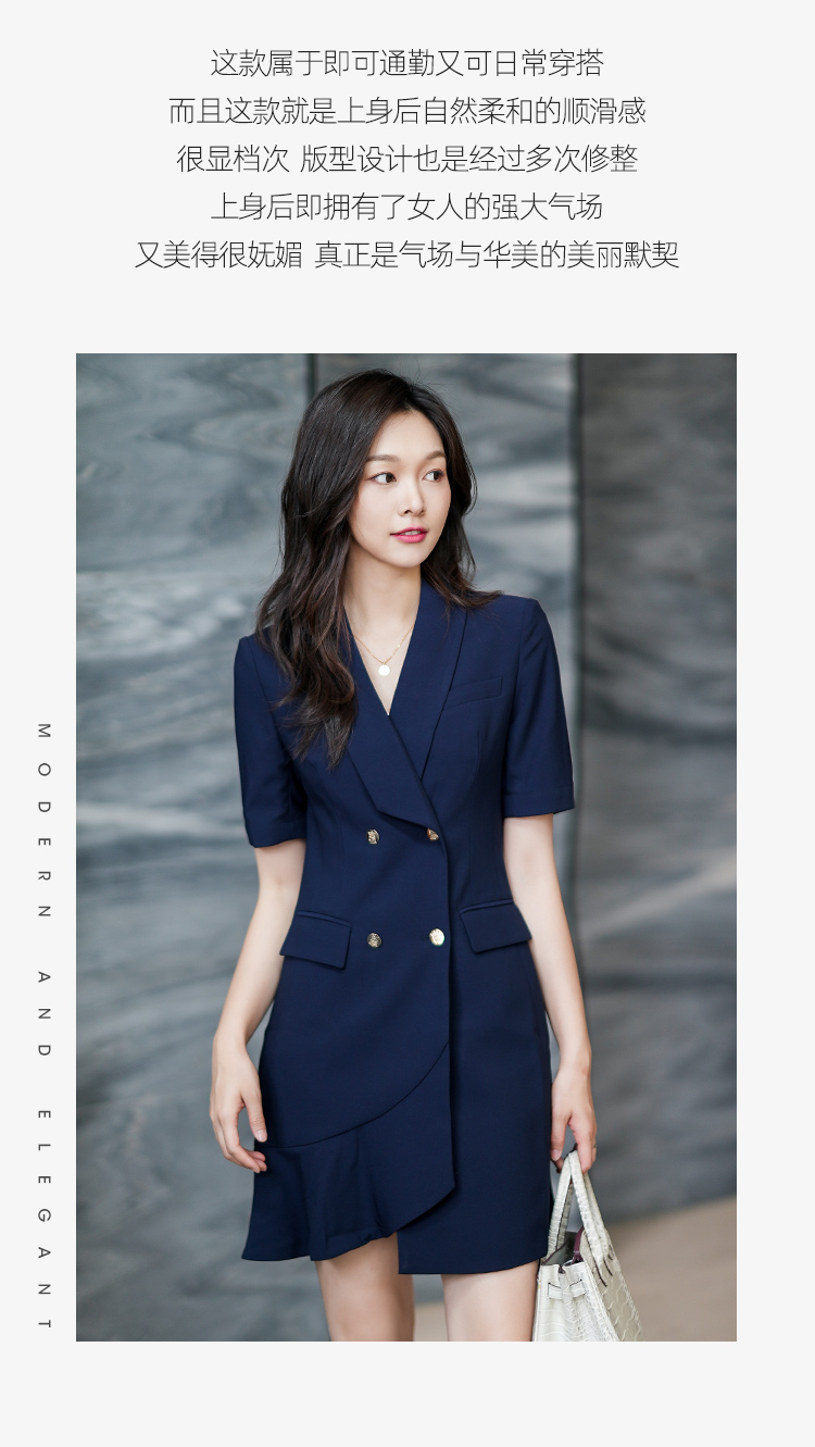 藏青色职业连衣裙女夏季短袖气质正装通勤工作服售楼部裙子