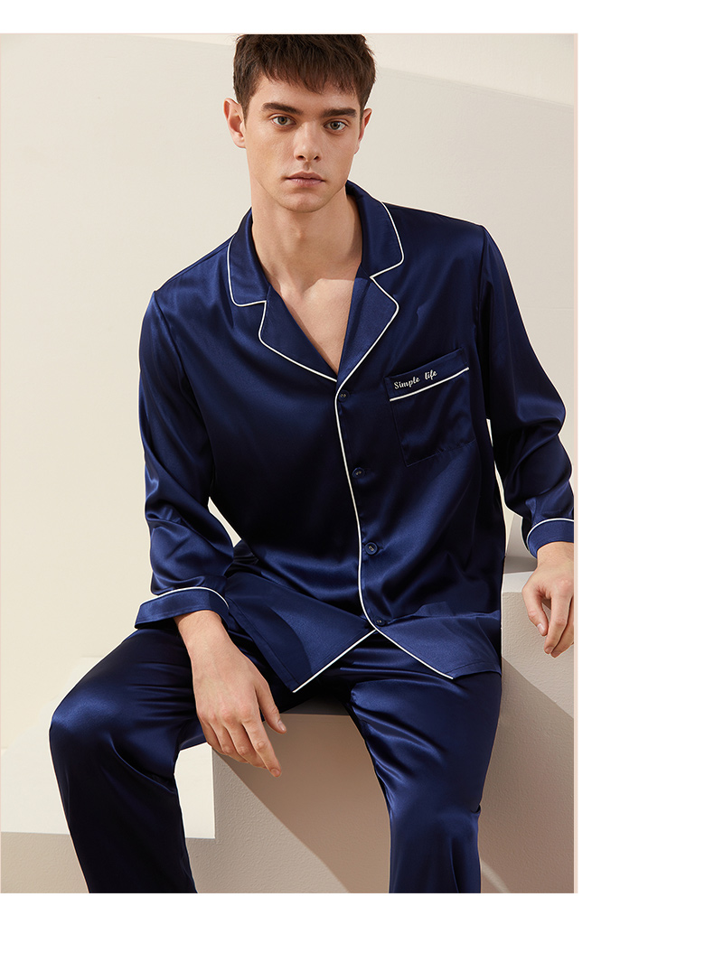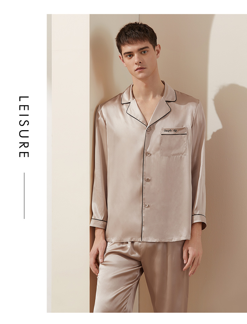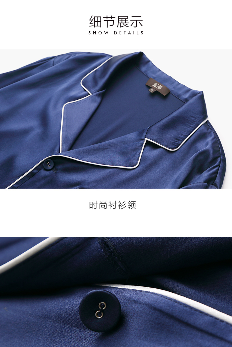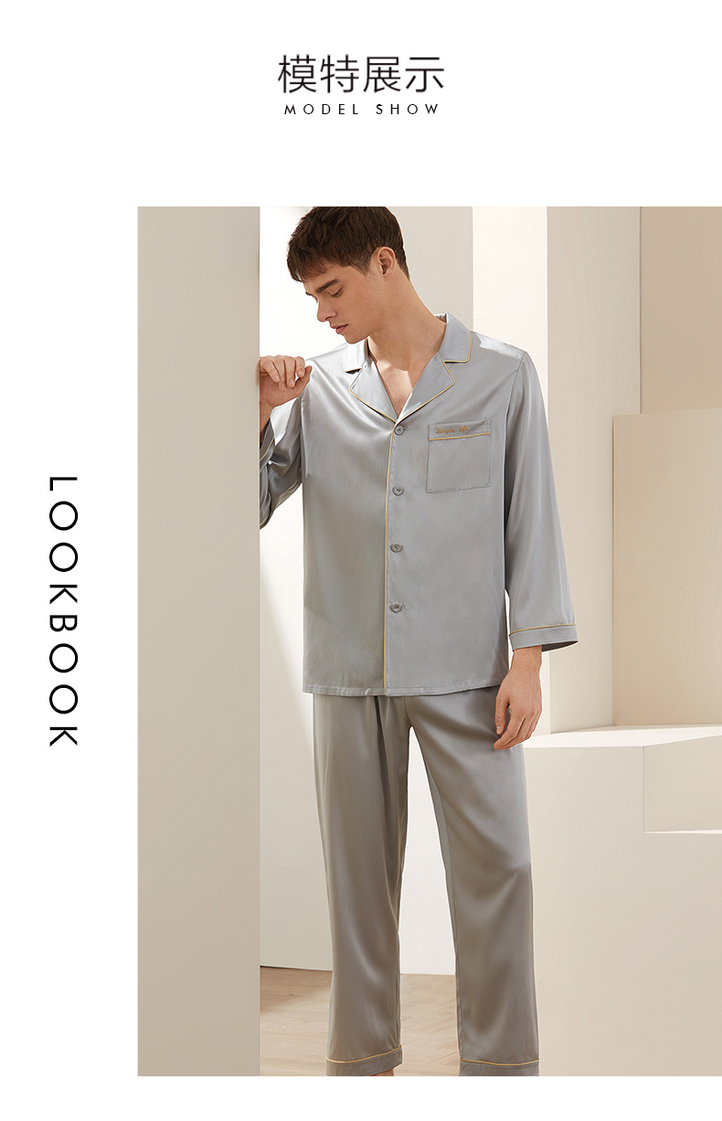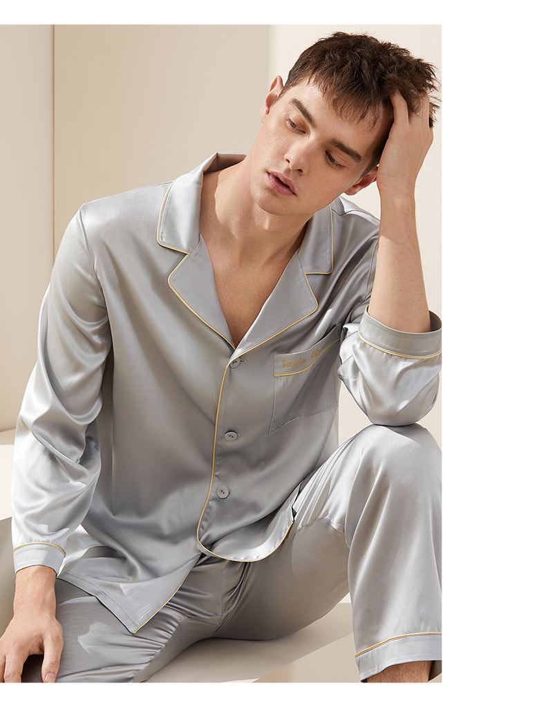 金三塔真丝睡衣绣花两件套男重磅100%桑蚕丝长袖简约家居服睡衣衣裤套 YSMAA201(限价款)