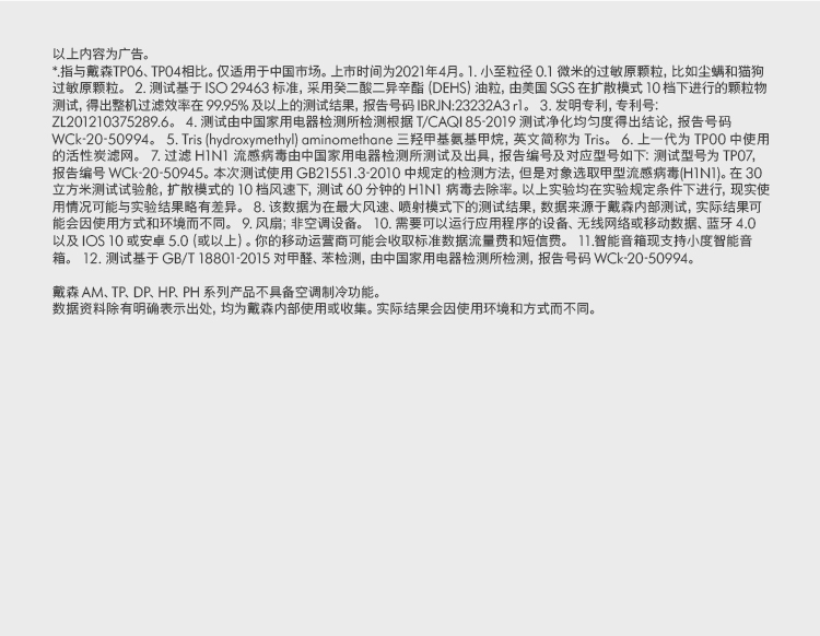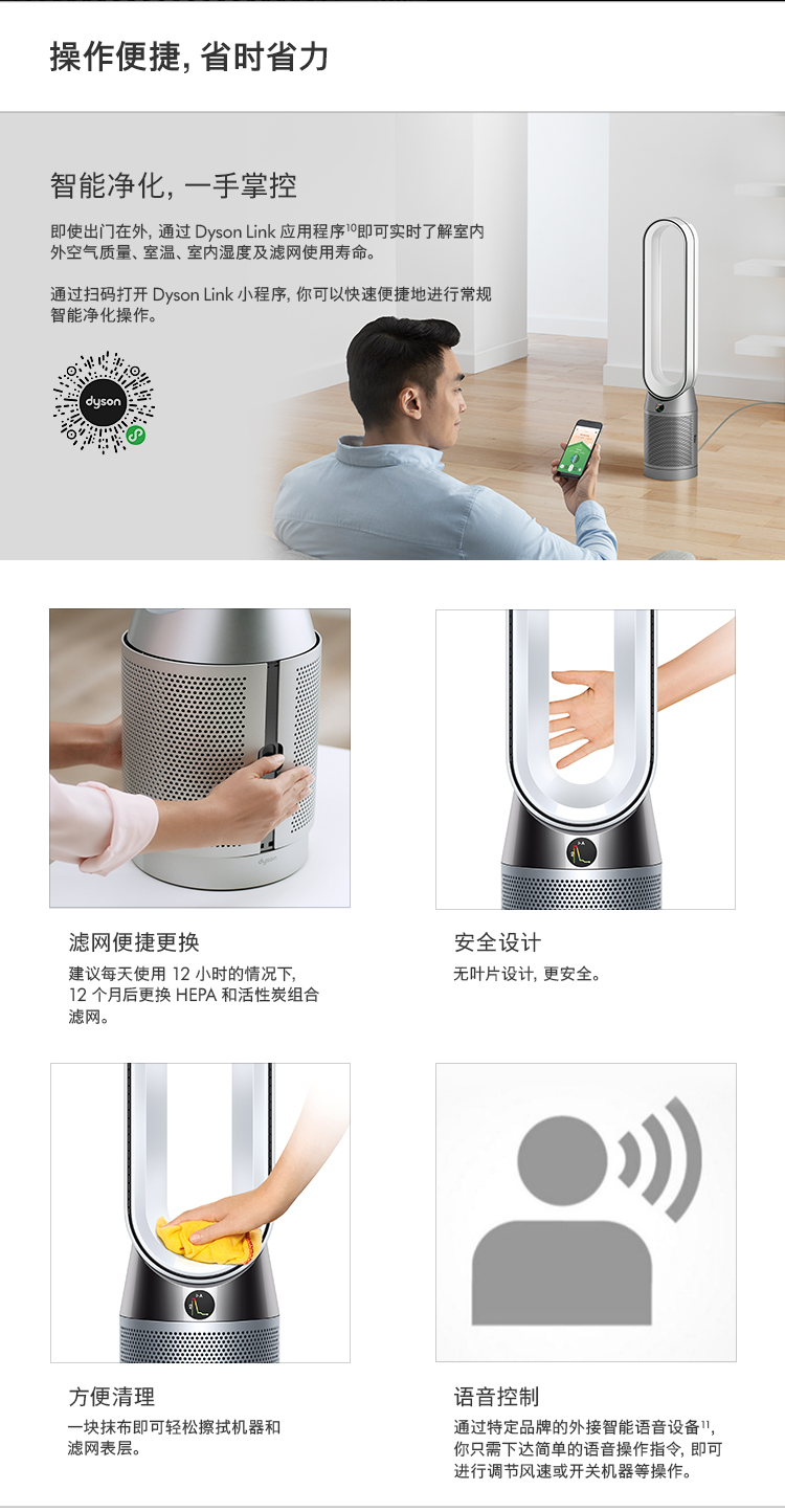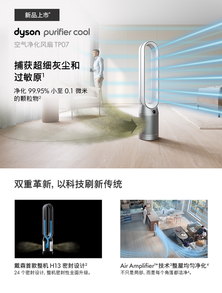 【6F】戴森DYSON TP07空气净化风扇 整机H13密封 净化有害气体 吸附甲醛 【白银色】