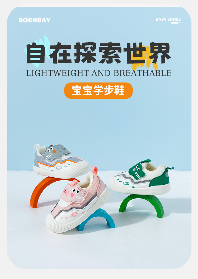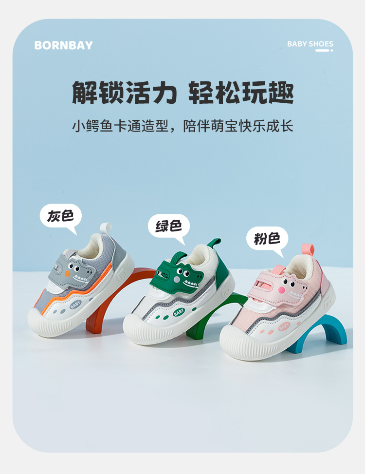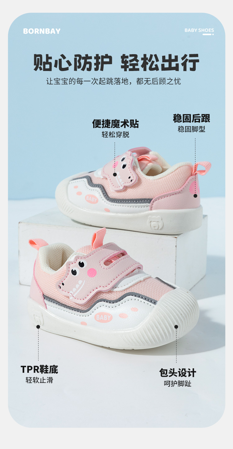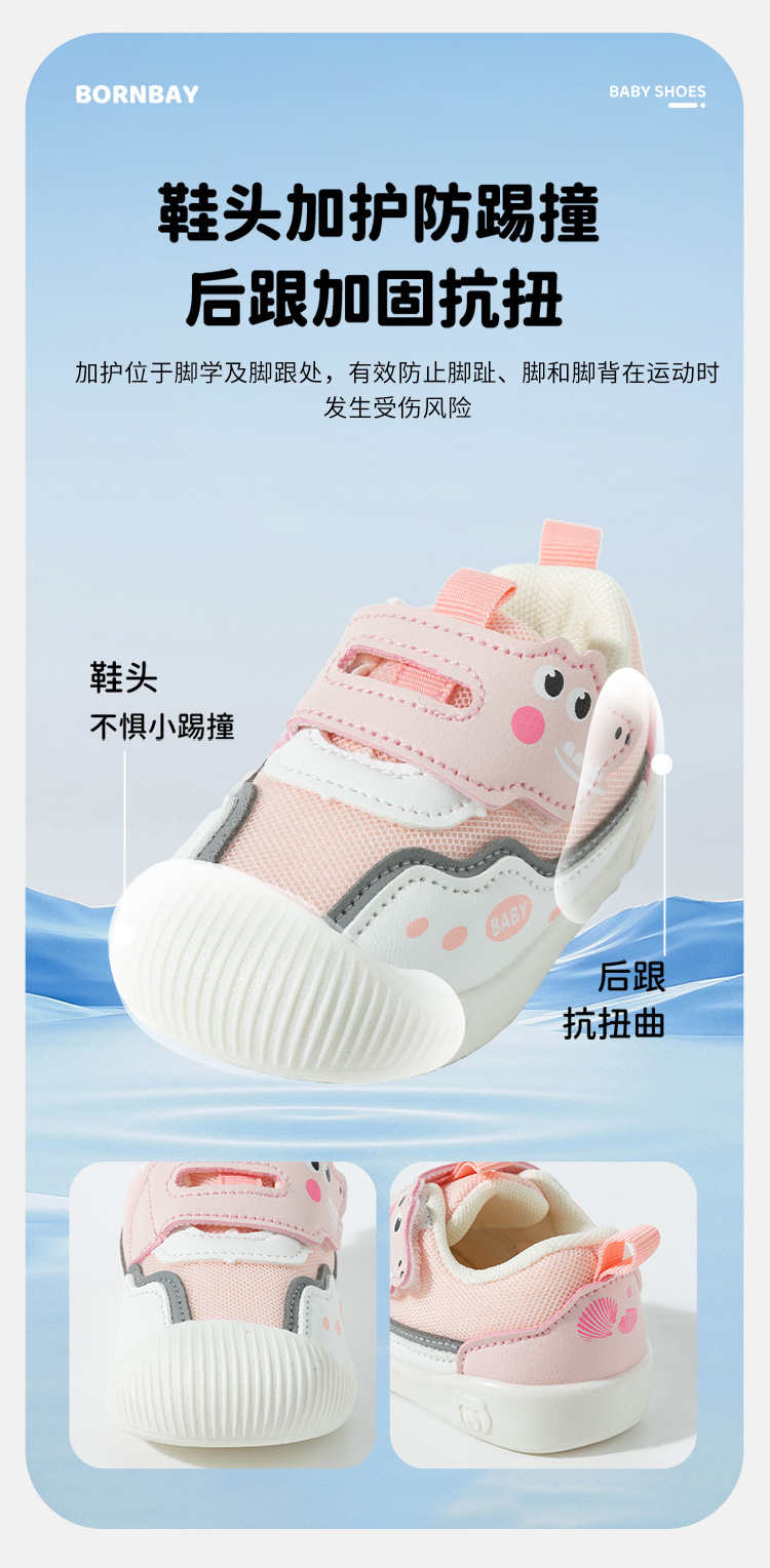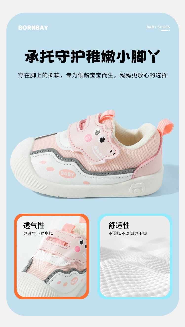 贝贝怡2025春秋新款网眼透气男女宝宝童鞋柔软舒适学步鞋包头休闲鞋ZB1EX012
