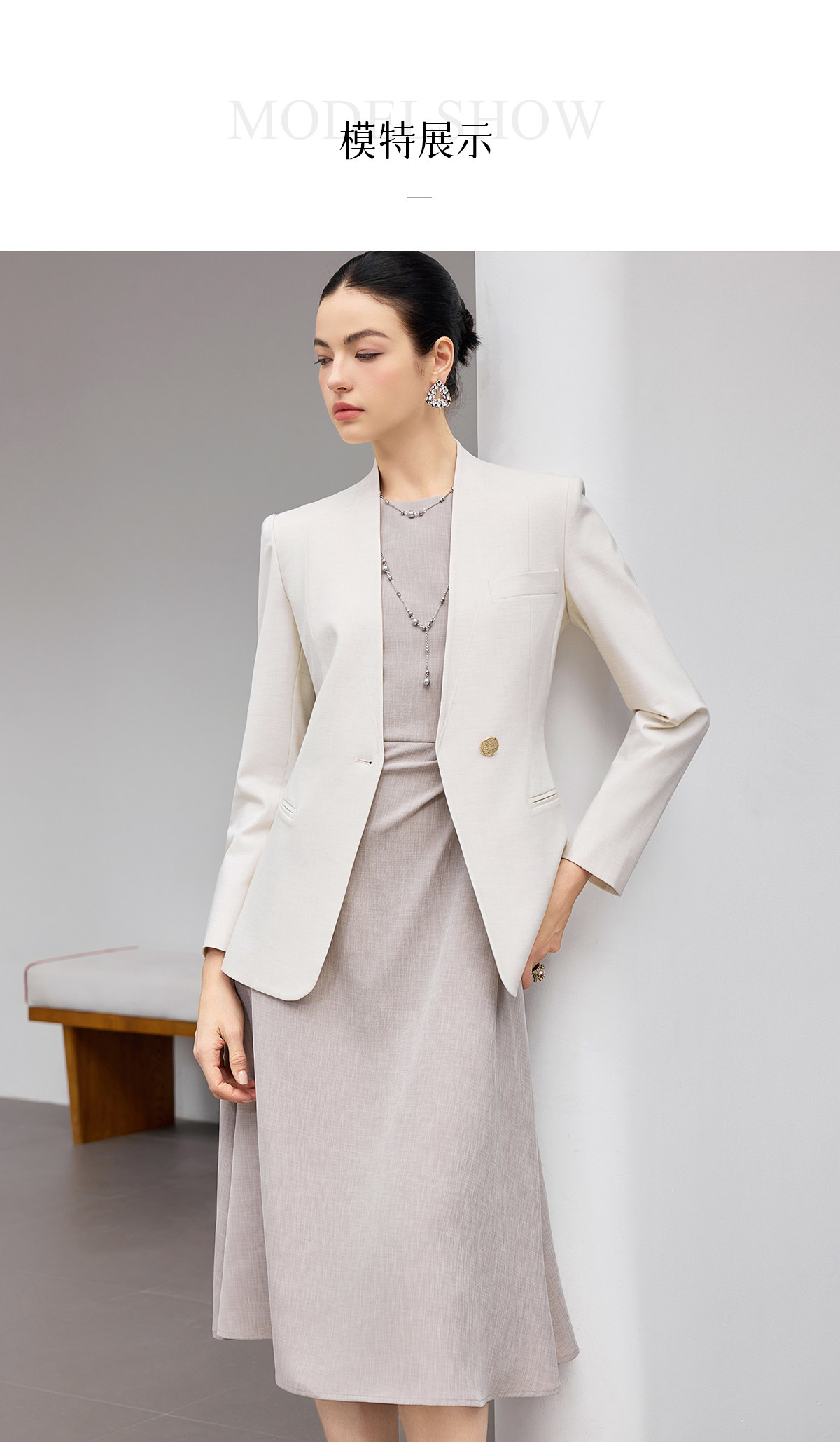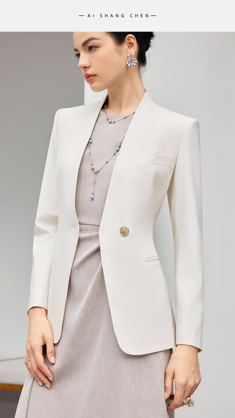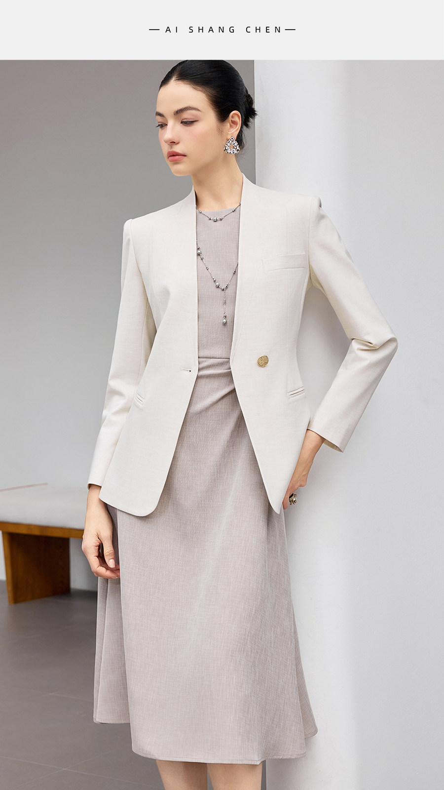 艾尚臣连衣裙两件套女2026春季新款米白色高级感职业气质西装套装