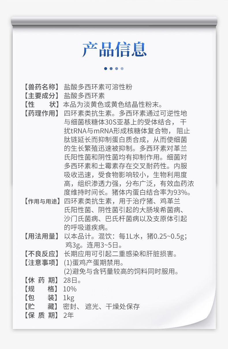 华畜兽用多西环素猪用喘气强力霉素鸡鸭禽药感冒咳嗽肠炎腹泻兽药