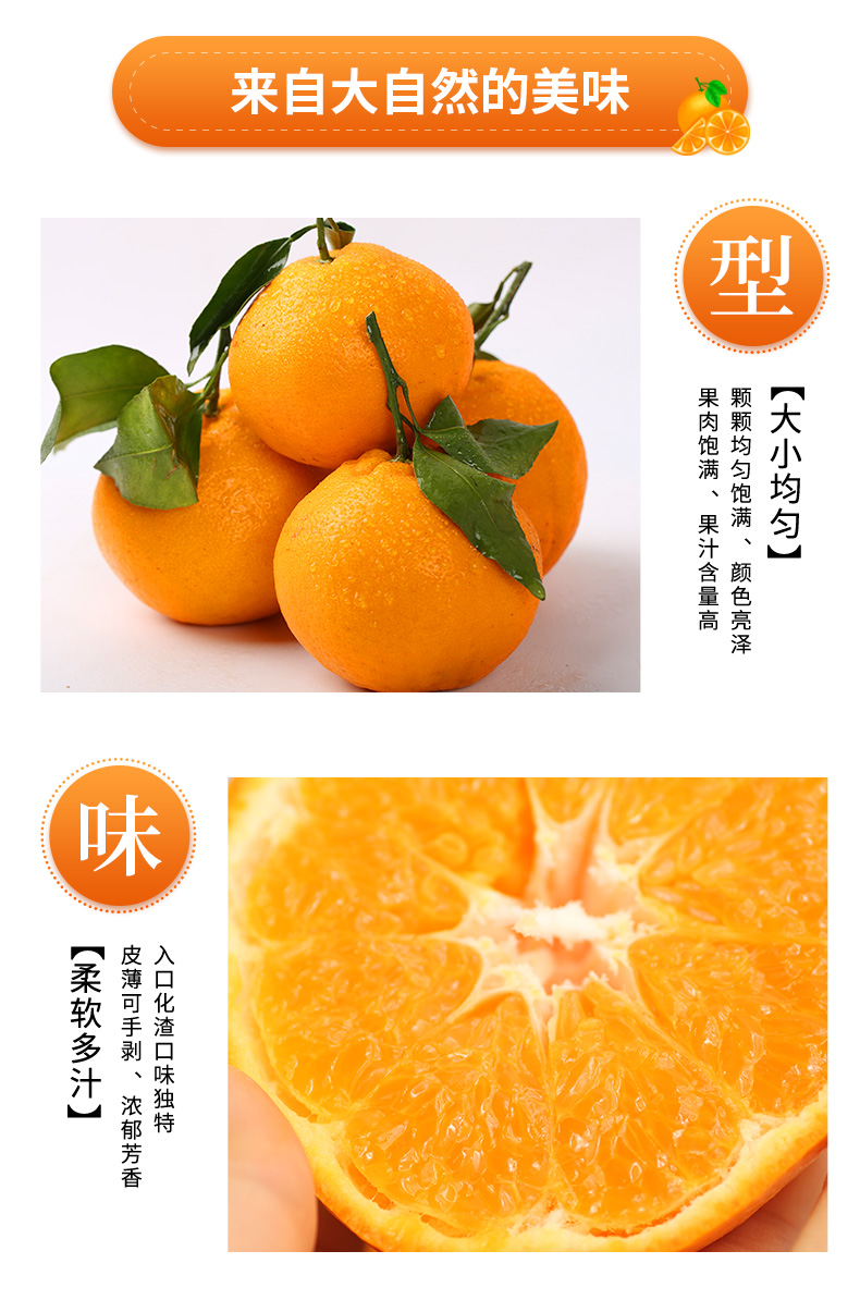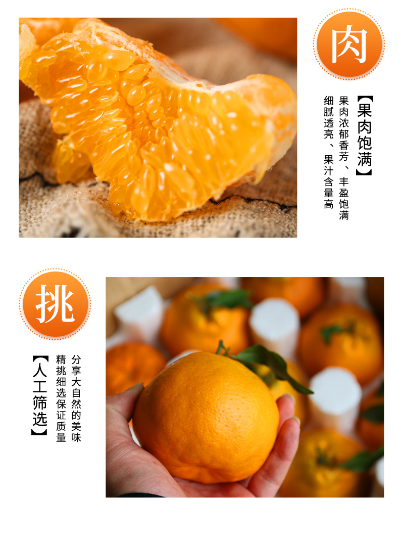 品名:春见耙耙柑规格1:2.5斤家庭装(中果) 注:净重2.4-2.5斤,约6-8枚,果径70-80mm 规格2:5斤彩箱装(中果) 注:净重:4.8-5斤,约12-17枚,果径70-80mm 规格3:8斤彩箱装(中果) 注:净重7.8-8斤,约19-24枚,果径70-80mm 规格4:5斤彩箱装(大果) 注:净重4.8-5斤,约7-12枚,果径80-90mm 规格5:8斤彩箱装(大果) 注:净重7.8-8斤,约13-18枚,果径80-90mm 规格6:12枚礼盒装(精品大果) 注:净重5.8-6斤,12枚装,果径85-95mm 包装方式:纸箱/彩箱/礼盒+泡沫底托 快递:圆通、邮政,中通,申通、韵达随机发货 运费模板:新疆、西藏,内蒙、海南、港澳台不发货;上海,深圳,山西,天津,河北,陕西+2元;北京+4元,甘肃、宁夏、青海、黑龙江,吉林,辽宁+5元; 发货时效:48-72h 发货地/产地:四川浦江 保质期:收到常温保存3-5天,冷藏保存5-7天,冷藏 风味更佳 生产日期:现摘现发 销售售卖期:11月下旬-来年3月 周六周天、节假日除外,早上十点之前的订单是48小时发货 ,到货时间约为2-5天,请您耐心等待 |