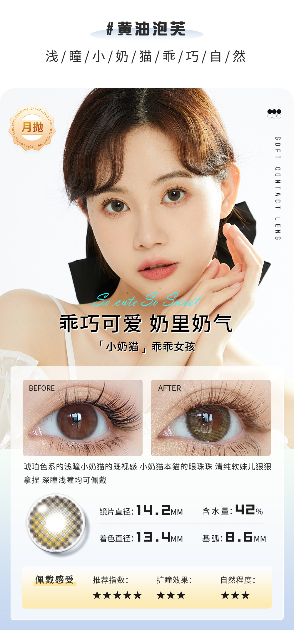 【美瞳三重奏】自然与扩瞳的完美融合半年抛美瞳小蜜蜂绿棕/渐变琉光棕/大眼女孩大小直径(YB25,一副拍二)