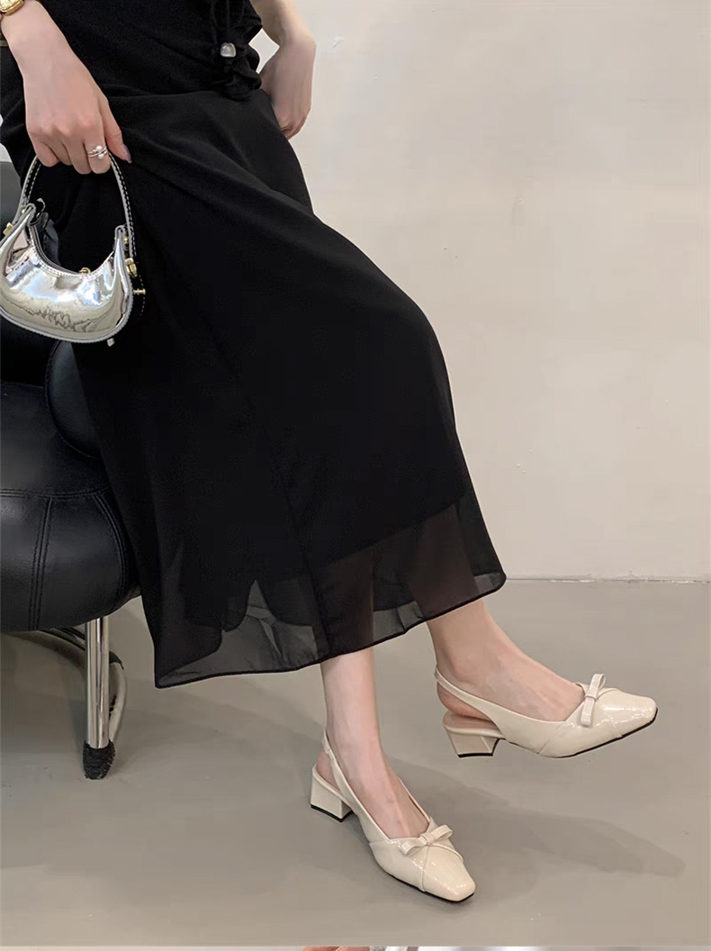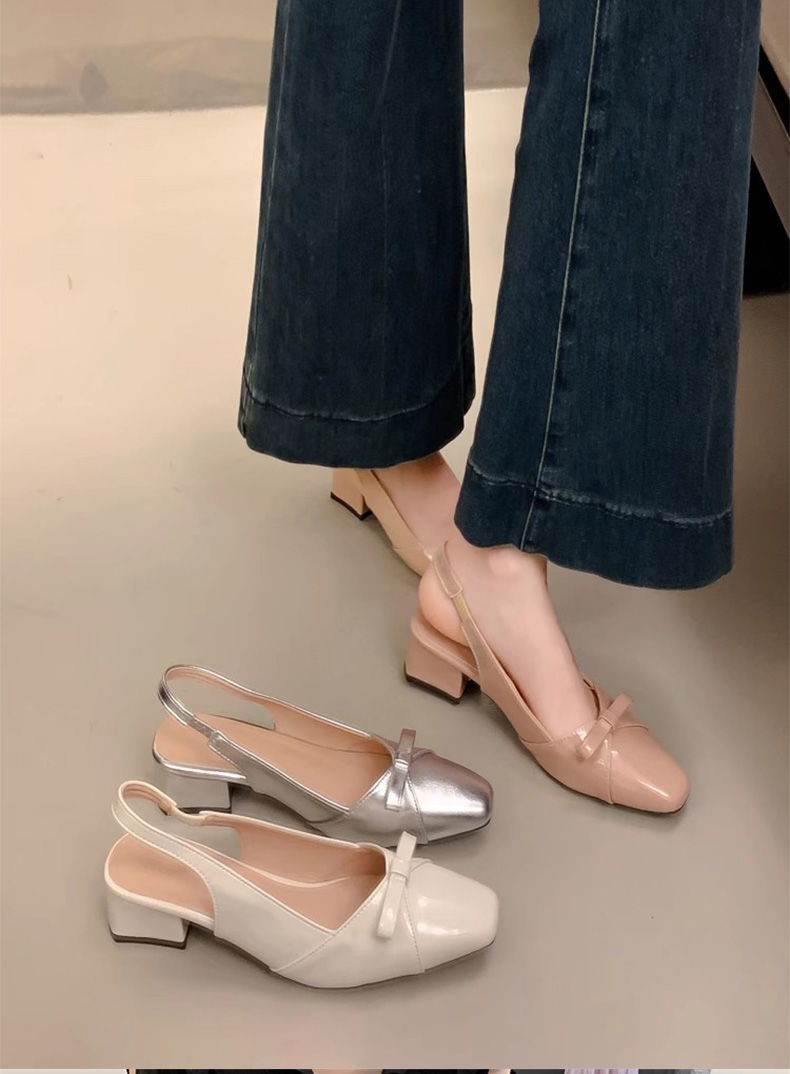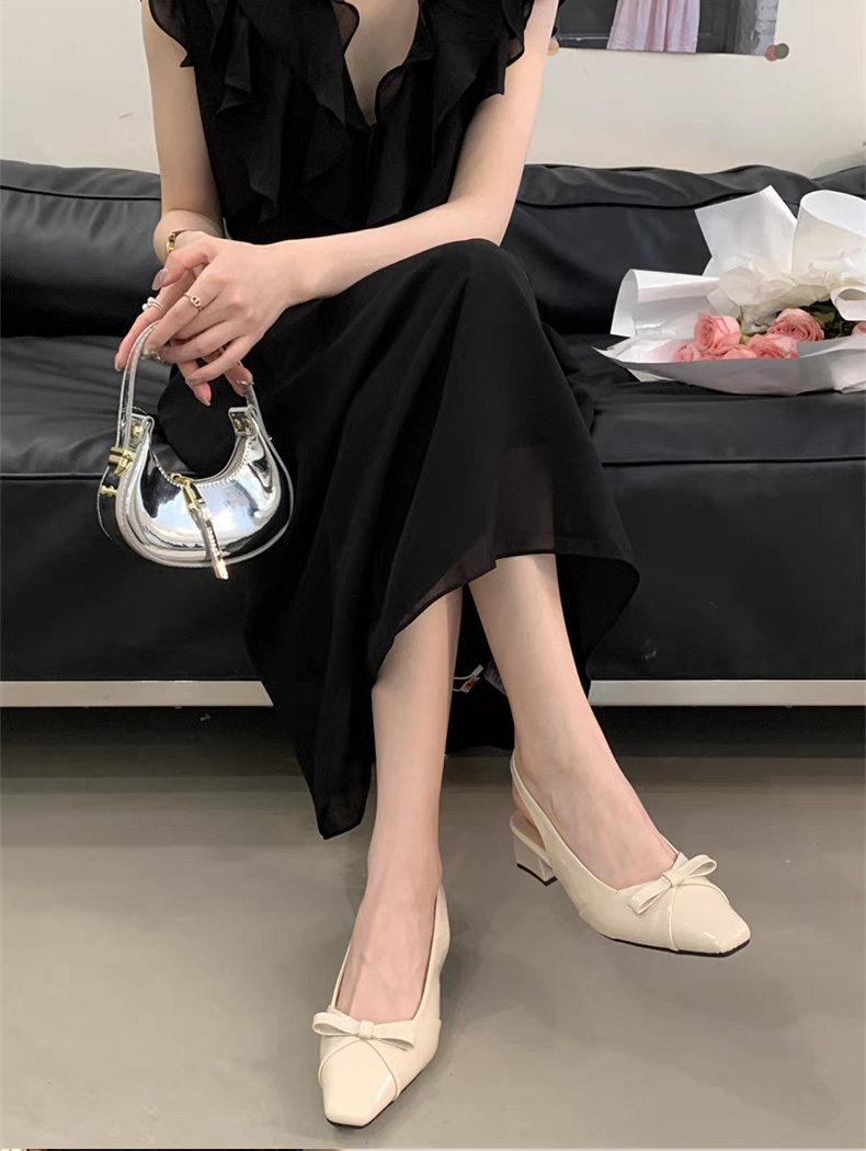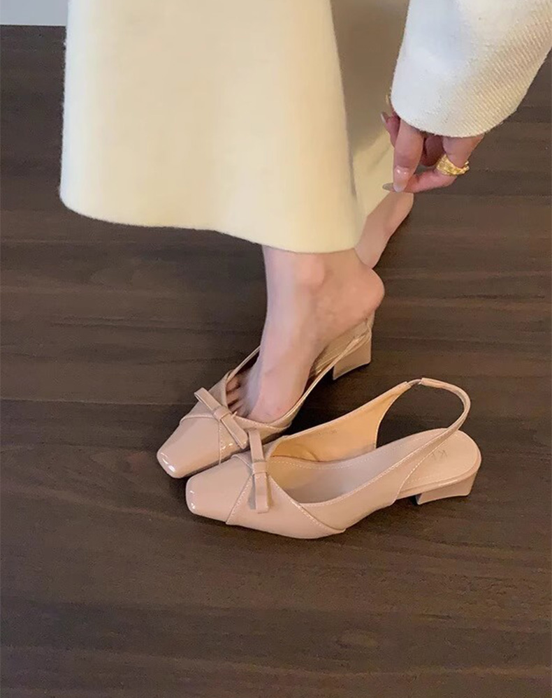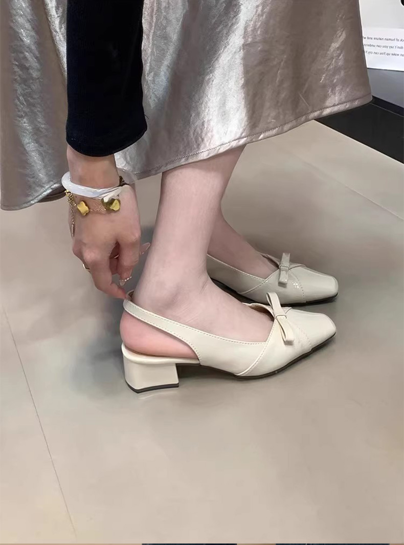 绝美温柔风蝴蝶结包头后绊带凉鞋女法式方头气质粗高跟单鞋