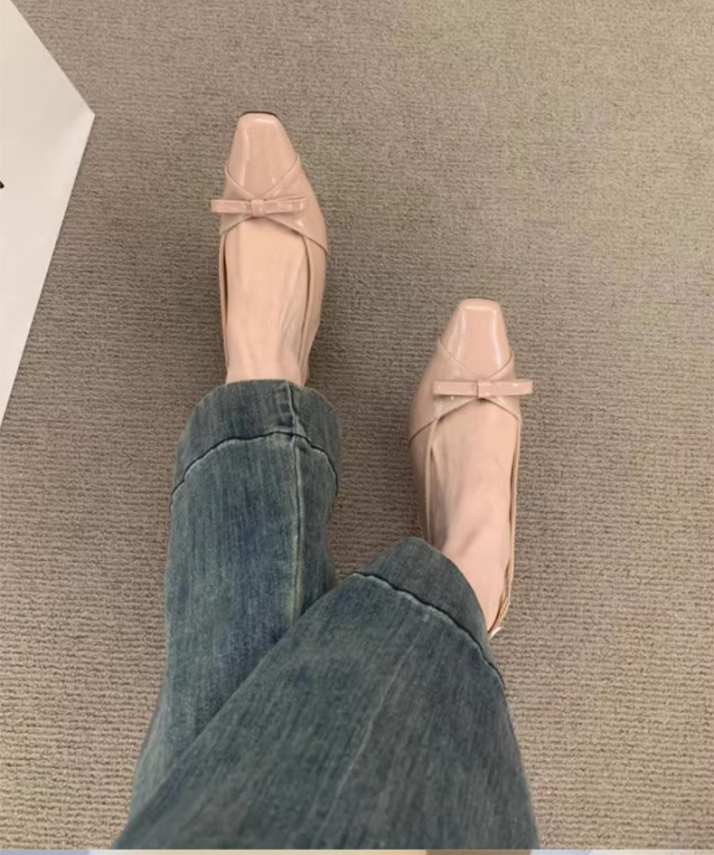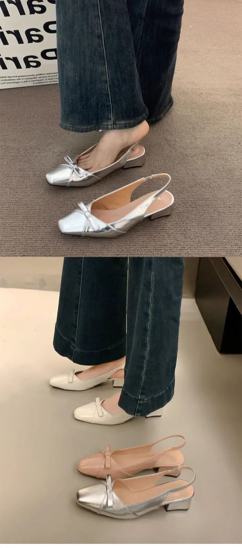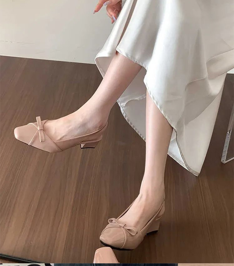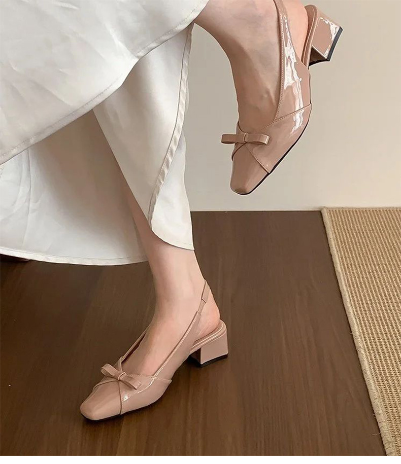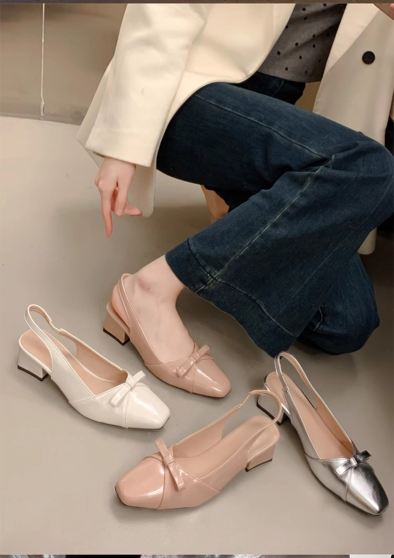 绝美温柔风蝴蝶结包头后绊带凉鞋女法式方头气质粗高跟单鞋