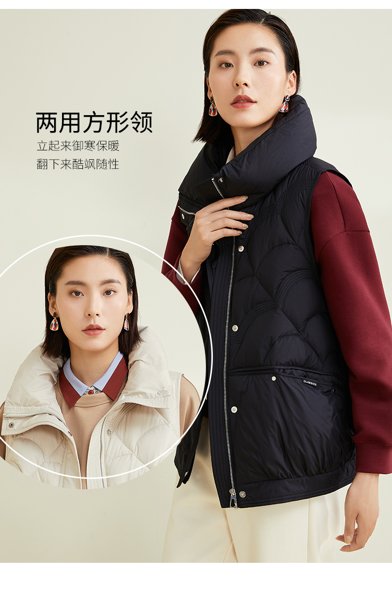 玳莎立领无袖马甲羽绒服女冬季简约鸭绒外穿马夹背心外套 CD41001