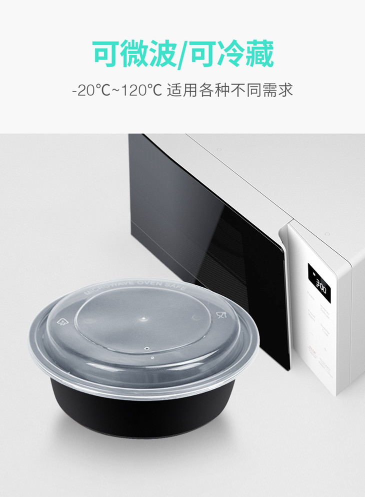 喇叭花750/1000ml黑色一次性带盖餐盒打包盒意大利面碗圆形150套