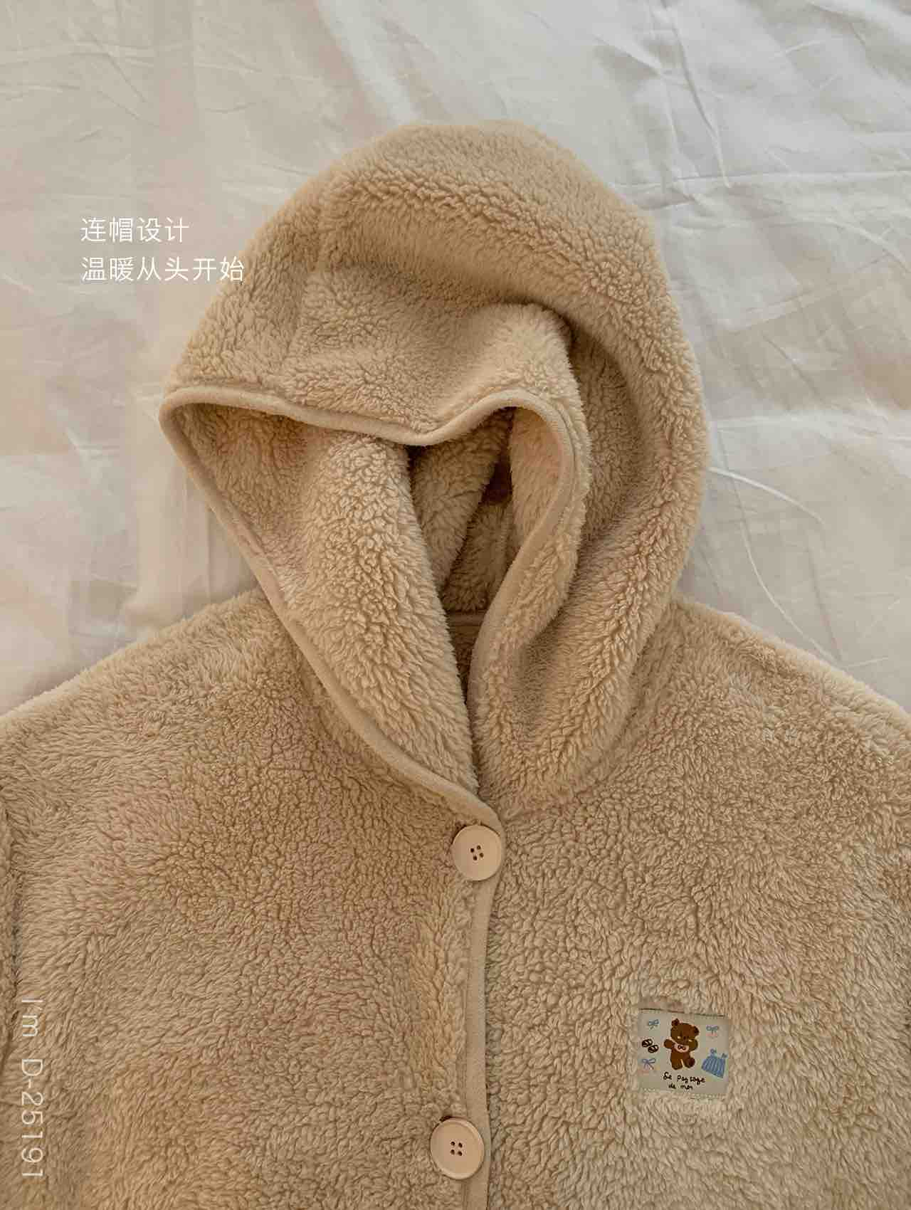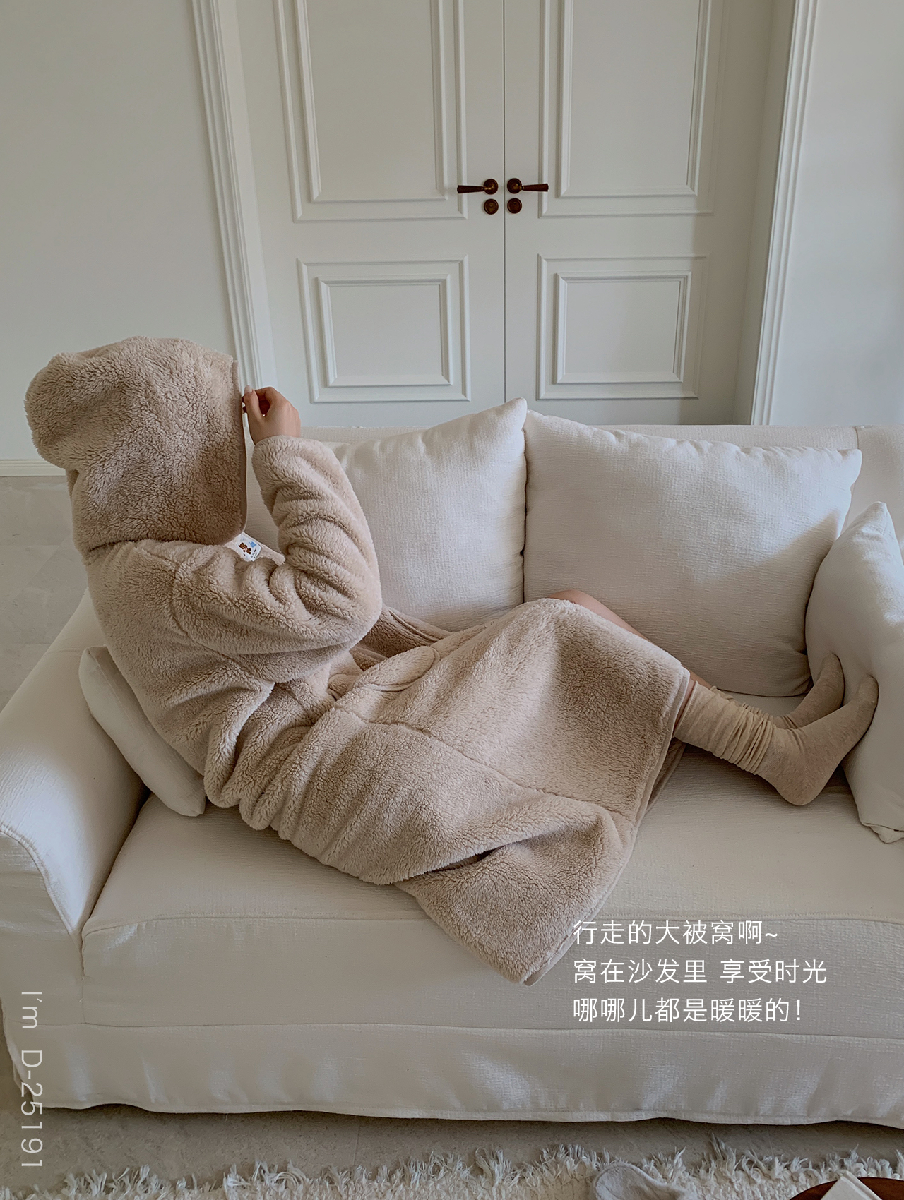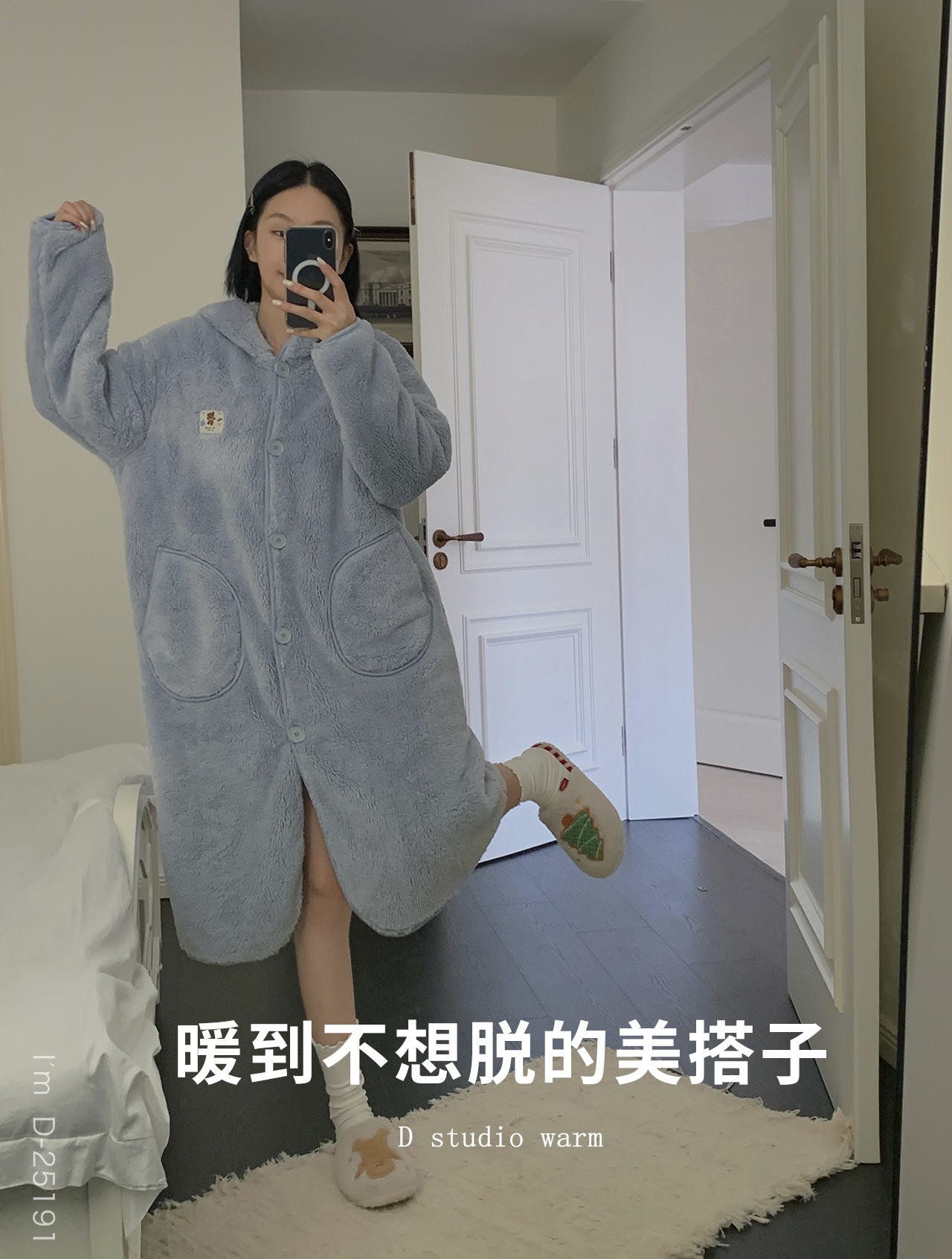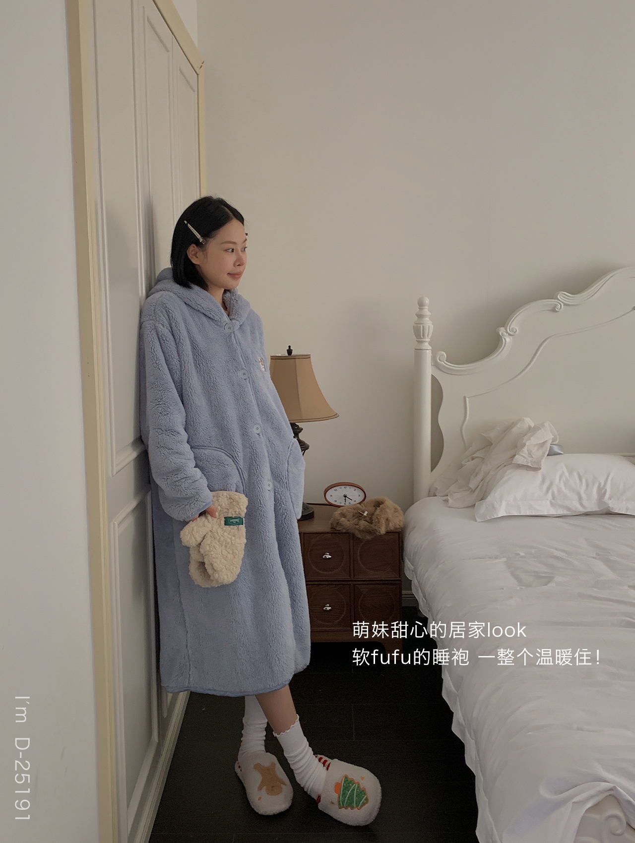 云朵暖暖袍~冬季温暖北极绒连帽睡袍 双面暖绒懒人宅家睡袍从头暖到脚 满满安全感