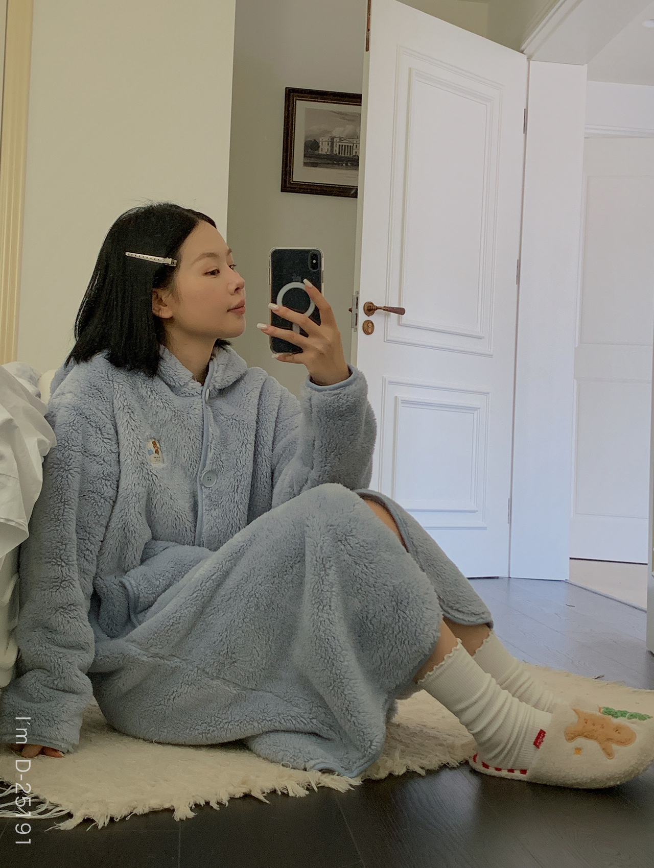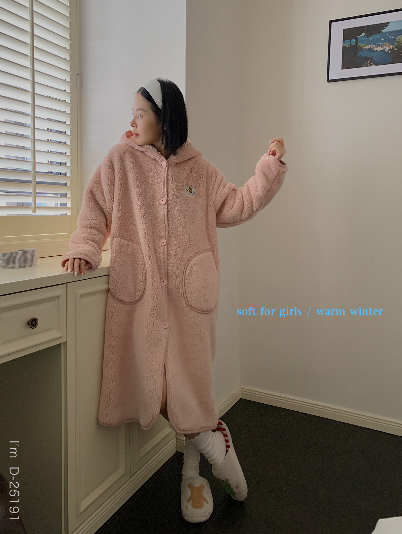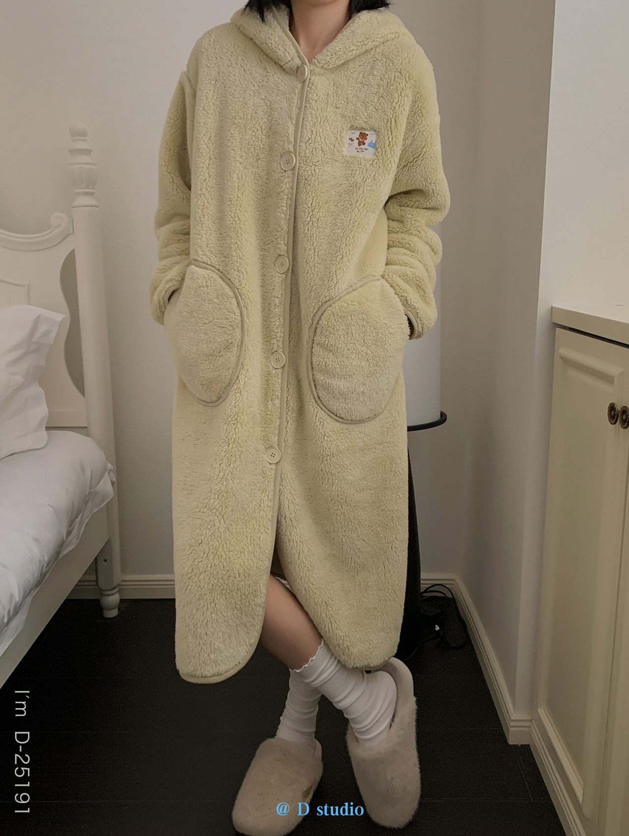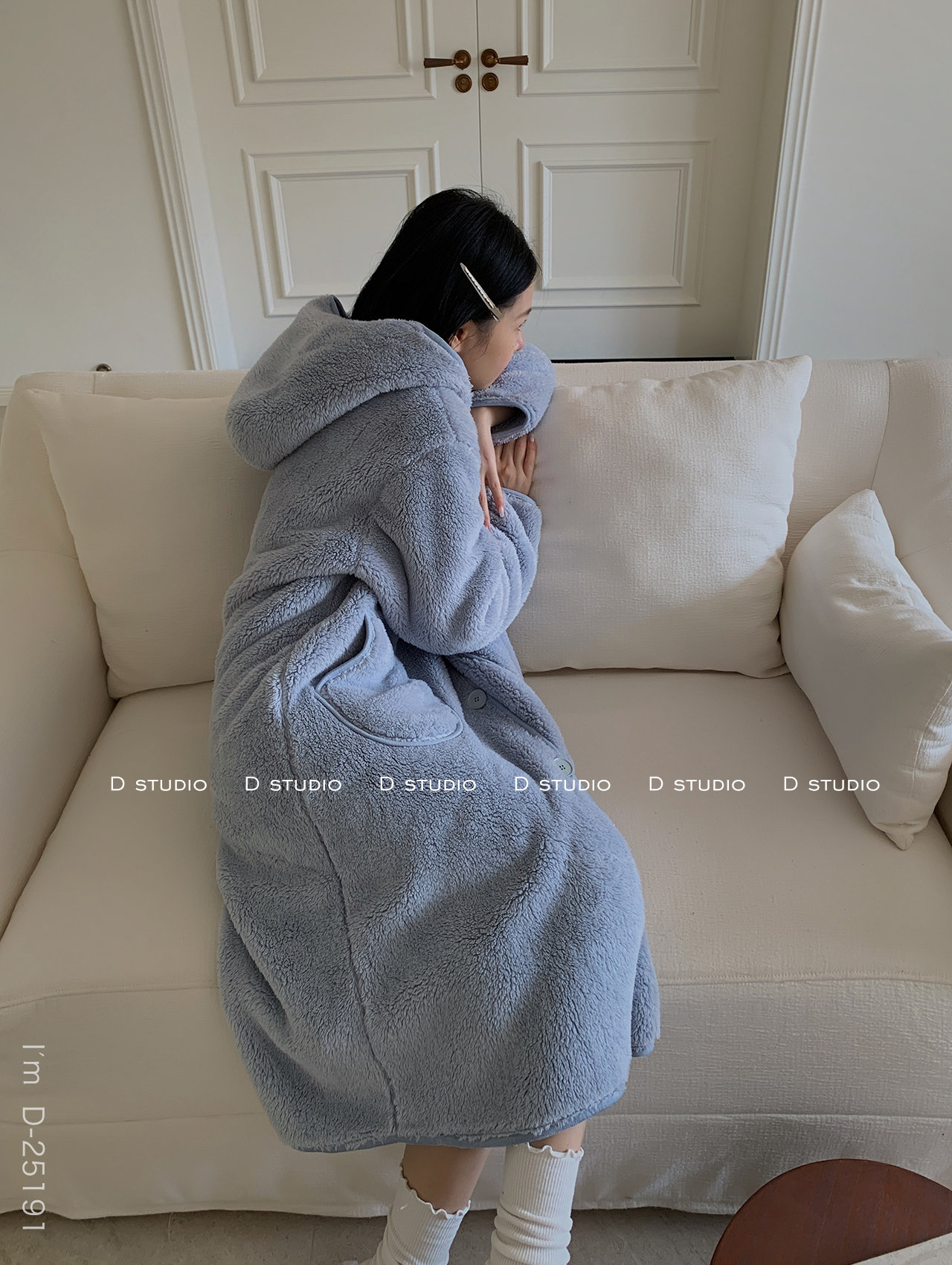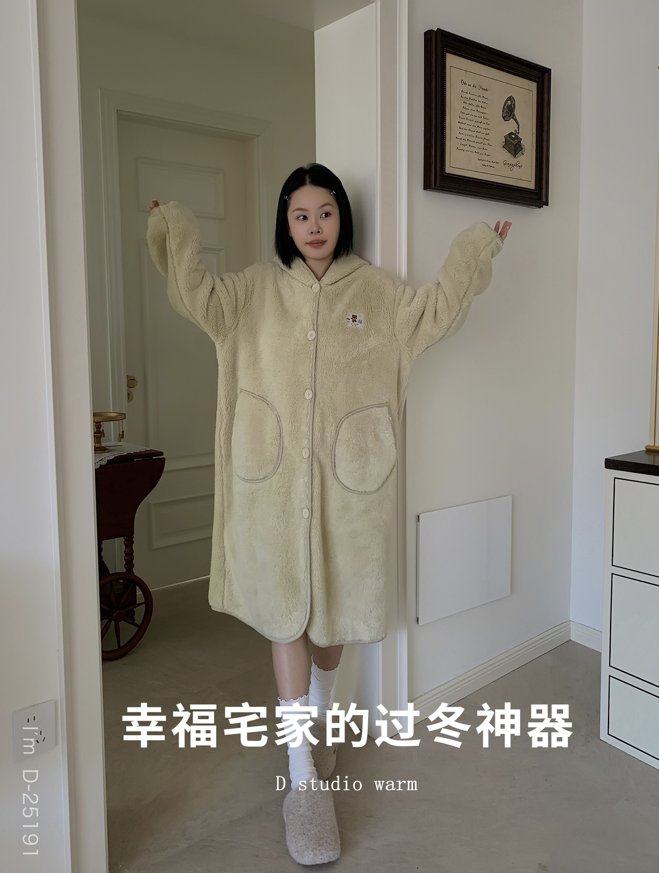 云朵暖暖袍~冬季温暖北极绒连帽睡袍 双面暖绒懒人宅家睡袍从头暖到脚 满满安全感