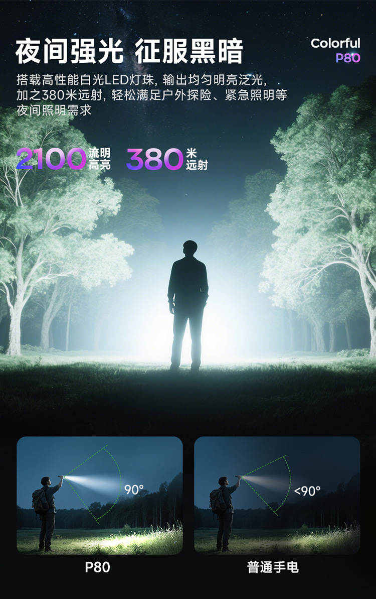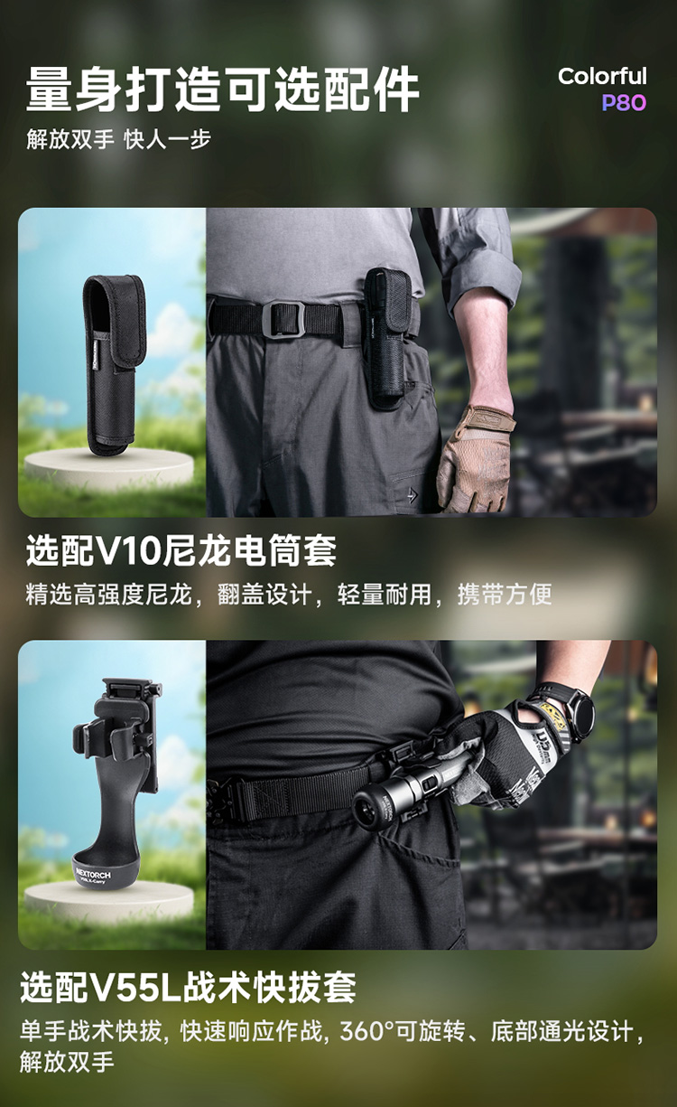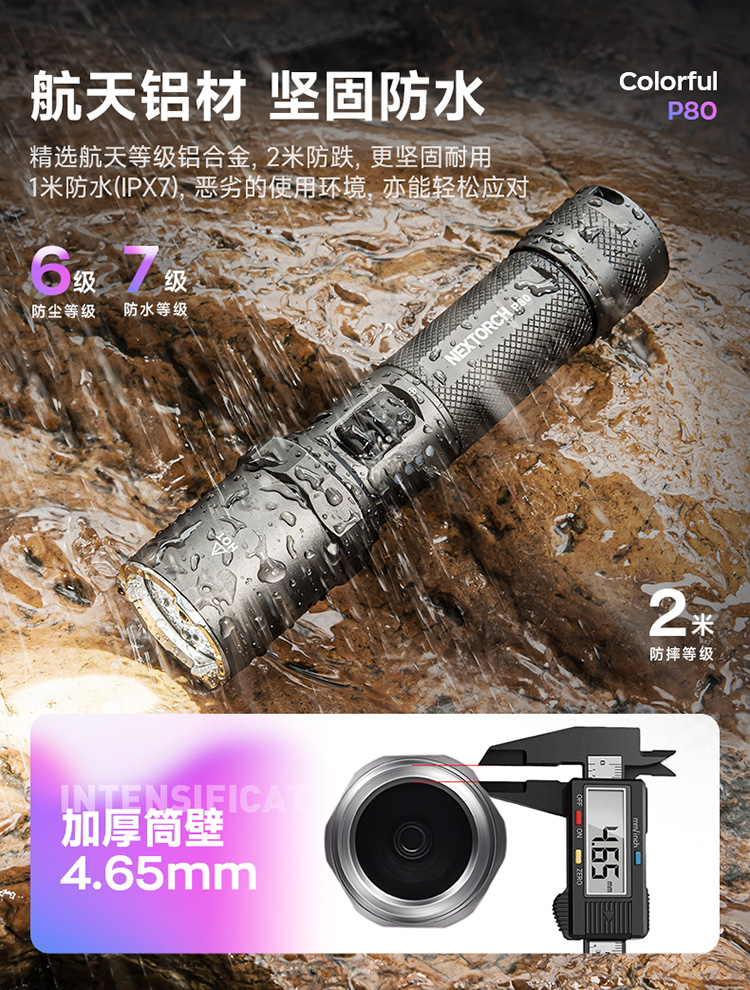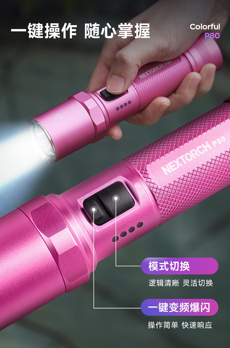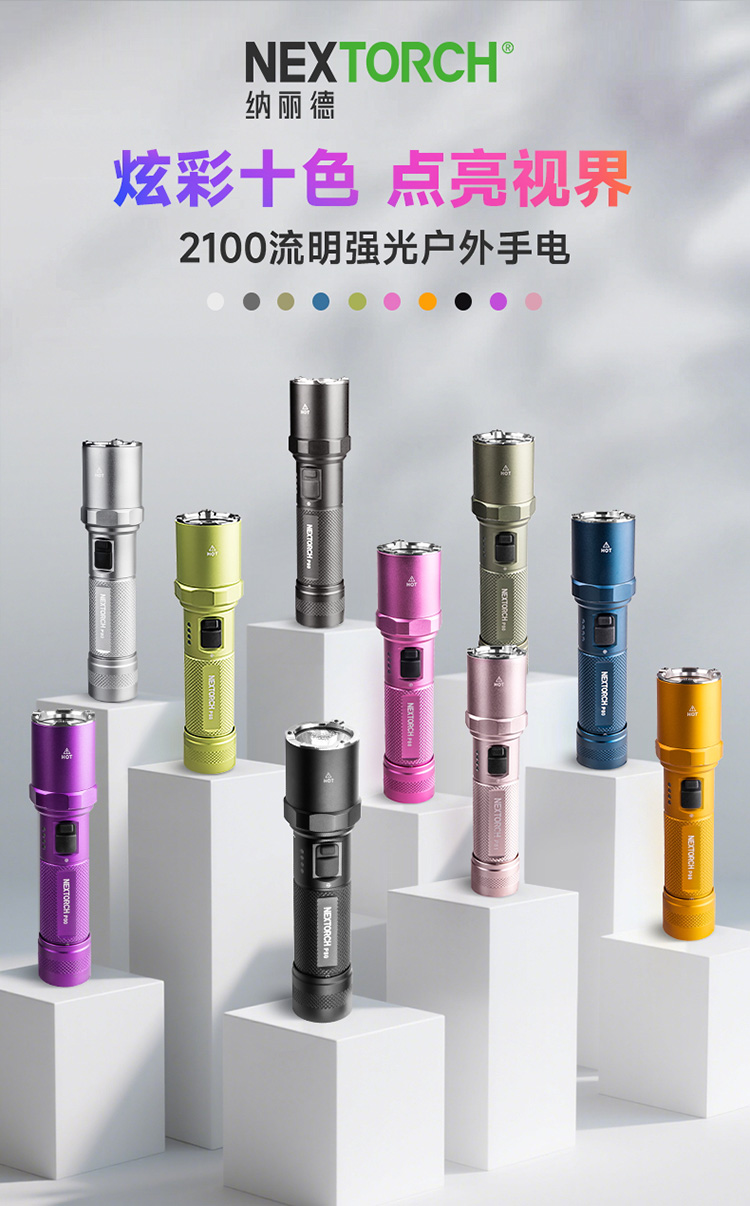 纳丽德【新品】P80十色焕彩,防身强光手电2100流明