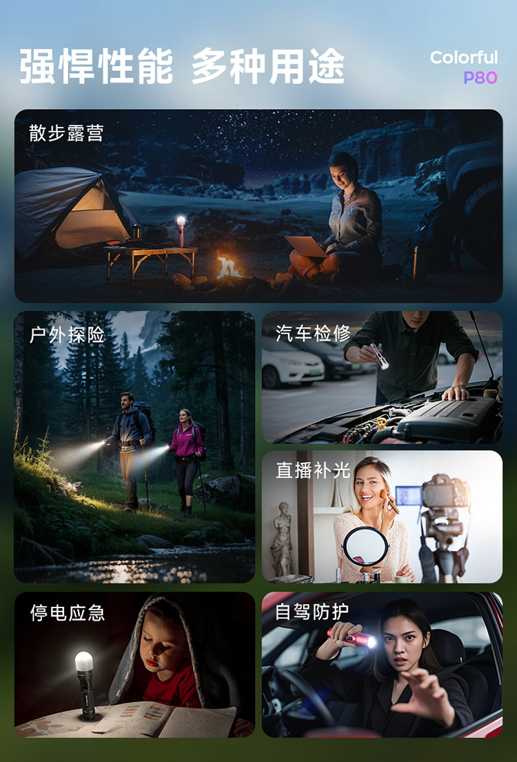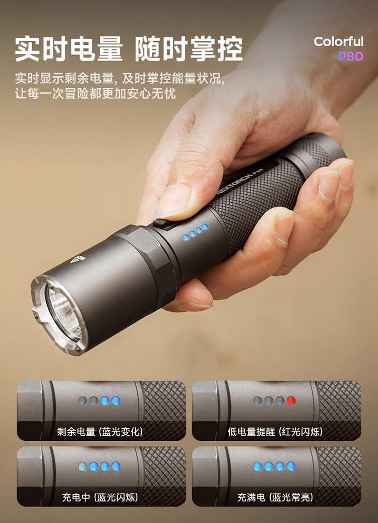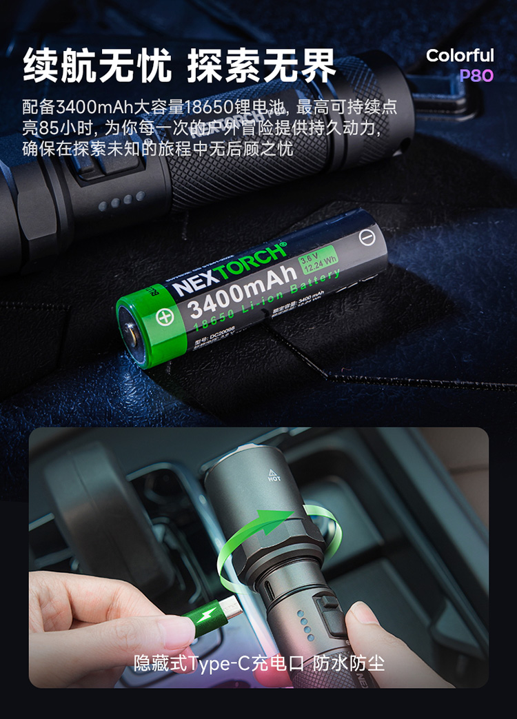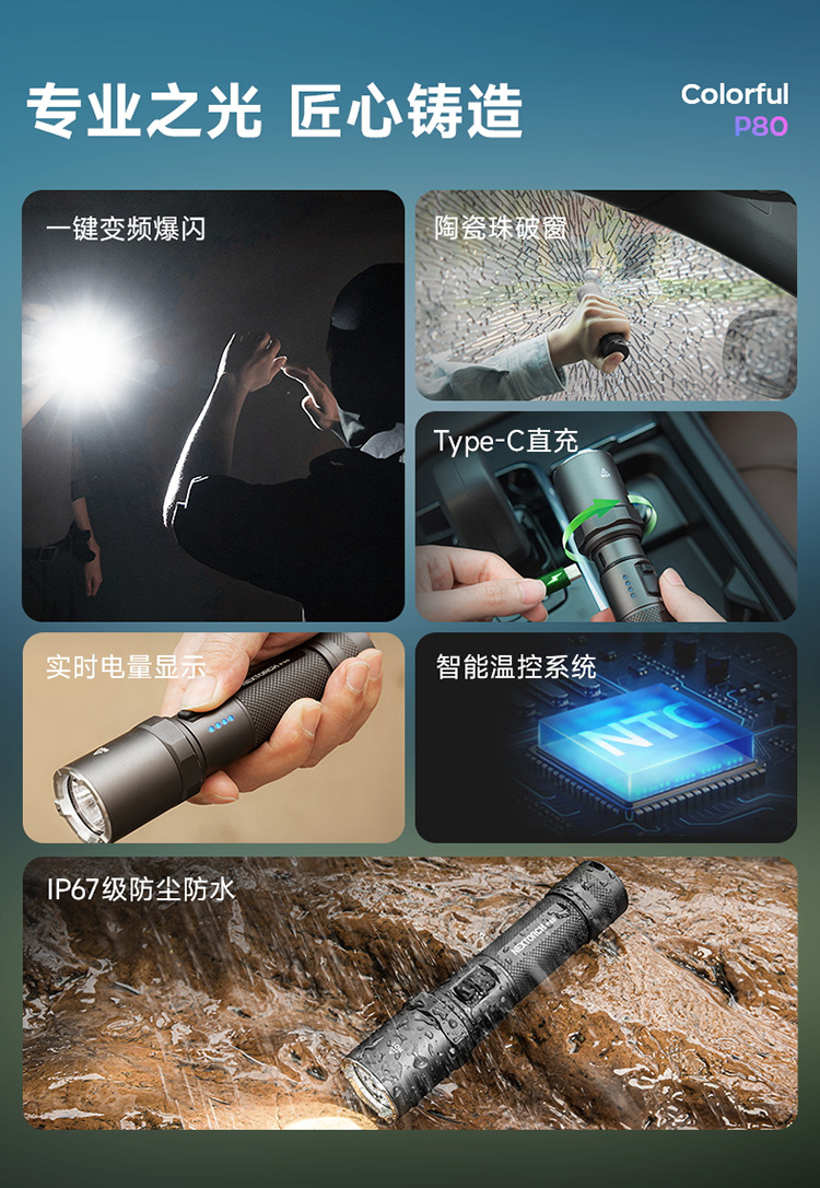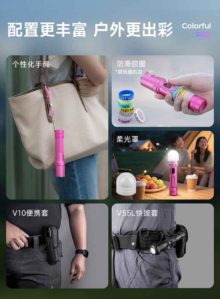 纳丽德【新品】P80十色焕彩,防身强光手电2100流明