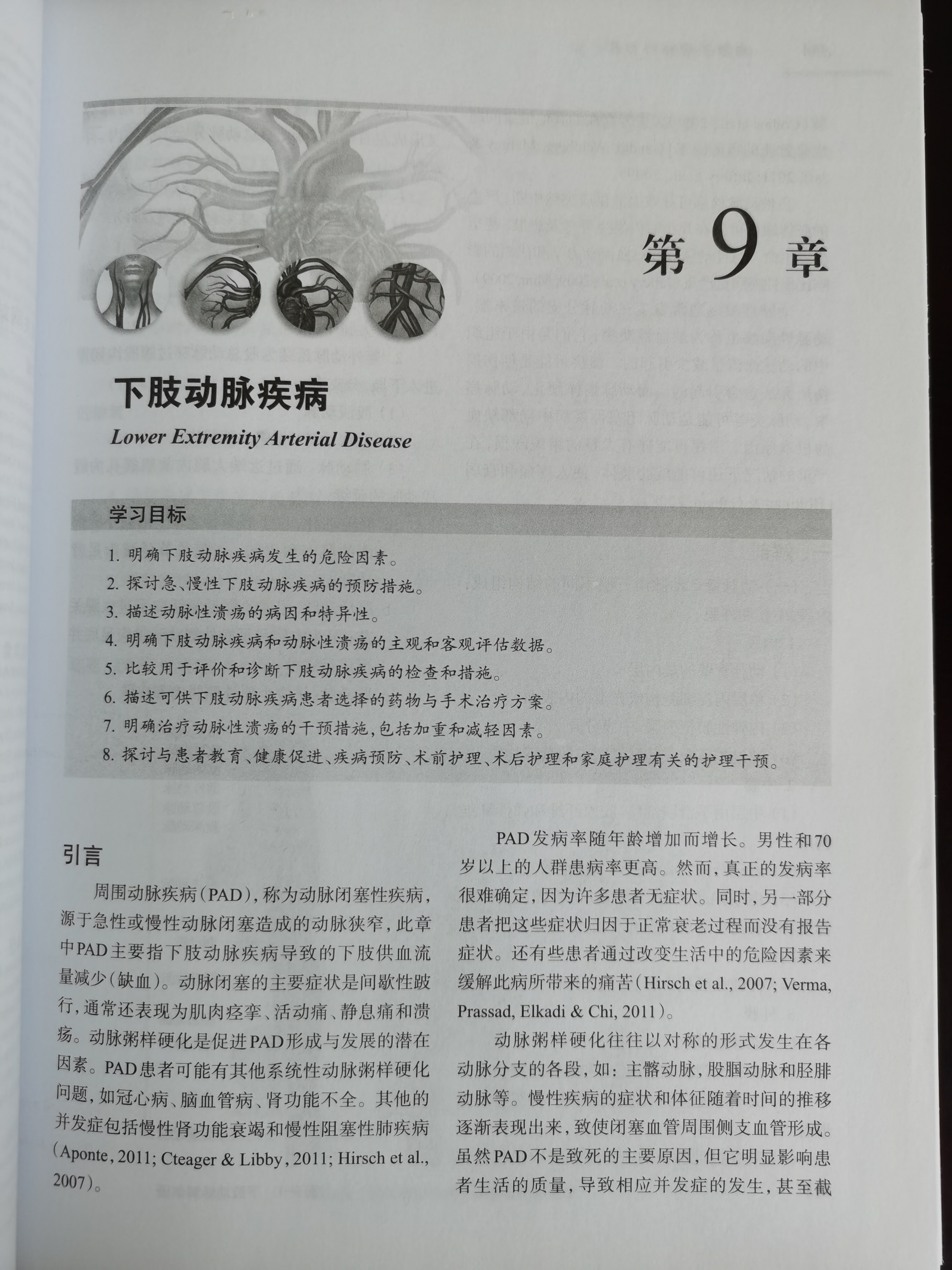 在美国,血管护理有着悠久的发展历史,血管护理协会(society of vascular nursing)为了规范地培训血管专业护士,组织血管护理专家编写了《血管护理核心课程》(Core curriculum for vascular nurse)这本书(英文版共550页),目前第二版已经出版。该书共25个章节(具体目录见第二页),不仅包括了血管解剖、生理学知识、常见的各种血管疾病、糖尿病足的护理,还包括了血管护理科研和循证护理实践、血管护理教育等相关知识,每章节后都有相应章节的复习题、答案和解析,为血管专科护士提供了一本非常权威、非常专业、非常详尽的参考书。目前已成为全美血管专科护士人手必备的学习参考书和专业书。