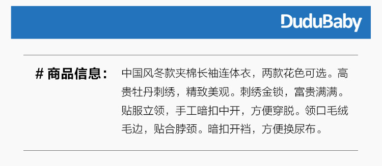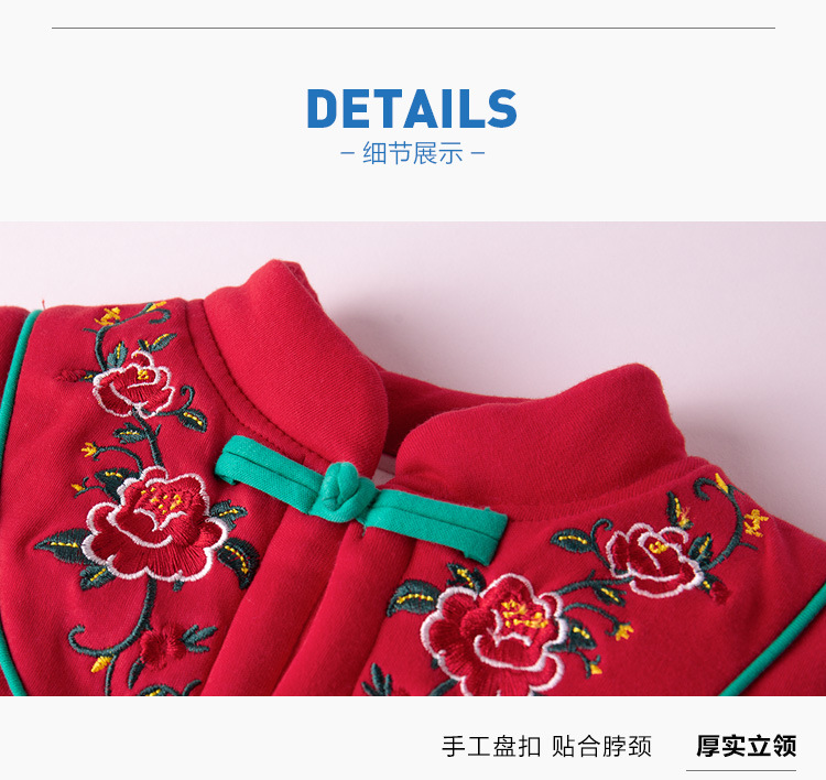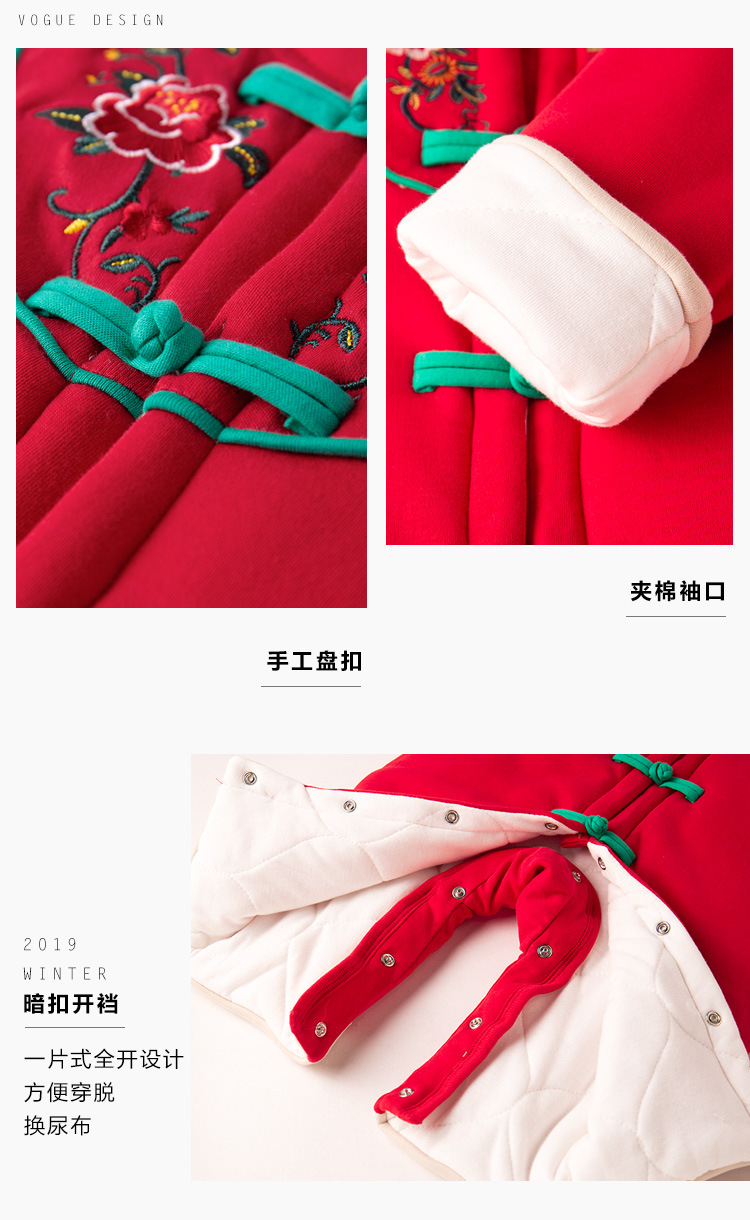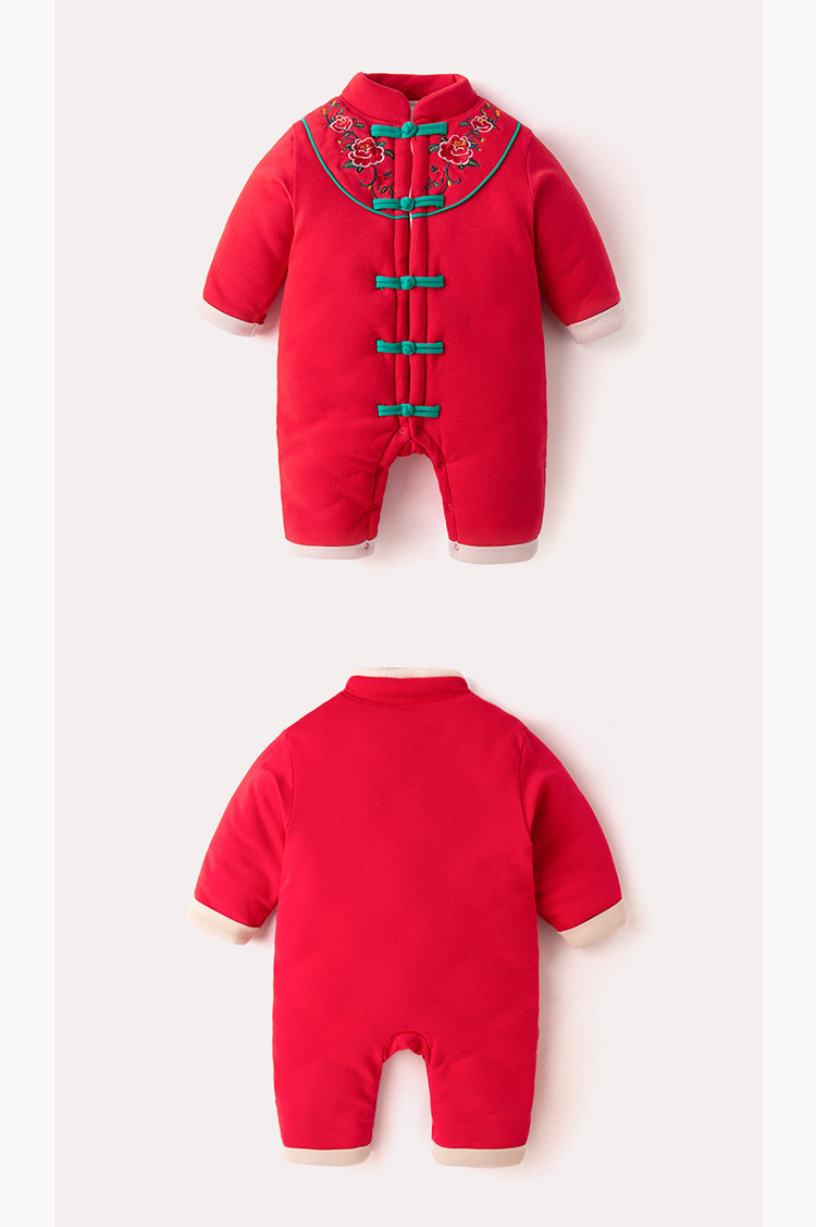 【中国风 精致刺绣 富贵满满】嘟嘟家婴儿连体衣拜年服秋冬装周岁宝宝衣服女加厚唐装冬季过年服
