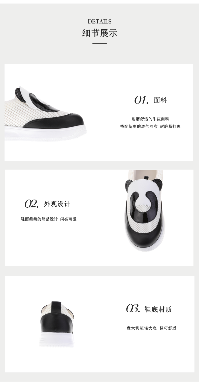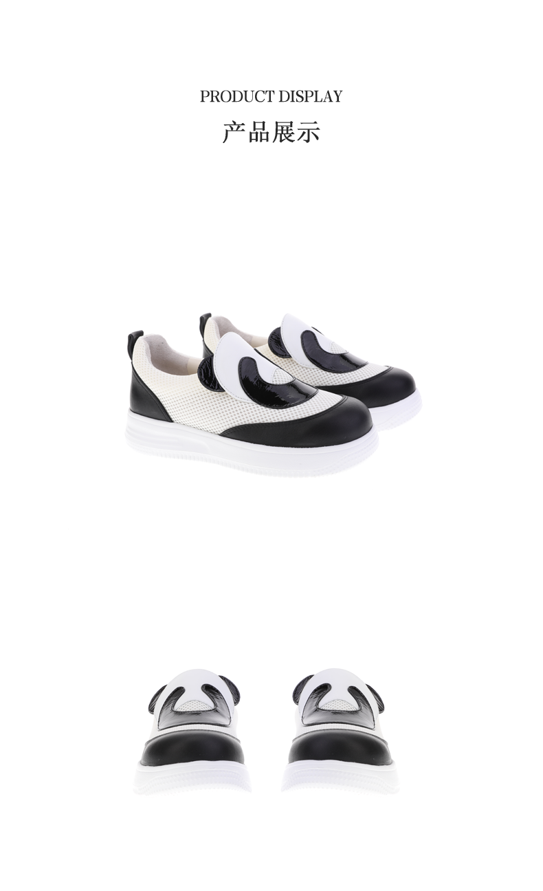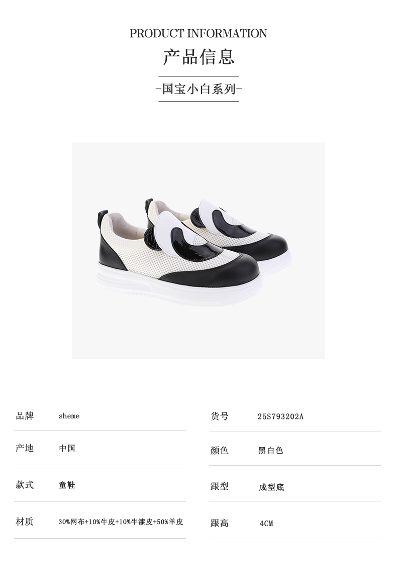 sheme国宝小白系列耐磨牛皮搭配透气网布可爱萌萌熊猫青少年板鞋可定制