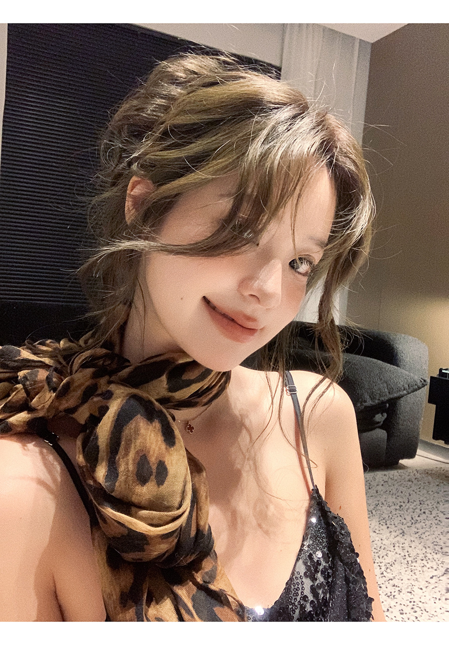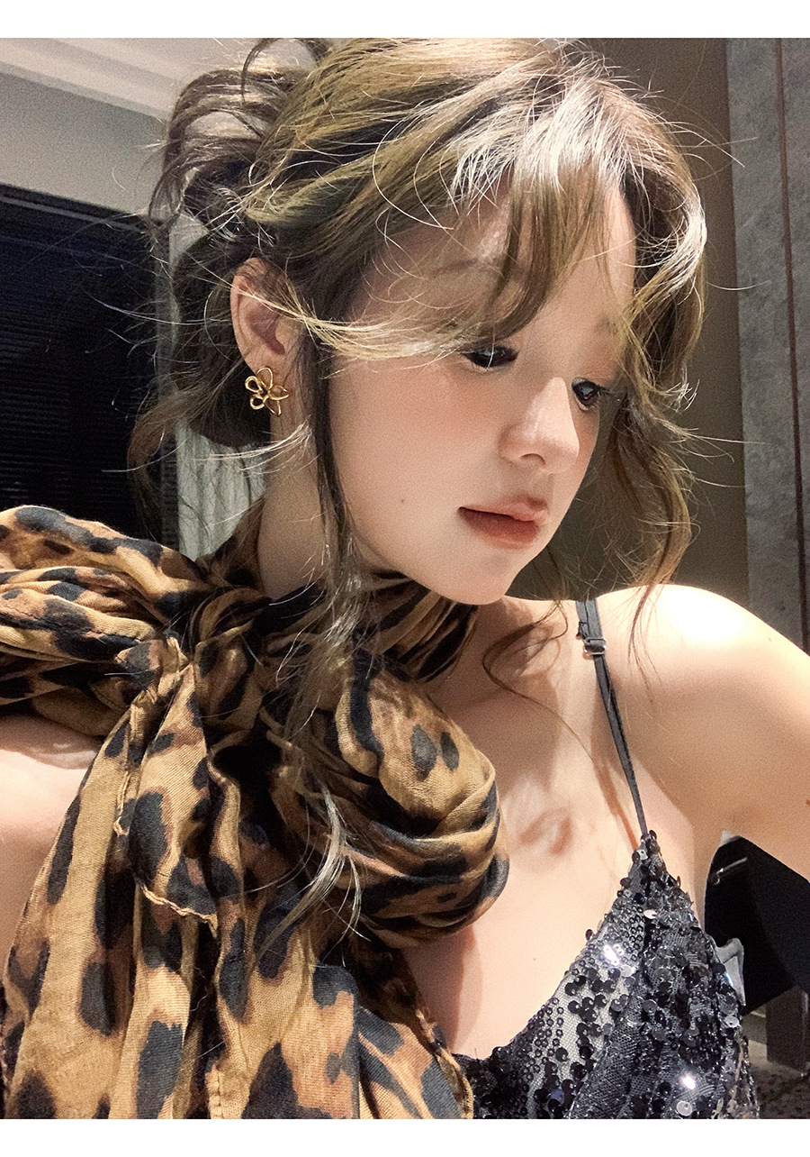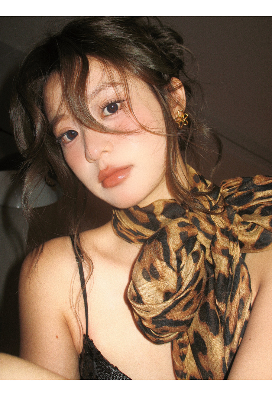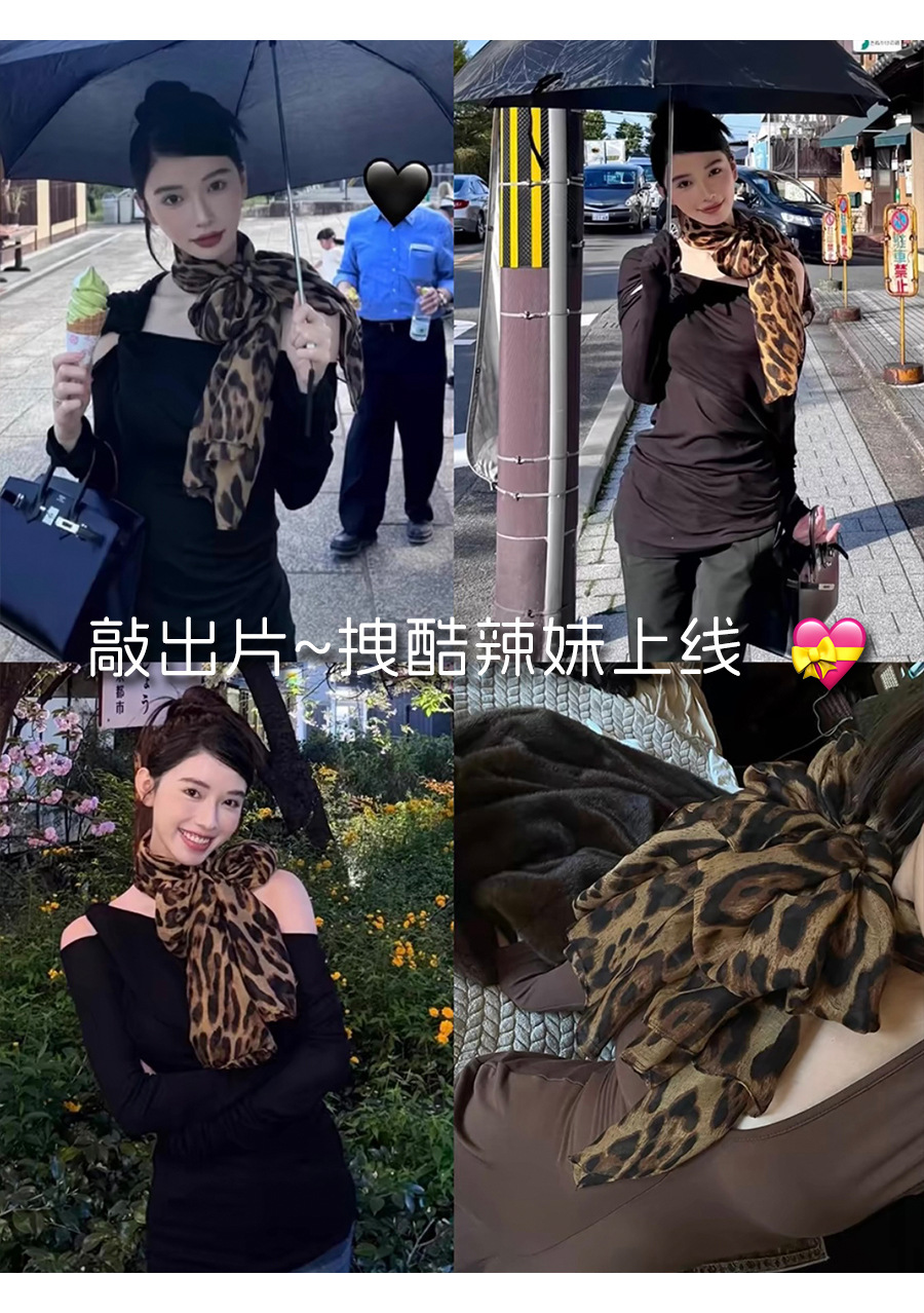 新款辣妹时髦豹纹丝巾披肩围巾氛围感复古女高级感秋冬季纱巾围脖