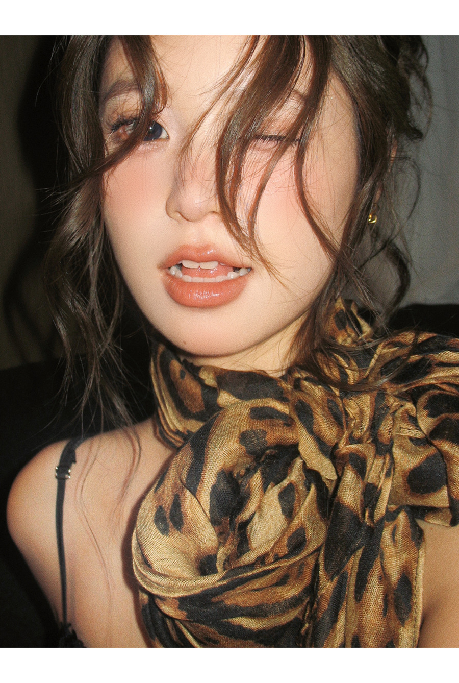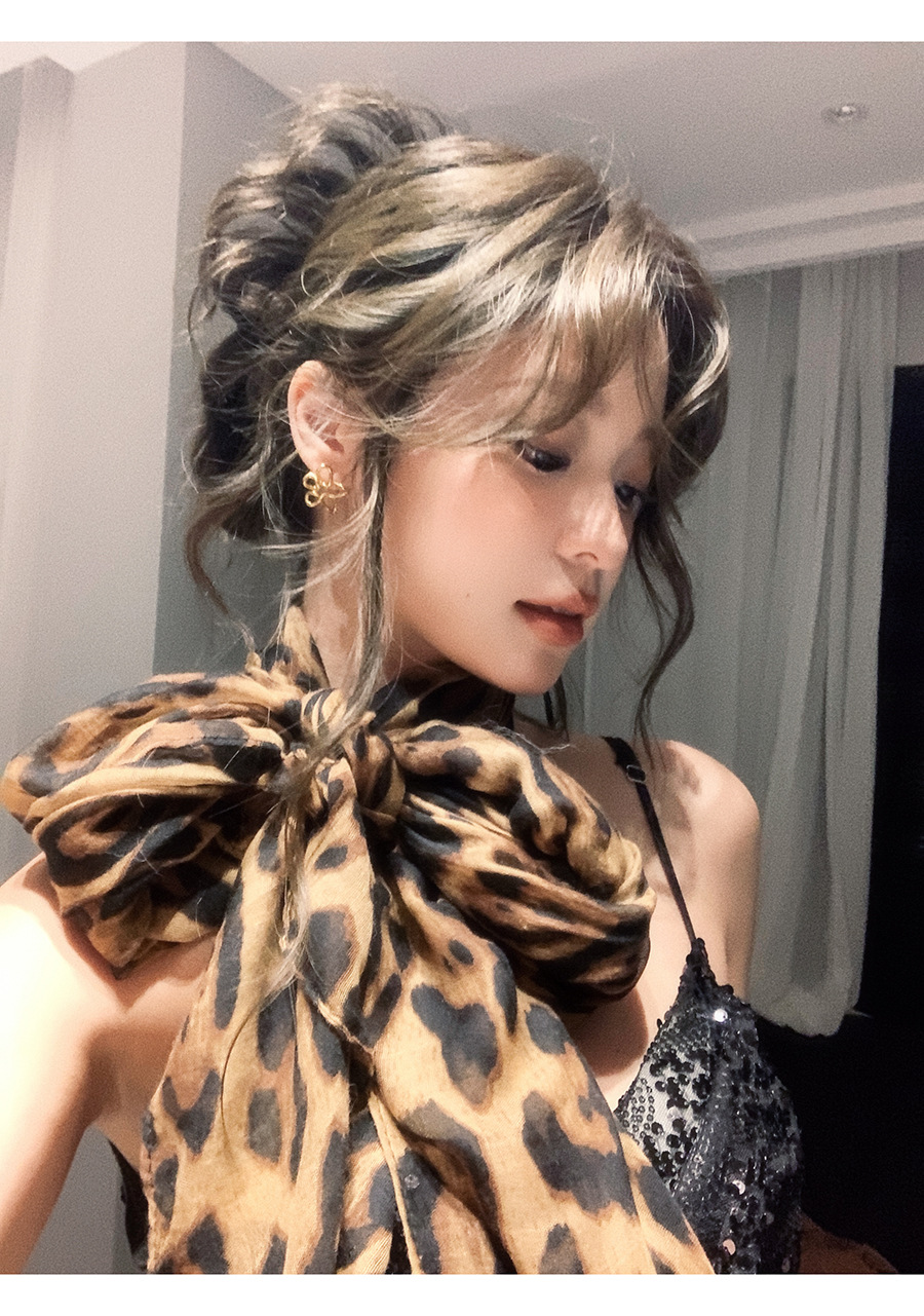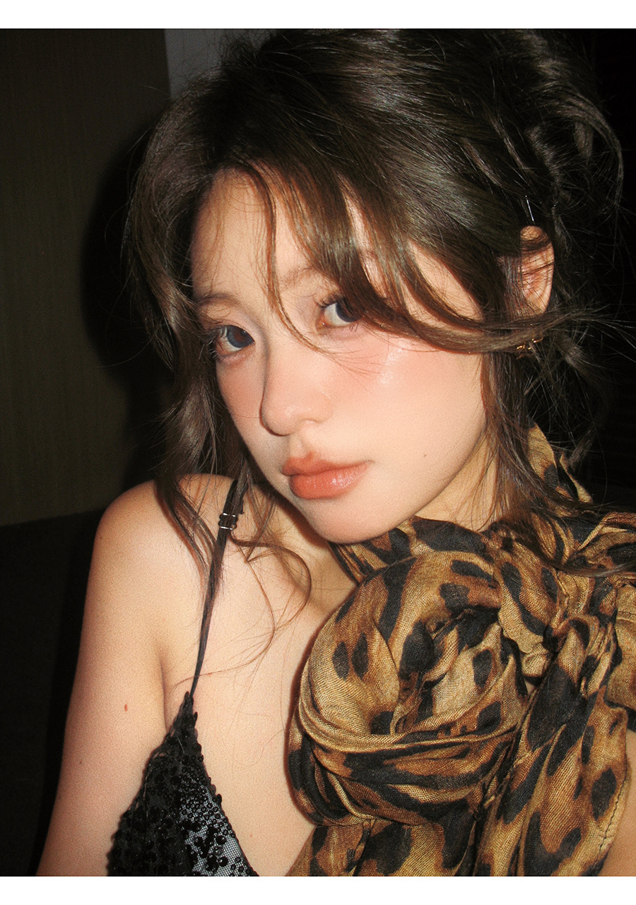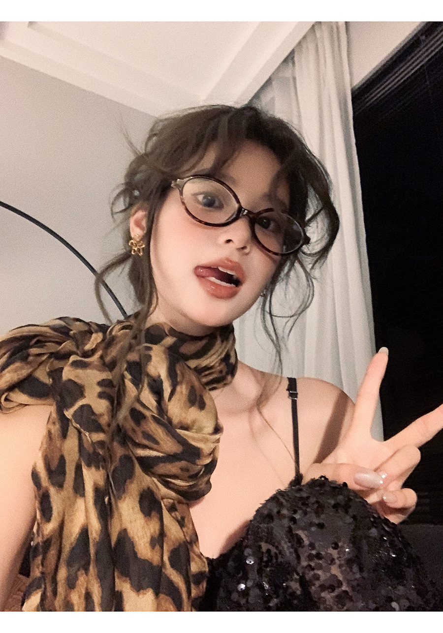 新款辣妹时髦豹纹丝巾披肩围巾氛围感复古女高级感秋冬季纱巾围脖