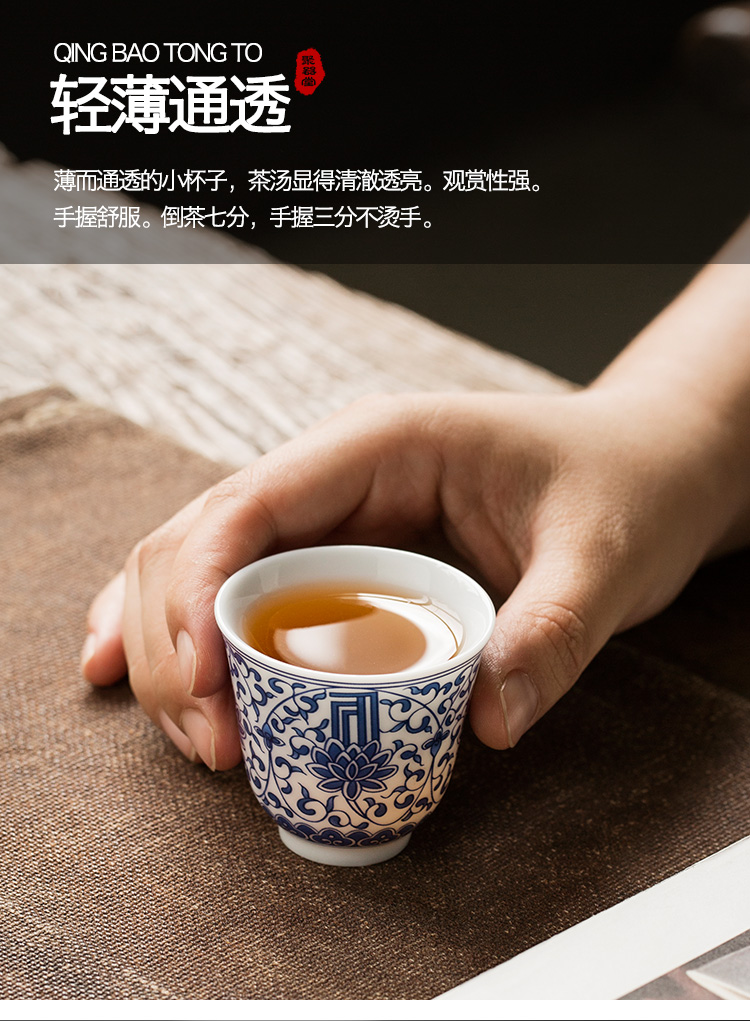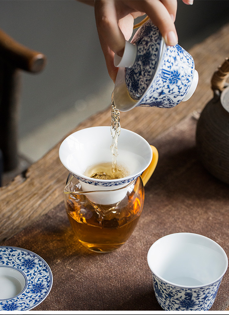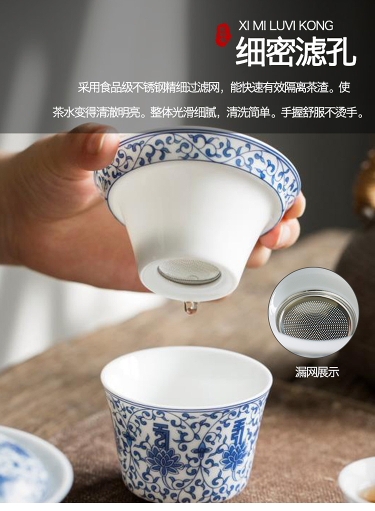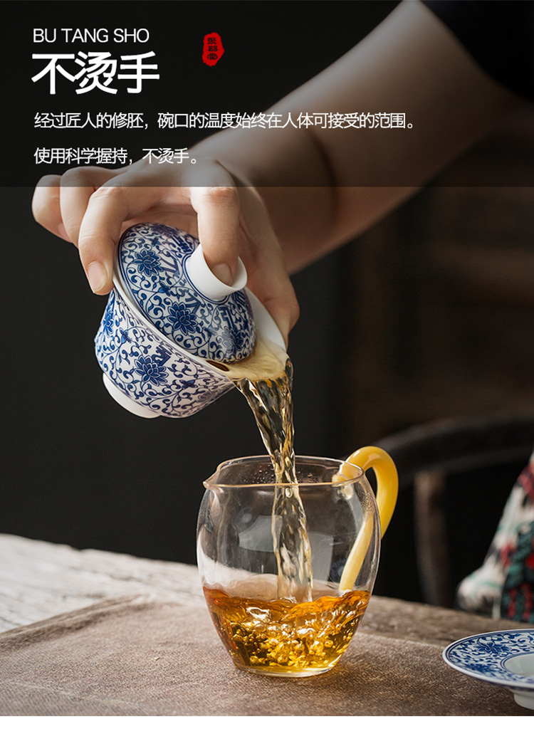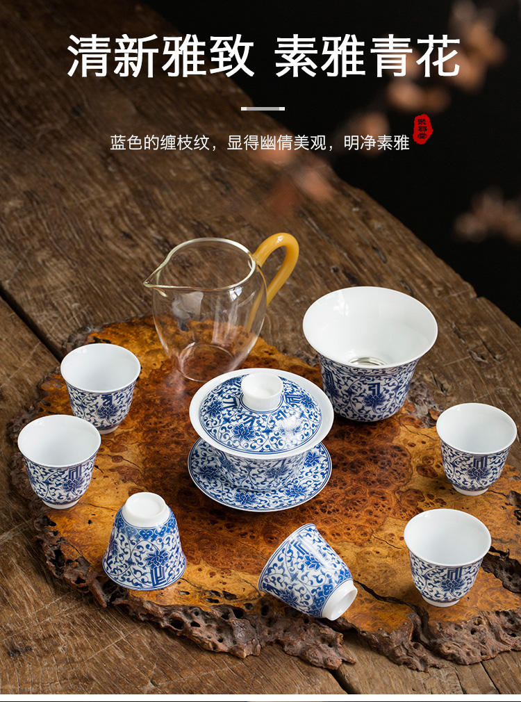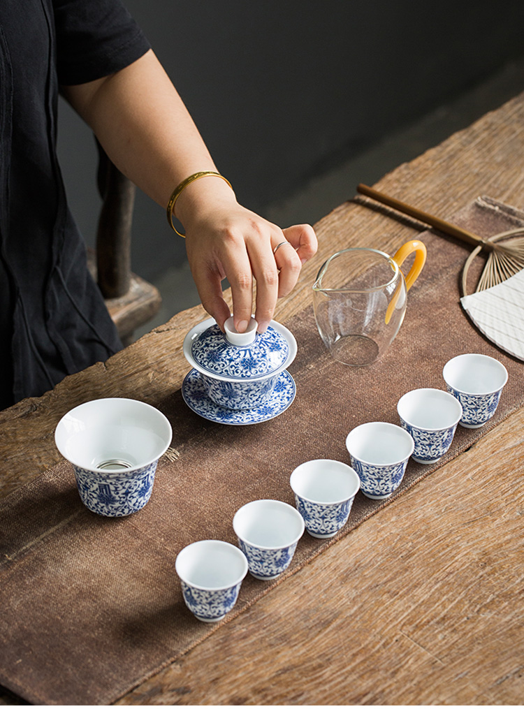 永利汇青花缠枝莲盖碗三才碗手抓碗品茗杯茶漏功夫茶具套组礼盒装复古
