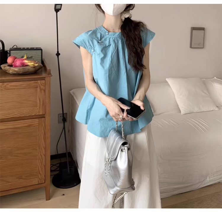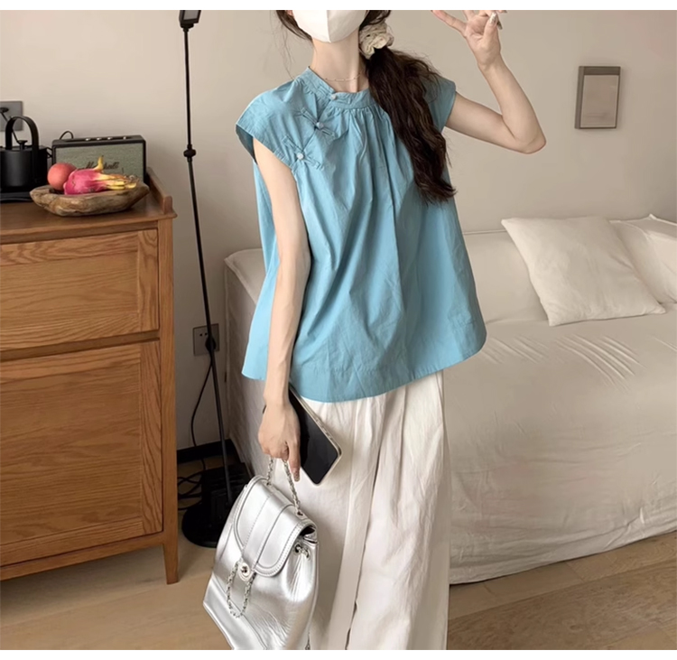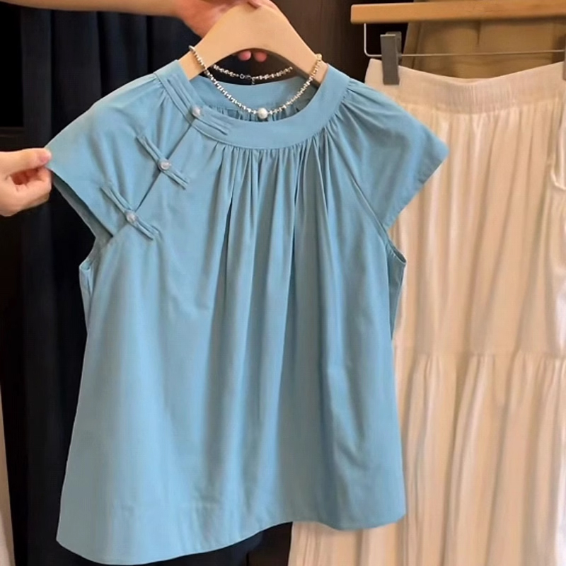 裁缝学苑AQ356新中式国风盘扣短袖衬衫纸样女装飞飞袖褶皱上衣样板