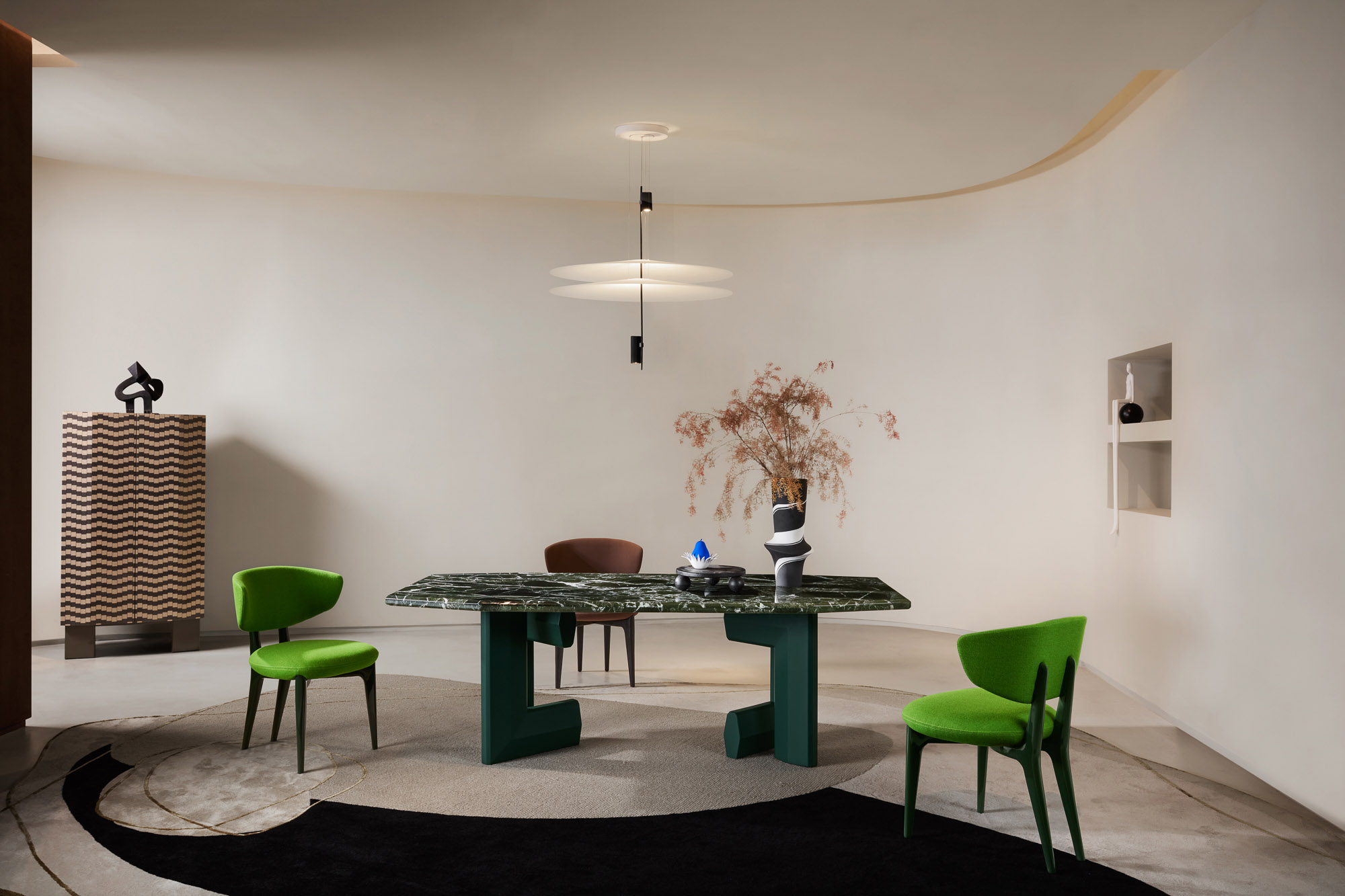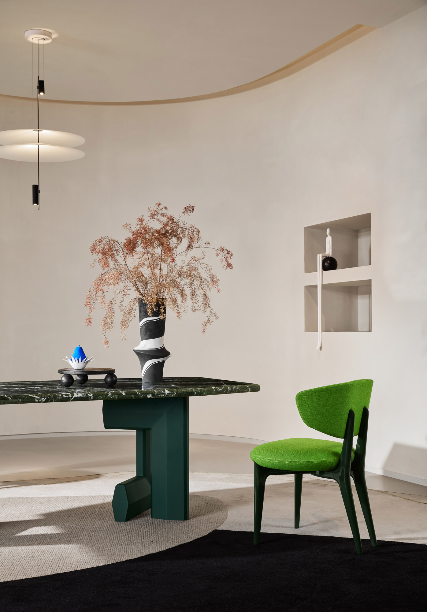 材质:绒面超纤+曜石黑油漆拉丝/羊毛+墨玉绿抛光漆