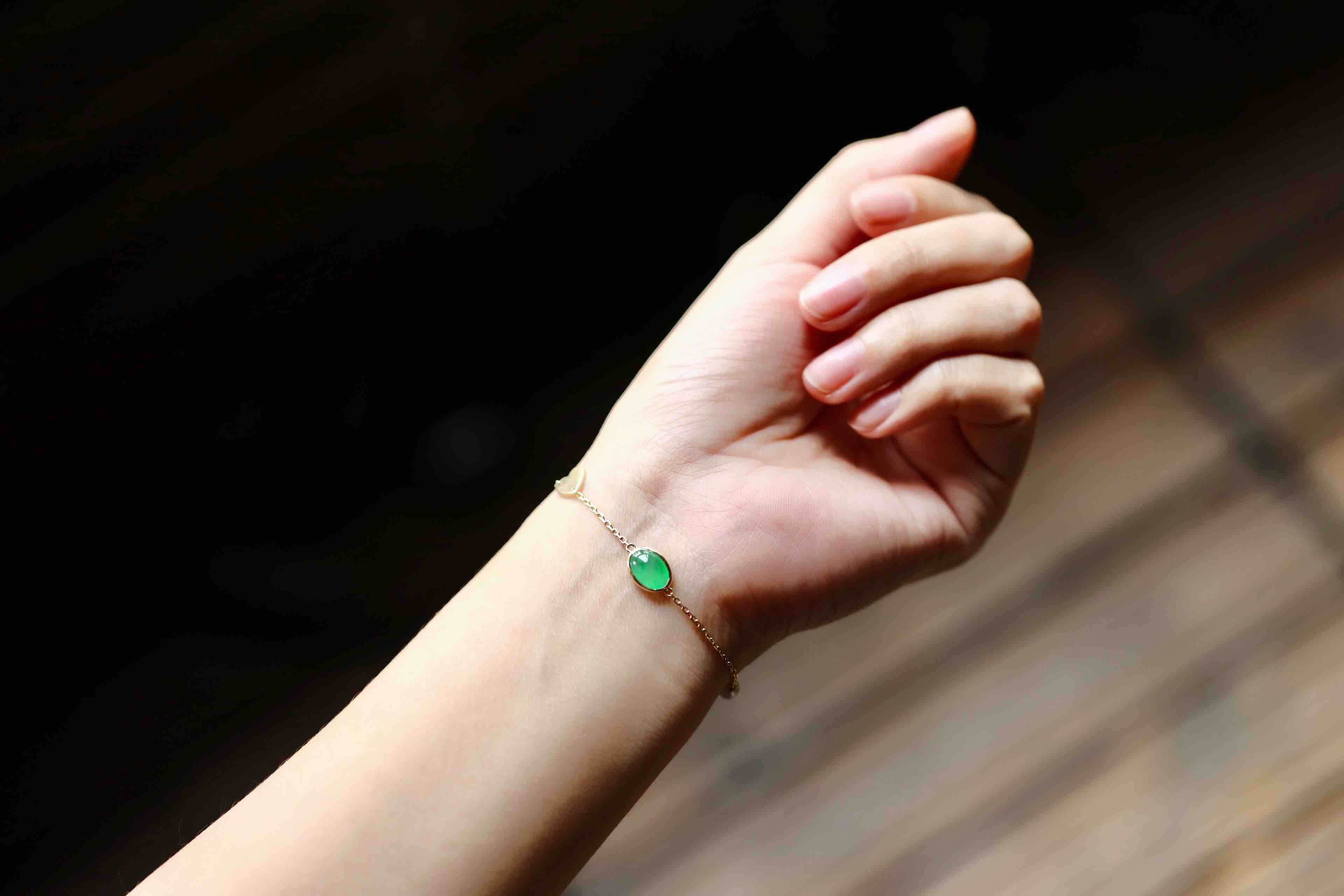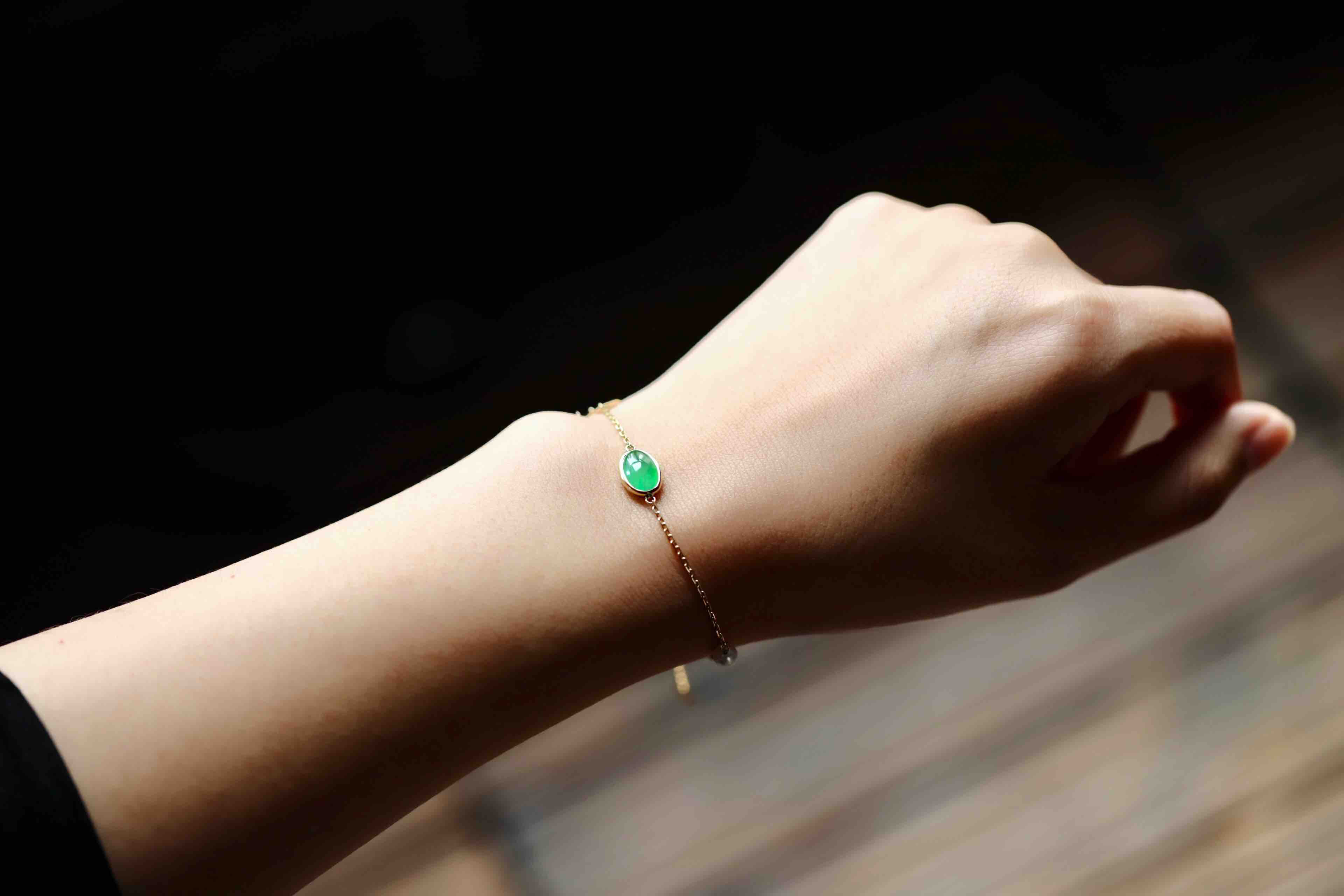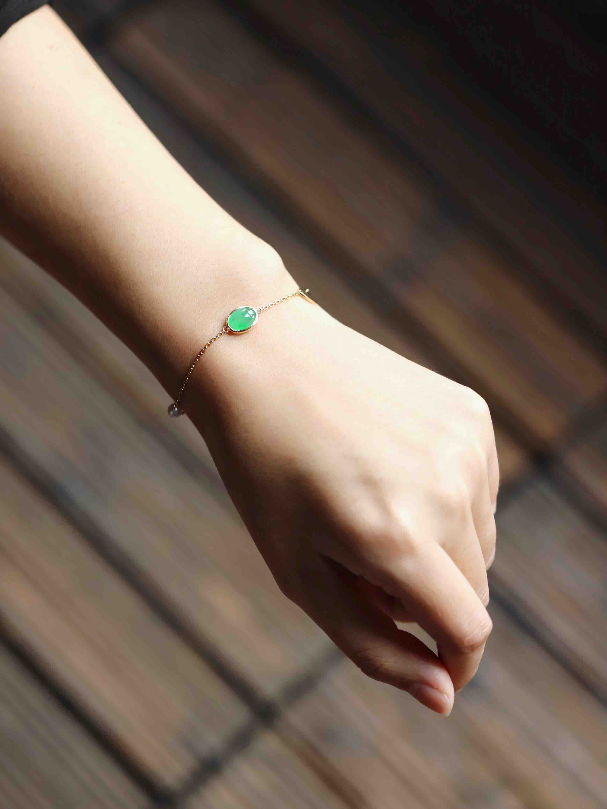高冰种阳绿翡翠蛋面手链18k黄金镶嵌
