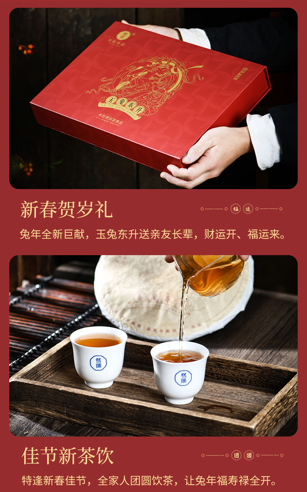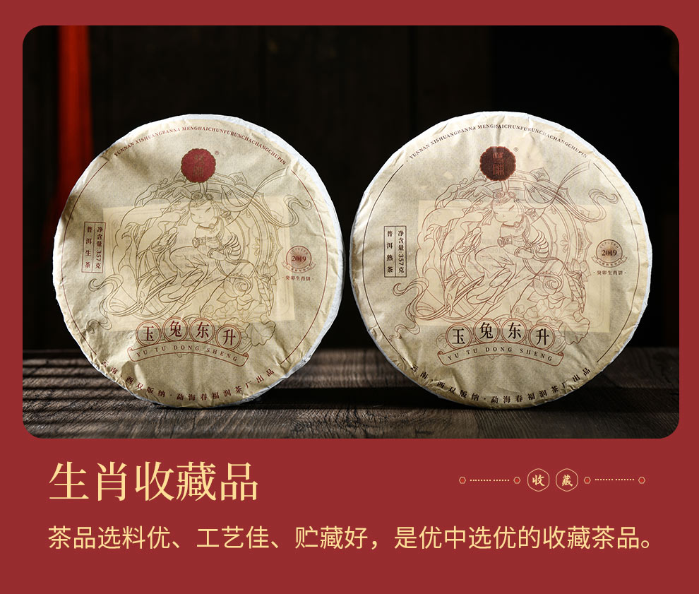 双陈2023年兔饼生肖纪念茶生茶熟茶357g