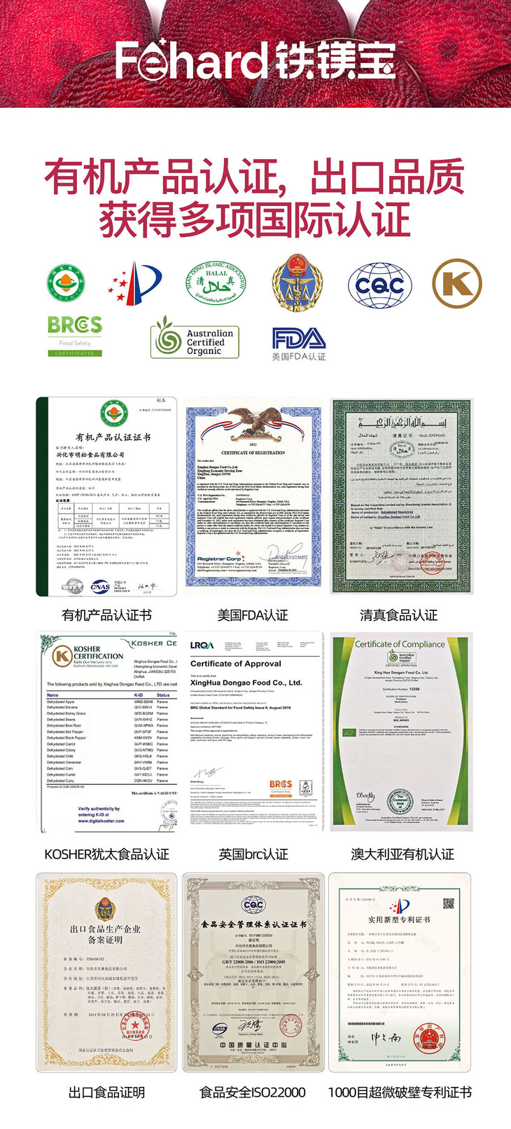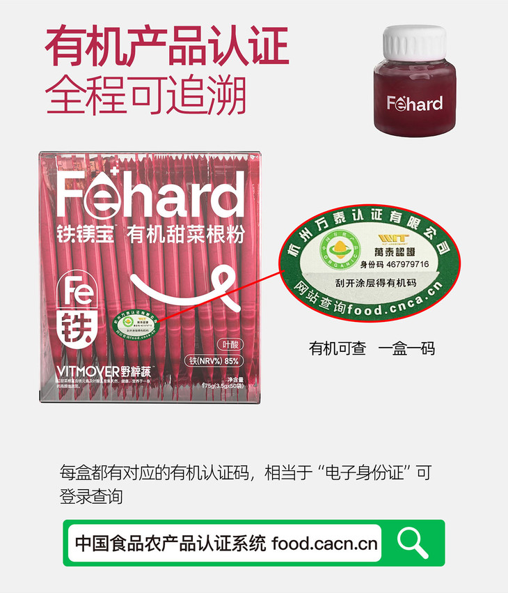 有机甜菜根粉的生产商作为知名企业,专注甜菜根加工,拥有丰富经验和技术,专业代工国际品牌,并严格按照食品安全标准生产,让消费者更加放心。原料则均是有机种植甜菜根,整个生长过程中不使用化肥、农药和激素,同时不含转基因成分,保证制成的甜菜根粉健康安全、色泽鲜明、味道纯正,拥有多项认证,一盒一码可溯源。收获的有机甜菜根经过层层筛选,再用1000目超微破壁工艺加工制成粉末,比婴幼儿奶粉的颗粒还要细腻几倍,喝用起来口感非常顺滑,配料表也很干净,就只有甜菜根,是真正的"补铁宝"哦!