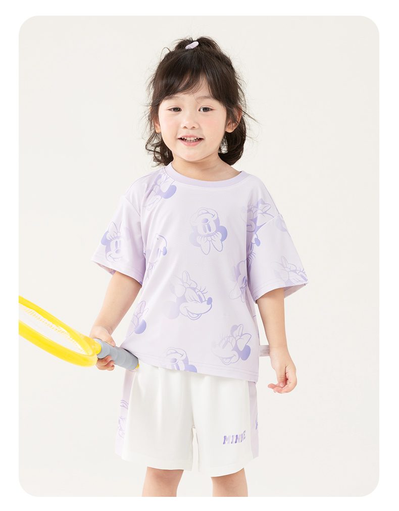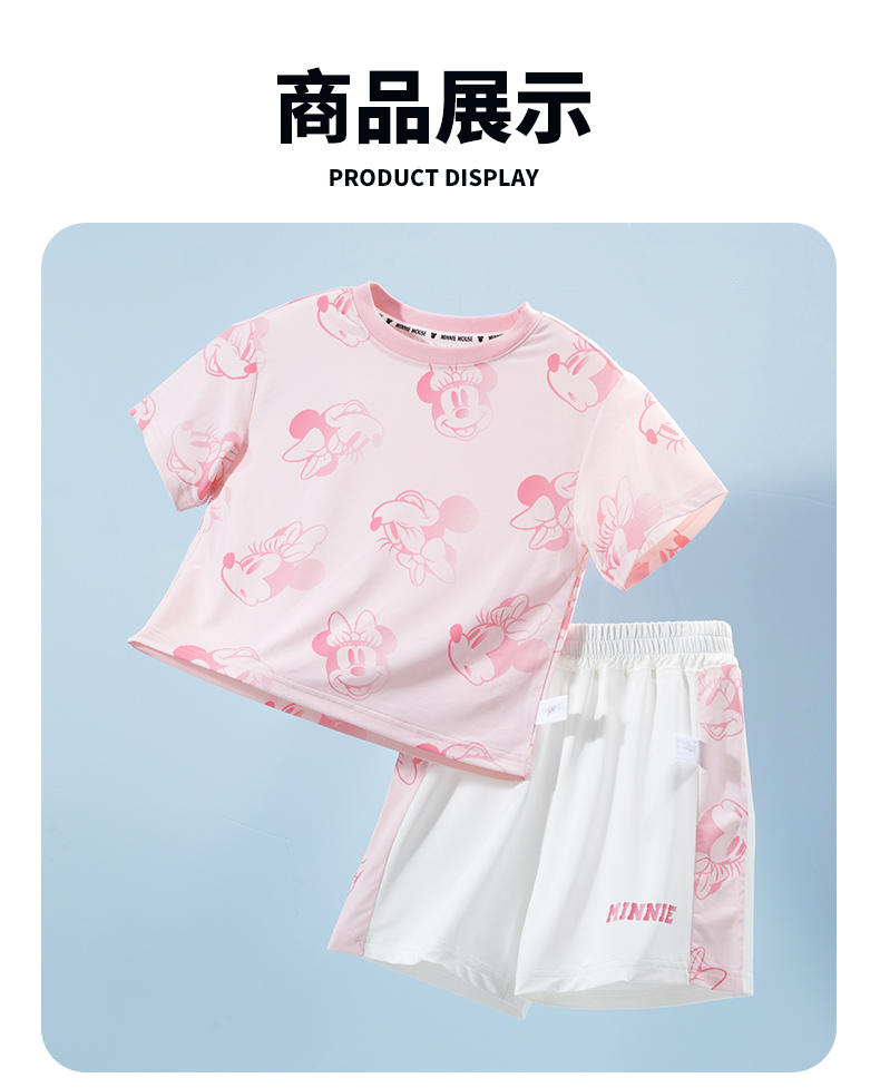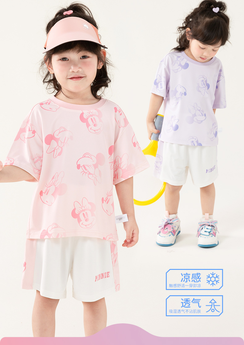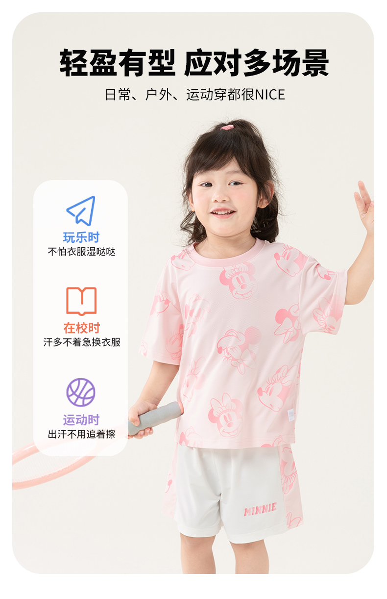 迪士尼【运动米妮】24夏季凉感透气运动短袖套装网眼速干短袖短裤套装ZD2DT038