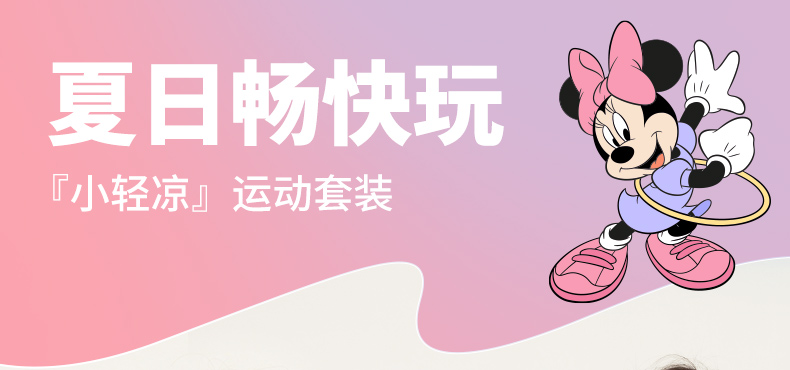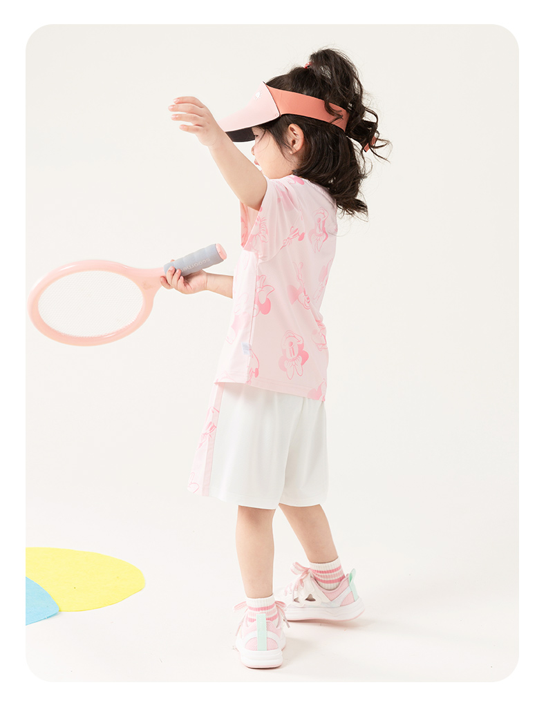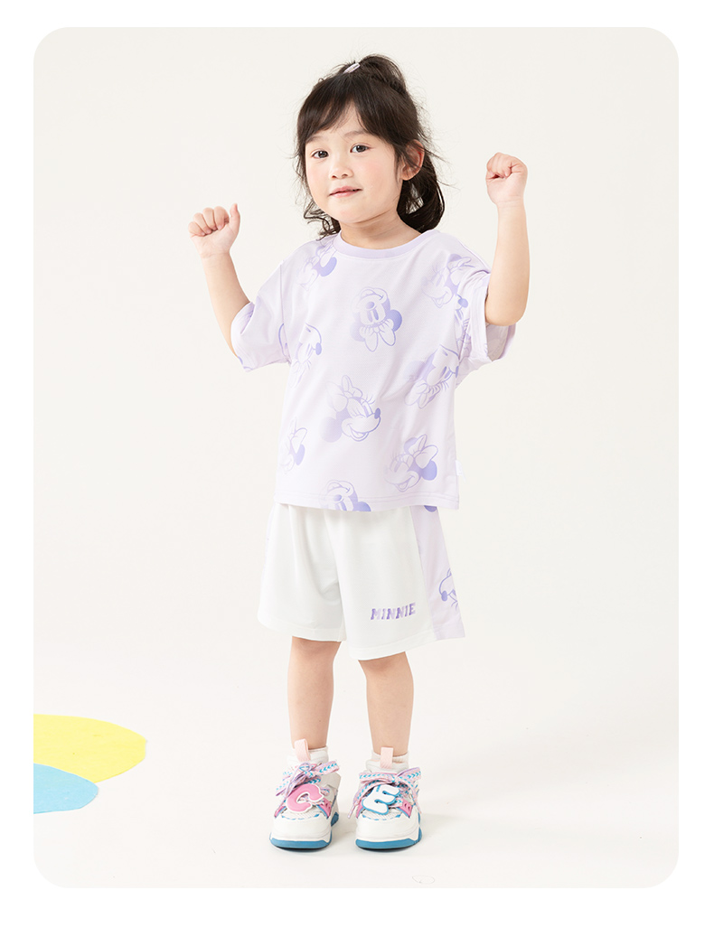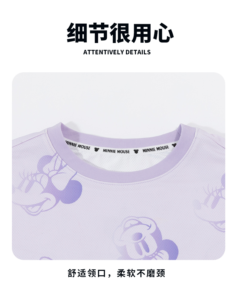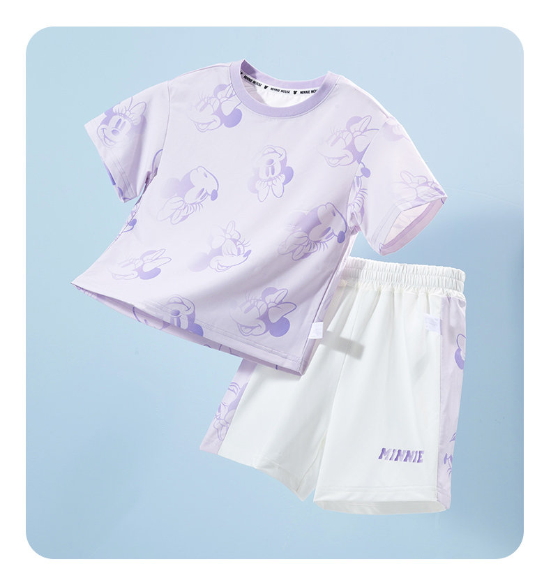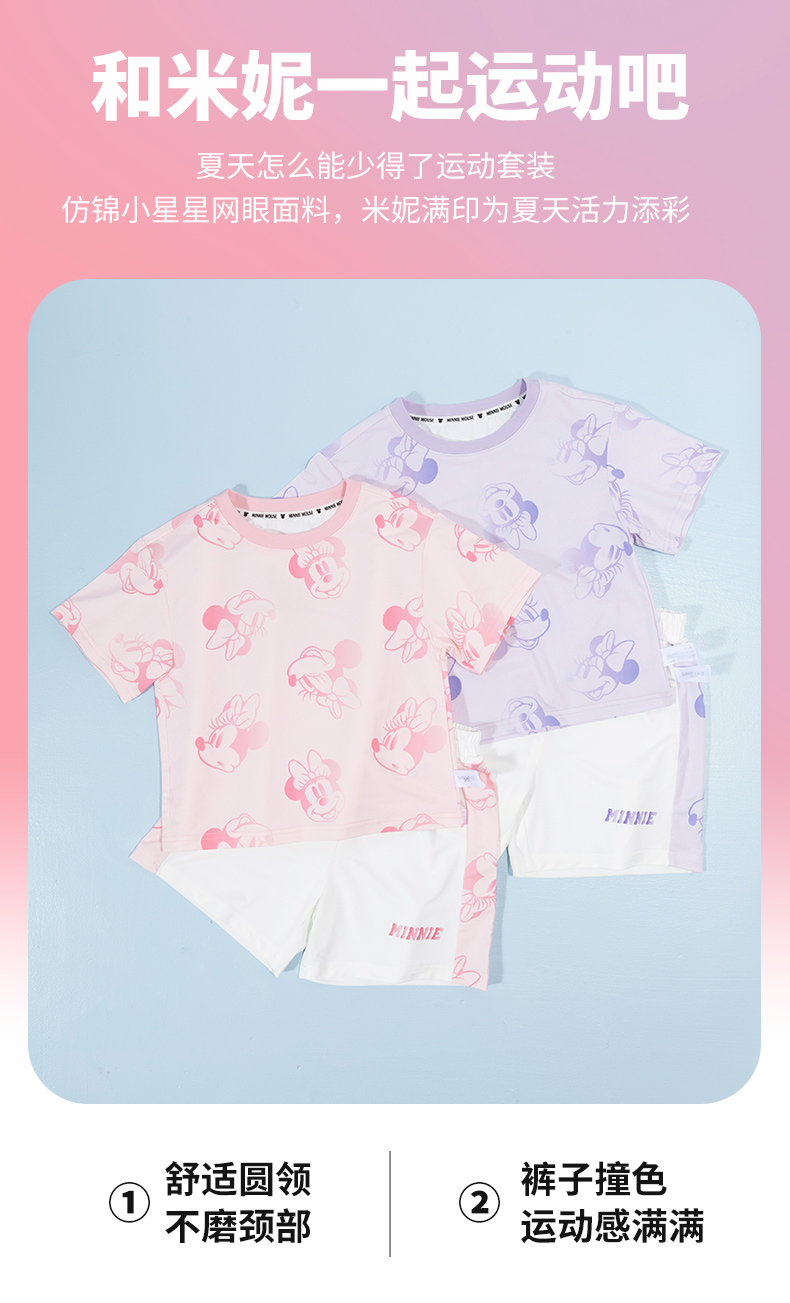 迪士尼【运动米妮】24夏季凉感透气运动短袖套装网眼速干短袖短裤套装ZD2DT038