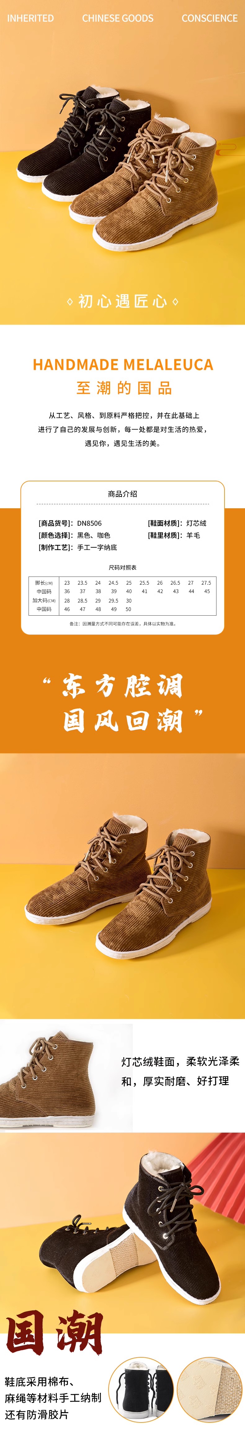内联升男鞋手工棉鞋千层底大内联升高帮羊毛里系带灯芯绒五眼棉鞋DN8506/DN8516