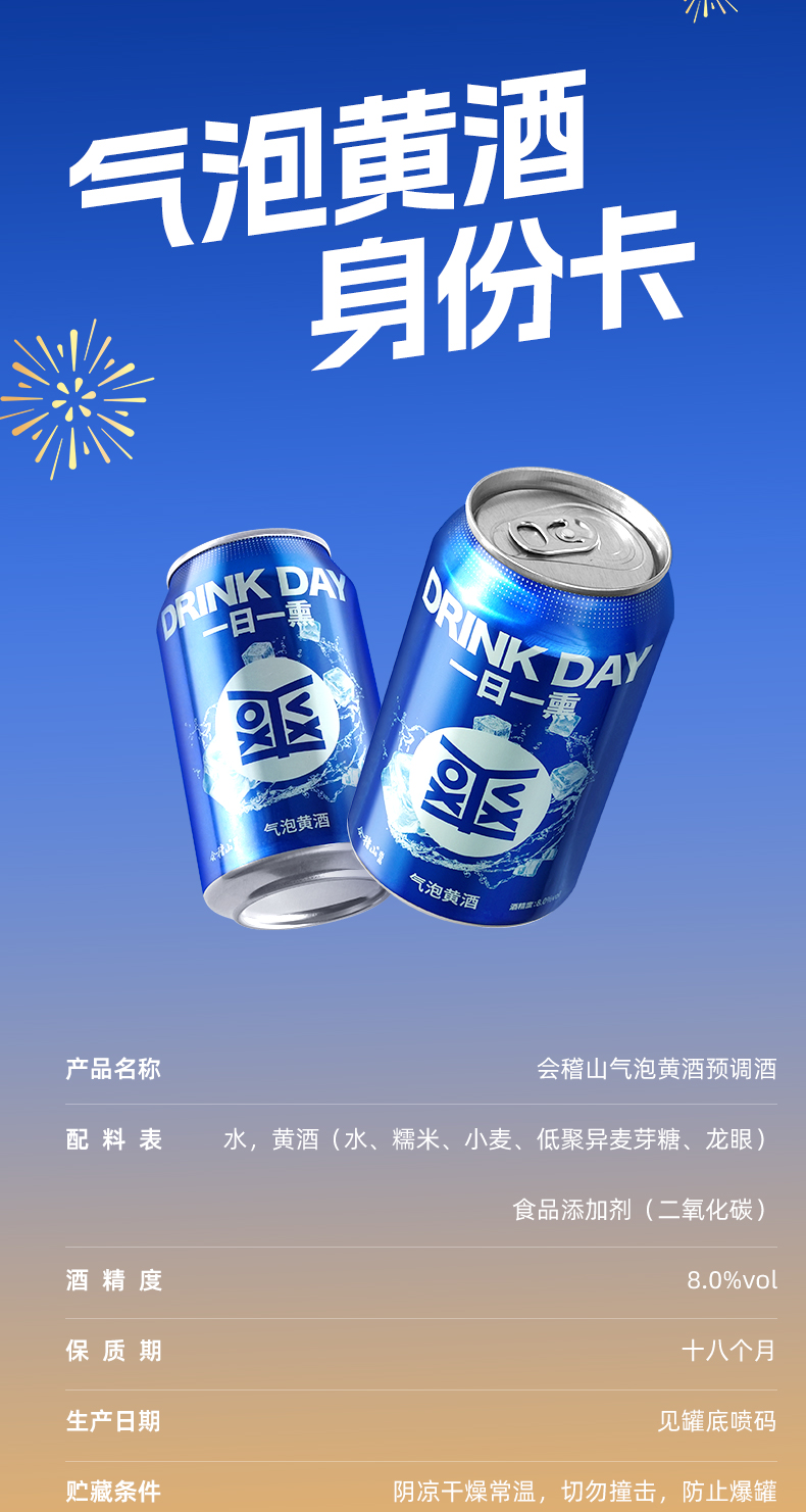 会稽山官旗 气泡黄酒原味易拉罐装330ml*12