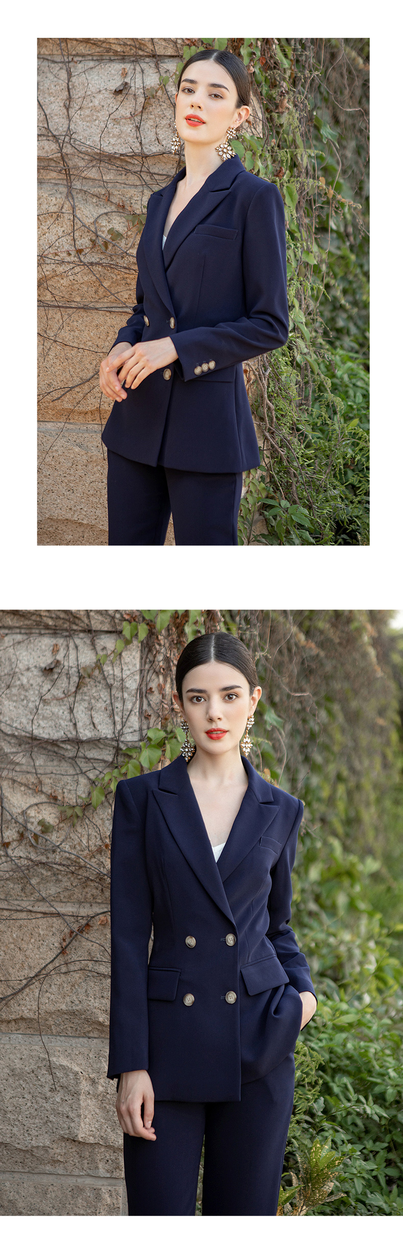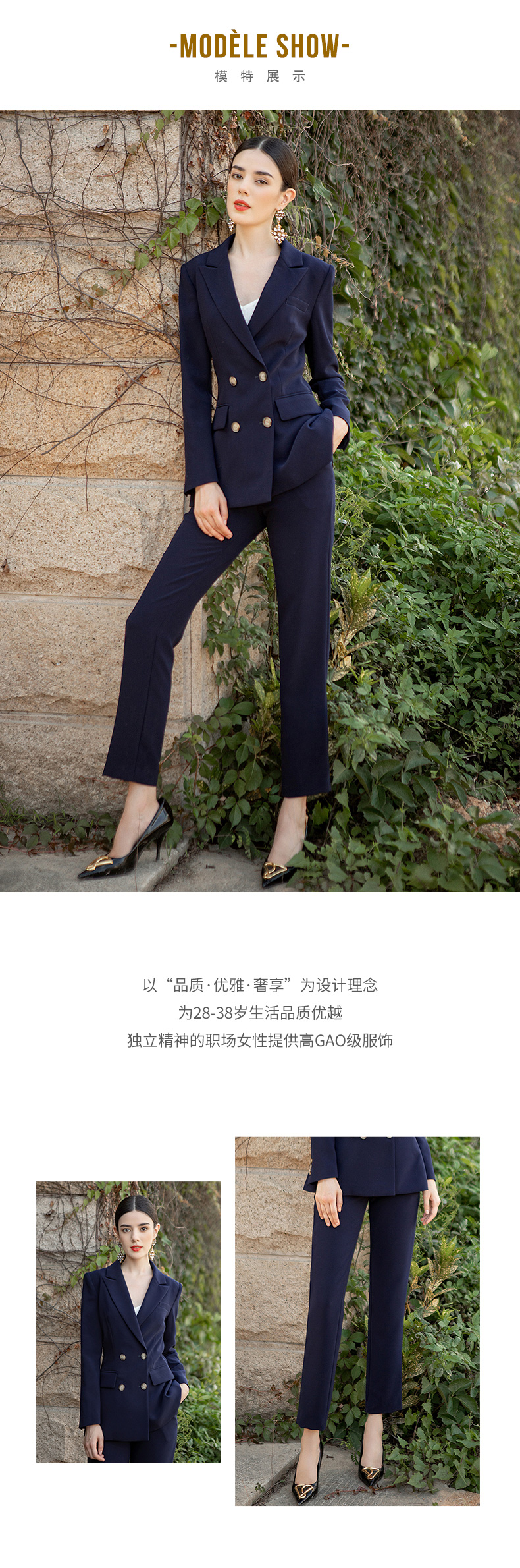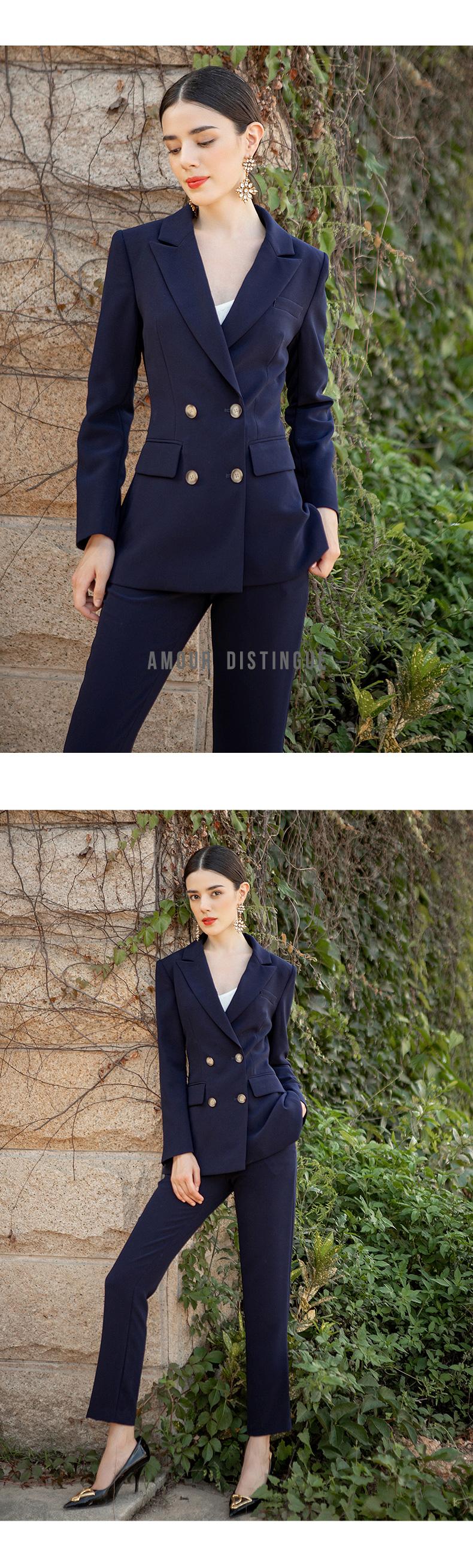 AD高端西装套装女秋冬西服职业装韩版时尚藏青色商务正装
