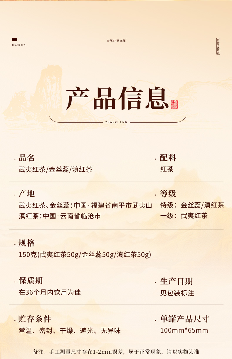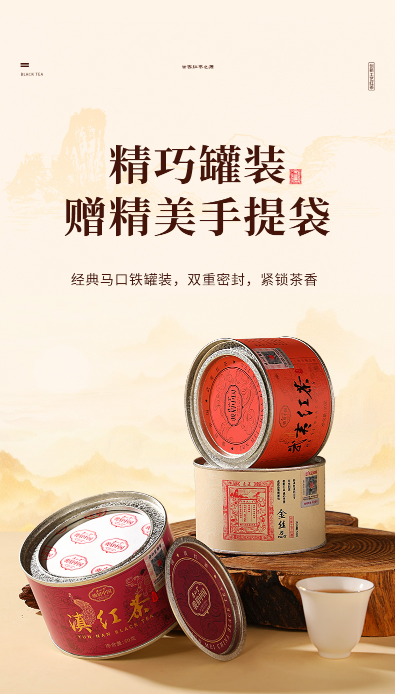 正山堂骏眉中国 武夷红茶滇红茶金丝蕊组合装 特级红茶正宗罐装150g