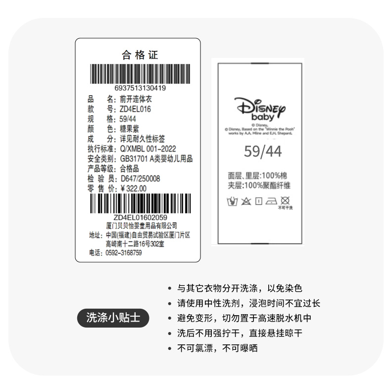 迪士尼25款冬季女童前开连体衣
