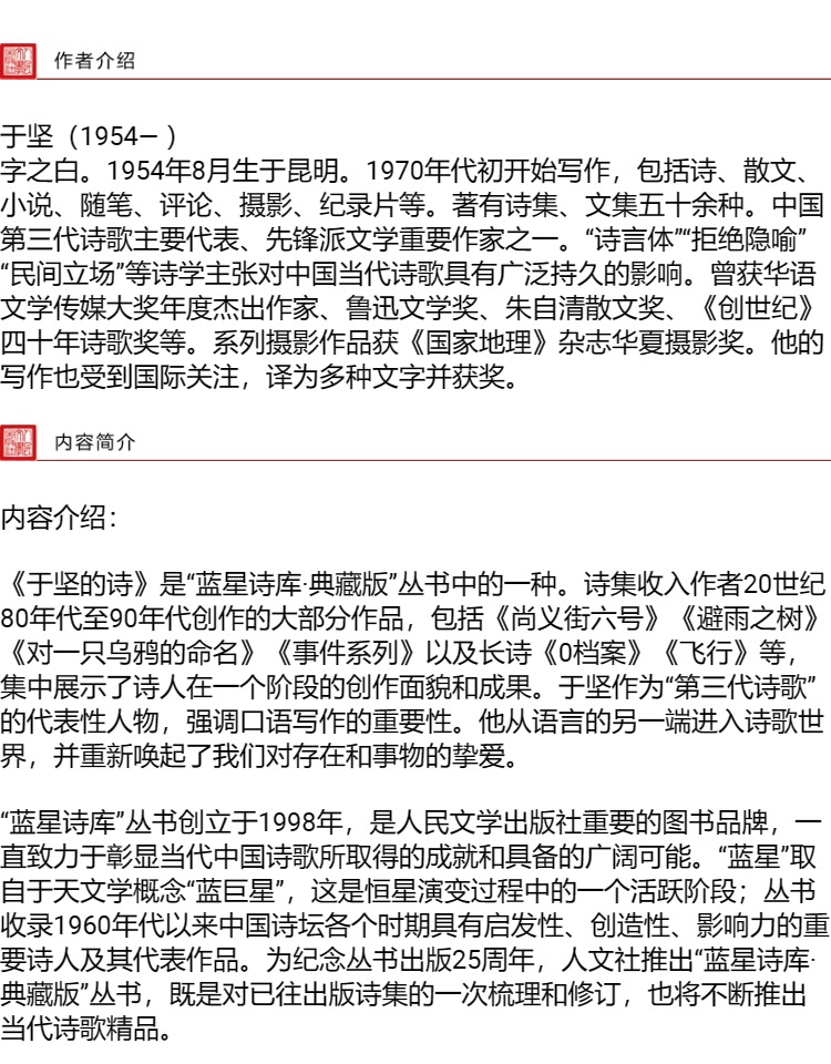 于坚的诗蓝星诗库·典藏版人民文学出版社