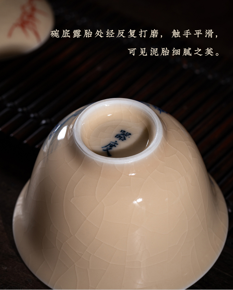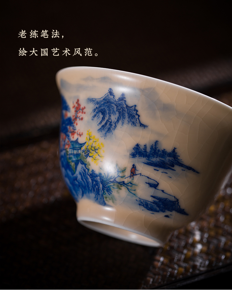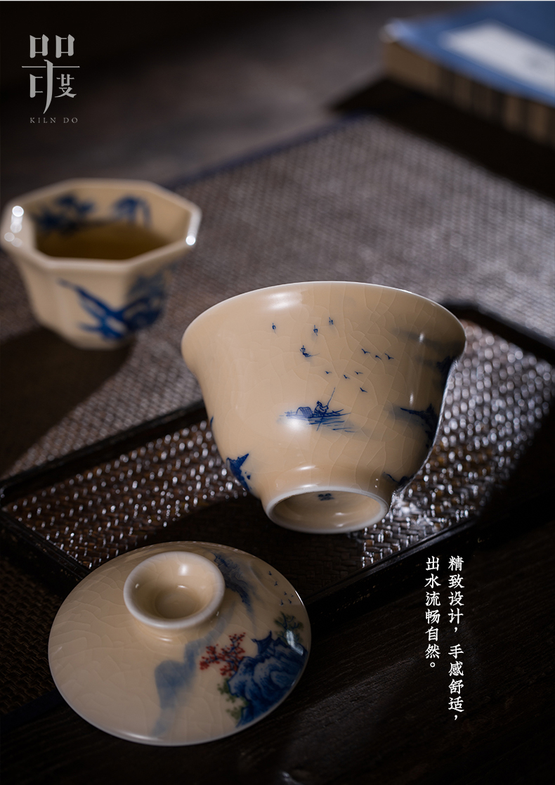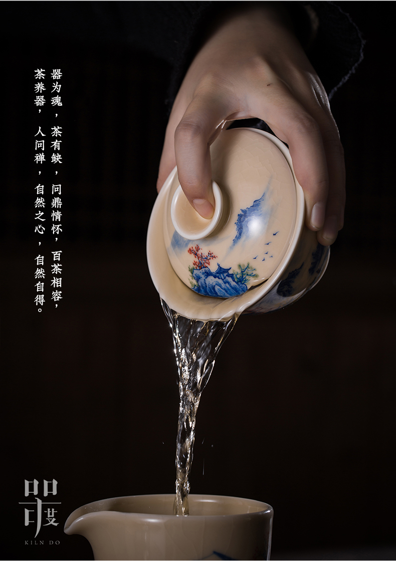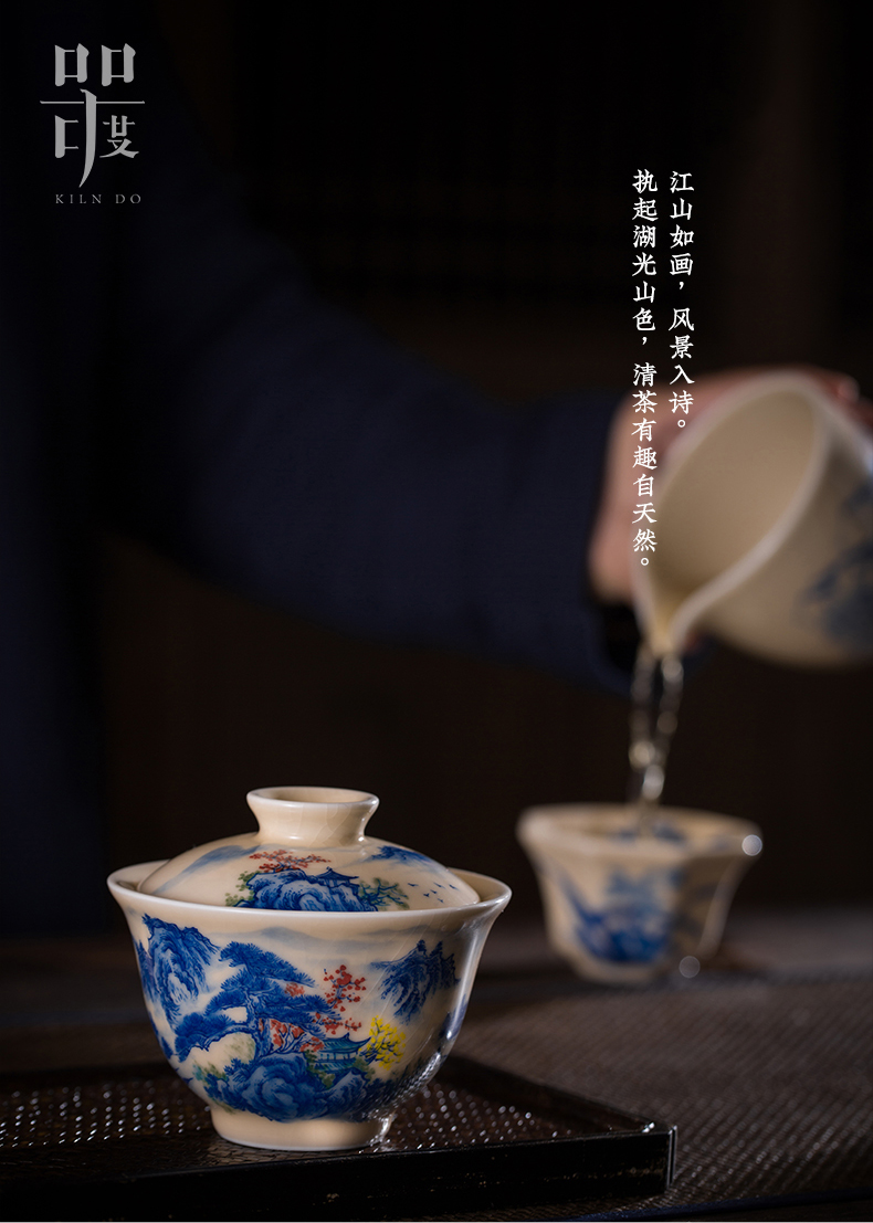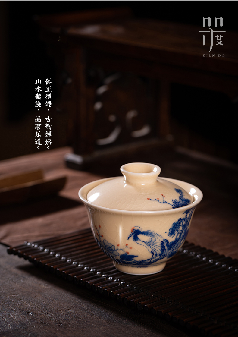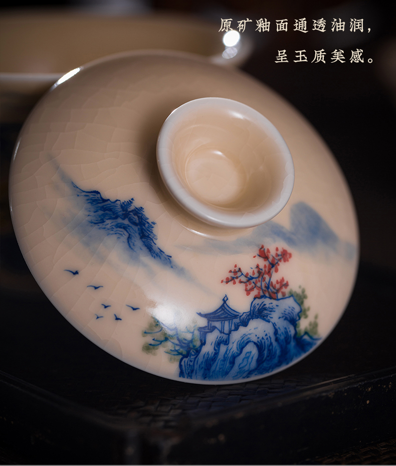 问鼎器度汝窑鹅黄青花博雅盖碗(江山如画)(牡丹松鹤)(缺货)