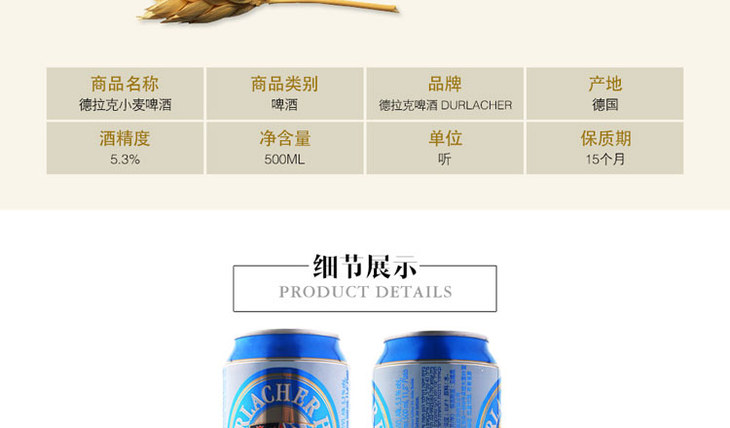 【备用】【1听】德拉克小麦啤酒500ml*1听【德国原装进口啤酒】