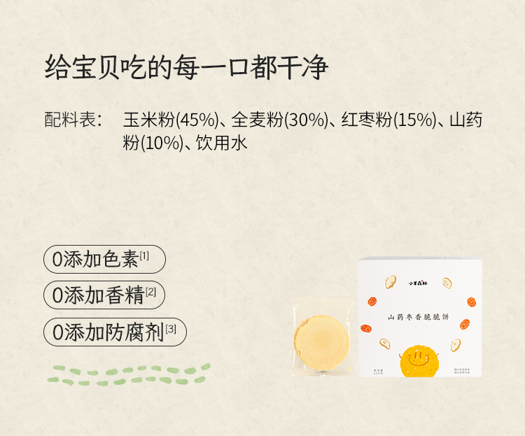 「山药枣香脆脆饼」 85%粗粮谷物饼 脾宝喜欢的养力薄脆 0添加糖
